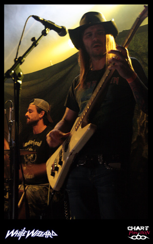 La suite est un peu plus intéressante avec WHITE WIZZARD. Ces américains sont un peu plus inspirés que leurs prédécesseurs même si le style est aussi retro. On retrouve dans leur musique un goût très prononcé pour la NWOBHM avec IRON MAIDEN en tête. C’est assez marrant car en voyant arrivé le chanteur, on aurait presque pu croire à un groupe de stoner rock à tendance power metal. Raté pour le coup, les apparences sont parfois trompeuses. Il est tout même important de souligner l’attrait qu’ont ces jeunes musiciens pour la musique de la génération de groupes précédents. Le flambeau se transmet assez bien et le goût pour les rythmiques typiquement heavy, le chant aigu et les paroles racontant le metal sont loin de disparaître. La différence entre ces petits groupes et les piliers de la NWOBHM est encore très grande en termes de reconnaissance mais les qualités scéniques et musicales sont loin d’être inférieures à celles de l’ancienne génération.