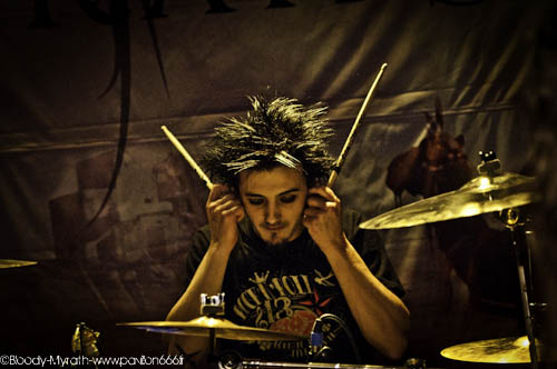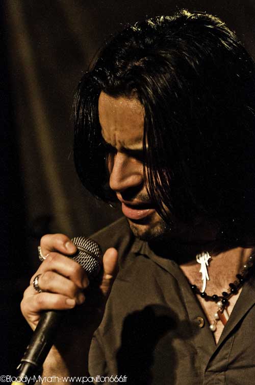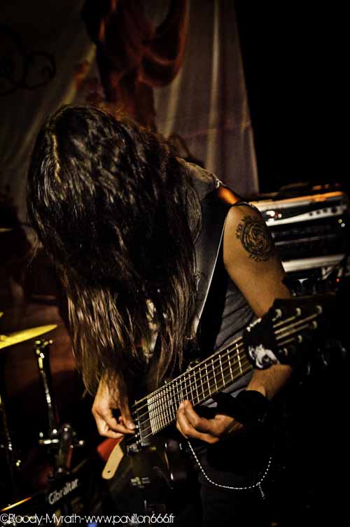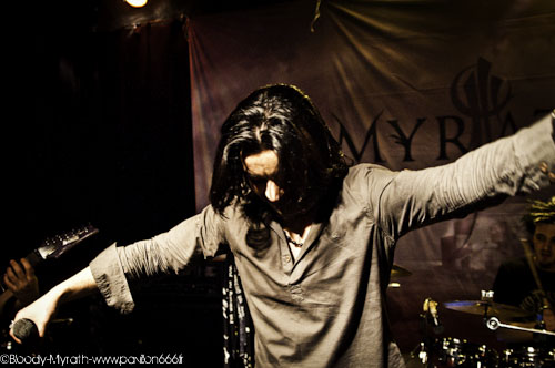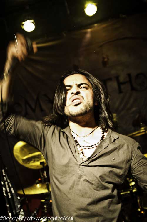 Ce set de Pryde fut aussi une belle réussite ! On retiendra la présence d'un excellent frontman qui su mettre le feu aux poudre afin d'enflammer le Korigan l'espace d'un instant. Bonne découverte ! C'est définitif, le Korigan affiche bel et bien complet ! Le foule compacte ne bouge plus et attend patiemment les héros de la soirée. Ce soir est un peu spécial pour le combo Arabe car cette date est comme un concert à la maison. Beaucoup de monde avait le déplacement. Marseille est connu pour être le lieu de résidence de la maison de disque 13bis Records, cette dernière possède d'ailleurs le groupe Myrath... On me souffle également à l'oreillette que certaines familles avaient le déplacement pour voir leur progéniture sur scène. Pression ou pas, Myrath va devoir faire abstraction de tout cela est se contenter de faire ce qu'ils font si bien : enflammer le public ! Pour ce faire, Myrath a mis les petits plats dans les grands ! Pour accompagner l'intro, une danseuse oriantale viendra nous gratifier d'une petite chorégraphie jusqu'à l'arrivée du premier missile, j'ai nommé "Sour Sigh" ! Le groupe est en forma à l'image d'un Zaher Zorgati qui monté sur ressort, harangue et interpelle avec réussite un public qui commence enfin à se motiver. Il n'aura pas fallu attendre longtemps pour entendre le riff de tueur de "Merciless Time", et par la même occasion déchainer le public. Premier single du dernier album, ce titre prends toute une autre dimension en live. Quelle puissance !