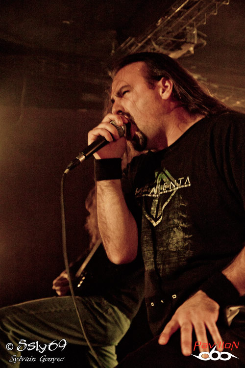 Et elle nous réserve du lourd, les italiens de KARNAK n'ayant pas l'intention de faire de la figuration. Ils ont d'ailleurs aussitôt fait de nous distiller leur death metal puissant et cadencé. Là aussi le public accrochera rapidement, et le groupe se donnera à fond. Pour ne pas changer, le set ne sera pas des mieux reglés au départ, et un problème de guitare en plein milieu d'un morceau n'aidera en rien. Le groupe reste cependant concentré et sûr de lui, et le public se prend une belle claque. Un moment qui au vu des qualités du groupe semblera passer trop vite. Ce passage restera pour beaucoup la surprise de la soirée.