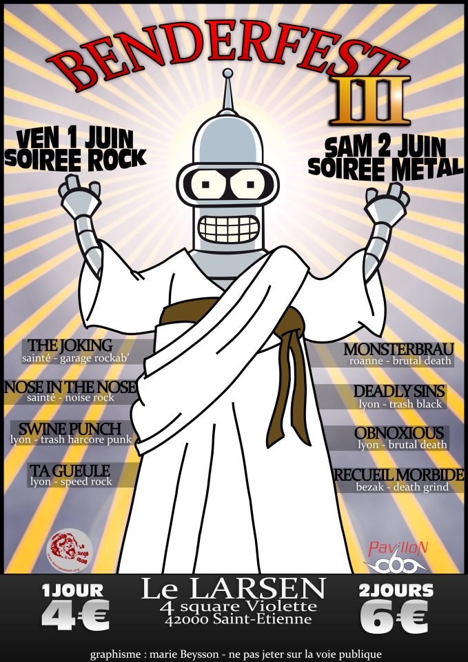 Le BENDERFEST commence tranquillement à s’imposer durant la période précédant les grandes vacances. Alors que les étudiants fêtent la fin de l’année sur un autre festival prévu à cet effet, les habitués des concerts se retrouvent au BENDERFEST. Pour sa troisième édition, le petit festival est passé de l’Assommoir au Larsen. En même temps, c’est logique puisque l’organisateur a lui-même changé de lieu de travail. Ce qui reste, c’est la programmation basée sur une soirée rock le vendredi et metal le samedi. D’ailleurs, je me permettrais bien une petite remarque à ce sujet. Je me souviens de la deuxième édition avec en tête d’affiche DREAM FOOL DISEASE le vendredi soir. Le mélange des genres avaient permis aux différents publics de se rencontrer et d’échanger. Je ne saurais qu’encourager à l’avenir les publics et les organisateurs à ne pas hésiter, mêmes si les styles sont différents, les musiciens, la plupart du temps, aiment l’échange et ne sont pas tous cloisonnés. Cela n’est certainement pas une remarque négative de quelque manière que ce soit, simplement une impression positive qui m’est restée de l’année dernière.