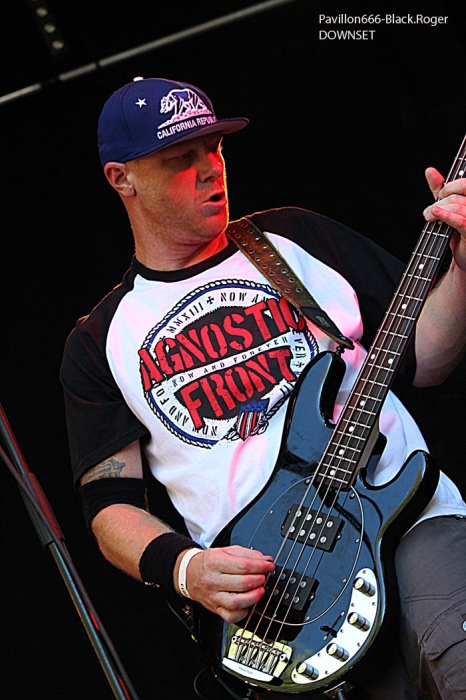 Tout va commencer « tranquillement » avec OWN THE OWNER, jeune combo régional (Bourg en Bresse) de métalcore. Leurs influences, Bring me the Horizon, Bury Tomorrow, As An Ocean. C’est bien dans la mouvance actuelle du métalcore, mais ils nous délivrent une prestation assez bonne au final, on sent que les musiciens ont déjà une certaine expérience derrière eux. Mais quant à se faire une place dans ce style, c’est une autre histoire car il y a du monde au portillon de la notoriété. Néanmoins on leur souhaite une bonne continuation, ils le méritent. Pour la suite en plein midi, c’est SEDATIVE, combo Savoyard qui n’a plus rien à prouver, qui va nous mettre un direct « in your face », qui a dit comme d’habitude ? Déjà deux albums sous le bras, un troisième en préparation, des prestations « coup de poing » en France bien sûr, en Savoie particulièrement et en Suisse évidemment, ont forgé leur réputation brutal/death/grind à toute épreuve. Malgré l’heure « matinale » de leur show au Sylak, un public déjà en nombre va « brasser » dans le pit et c’est tant mieux, prouvant ainsi que Sédative lâche du groove au travers de son death brutal et sans compromis. Les fils spirituels de Nasum, Nostromo et Dying fetus nous ont donc abreuvé de noise, blast et grunt pour des circle-pits chaotiques. La tension baisse un peu avec DISSIDENT PACHYDERM et son stoner/grunge métallisé. Chemises à carreaux de rigueur pour ces Lyonnais qui tiennent la route musicalement parlant. Le seul reproche à faire sera au niveau du chant un peu limite parfois, n’est pas ALICE IN CHAINS qui veut. Ce n’est pas un reproche mais une constatation émise par pas-mal de participants qui ont écouté le groupe en ce début d’après-midi au Sylak. Les idées sont bonnes niveau originalité mais le résultat n’est pas encore au top. A revoir donc dans d’autres conditions un peu plus tard. Avez-vous déjà pris une « TARLD » dans la figure ? Non, alors c’est ce qui va se passer à 14heures avec THE AMSTERDAM RED LIGHT DISTRICT. Le jeune quatuor nous a concocté un mélange détonant de punk/hardcore/rock n’roll « high energy ». C’est comme si on avait mixé du Comeback Kid avec du Raised Fist, vous voyez ce que je veux dire. Et sur scène ça explose littéralement. Après avoir tourné dans toute l’Europe, le groupe nous revient plus aguerri que jamais et ça fait mal. Quelle énergie encore une fois, quelle chorégraphie démente, quelles compositions implacables ! Attention, groupe à surveiller de très très près cal il va peut-être exploser bientôt et tenir « le haut du pavé », ils le méritent amplement et on adhère à 100%, voilà c’est dit. Qui peut résister aux grindcoreux Suisses MUMAKIL, même en plein après-midi ? Personne en fait et le char d’assaut né dans les bas-fonds de Genève va nous écraser les neurones tout simplement. Tom le frontman et sa voix de brontosaure en rut avec ses acolytes Jeje et Benj, sans oublier Kevin « Kikou » Foley (BENIGHTED) au fûts, va nous liquéfier la cervelle. Comme je le disais dans ma chronique de leur dernier album en date « Flies With Starve » la tornade Mumakil est passée, c’est la désolation, même les mouches sont tombées par terre car elles devaient mourir de faim. Mumakil régale donc les inconditionnels du death-grind, sur CD bien-sûr mais surtout en live comme aujourd’hui à St-Maurice de Gourdans. Vous avez eu votre dose, moi aussi avec en bonus deux reprises, une de LOCK UP et une de NAPALM DEATH évidemment. Bon, assez rigolé, on passe au hardcore maintenant avec DOWNSET, le retour pourrait-t-on dire. Après quelques années de mort clinique, les «coreux » de Los Angeles étiquetés « rapcore » refont surface et viennent nous tabasser avec leur hardcore particulier aux influences éclectiques. C’est un mélange de Black Flag orienté Black Sabbath mixé à du public Enemy et saupoudré de Bob Marley, tout un programme donc. Après s’être formé à la fin des années 80 sous le nom de Social Justice, le groupe très engagé possède donc un passé musical conséquent derrière lui et cela se ressent sur scène. A certains moments, on pense à Rage Against the Machine, mais Downset a quand même tracé sa voie particulière. Et en cette fin d’après-midi Downset remonte au créneau de sa « gloire » passée, et le public majoritairement composé de «coreux » adhère pleinement. L’ambiance est palpable avec bien entendu le frontman au milieu du public, prestation assez énorme au final, le ton de la soirée est donné. Une fois que Downset a mis le feu aux poudres, c’est AGNOSTIC FRONT qui prend la suite. Les légendaires punk-coreux de New-York vont tout casser et le public aussi. Les « slams » sont monnaie courante, le pit est en ébullition. Les vétérans du NYHC défient le temps et on toujours la rage au ventre, quelle baffe, quelle énergie, quel charisme ! Roger Miret depuis les années 80 mène ses troupes au combat avec son acolyte de toujours, Vinnie Stigma. Mike Gallo à la basse, Pokey Mo à la batterie et Joe James, guitare, renforcent actuellement l’édifice hardcore. Moment toujours magique lors d’un concert des new-yorkais, on ne voit pas le temps passer, concert hors du temps donc, concert énorme, une tranche de vie nous est offerte. Et comme pour souligner son appartenance au mouvement punk, AGNOSTIC FRONT en final fait chanter tout le monde avec le classique des RAMONES, « Hey Ho Let’s Go ». On ne laisse pas le public, maintenant bien chaud, que dis-je bouillant, refroidir. Et c’est au tour du BAL DES ENRAGES de venir exploser la scène du Sylak. Pour ceux qui ne connaissent pas, le bal des Enragés regroupe des membres de Lofofora, Punish Yourself, Parabellum, Tagada Jones, Loudblast, Black Bomb A, qui font des reprises de classiques du punk, du rock et du métal à leur sauce. Alors, ce soir pendant 1heure 1/4, le spectacl