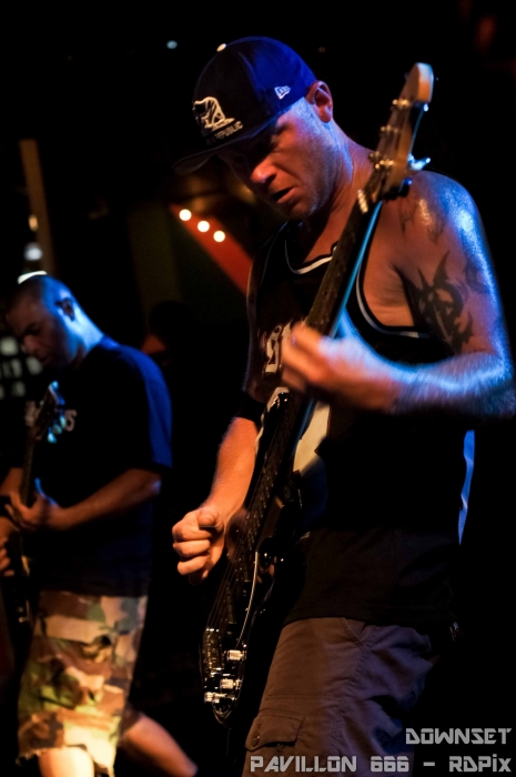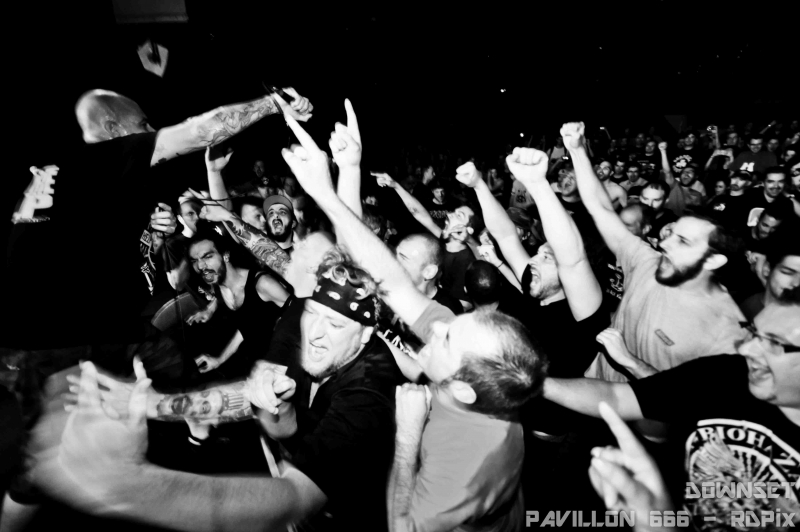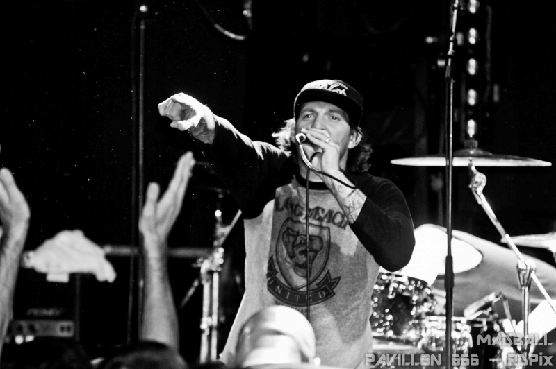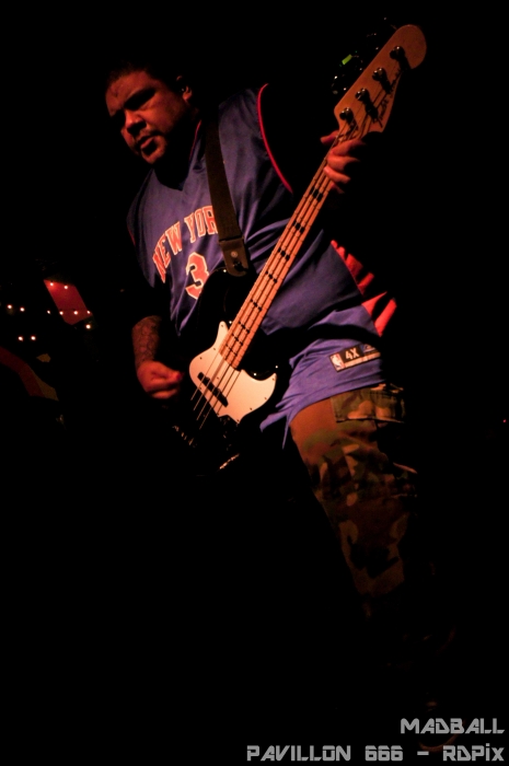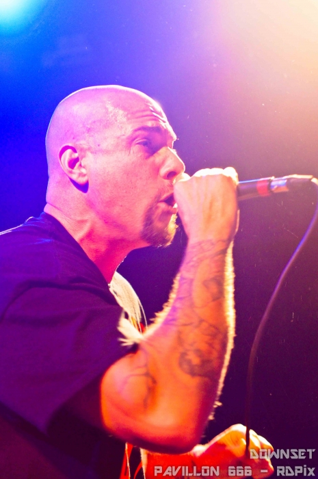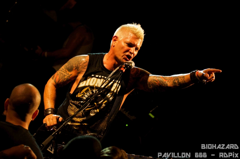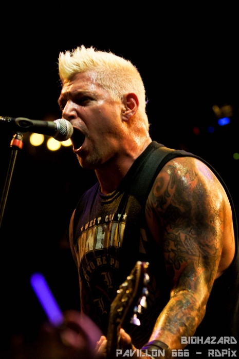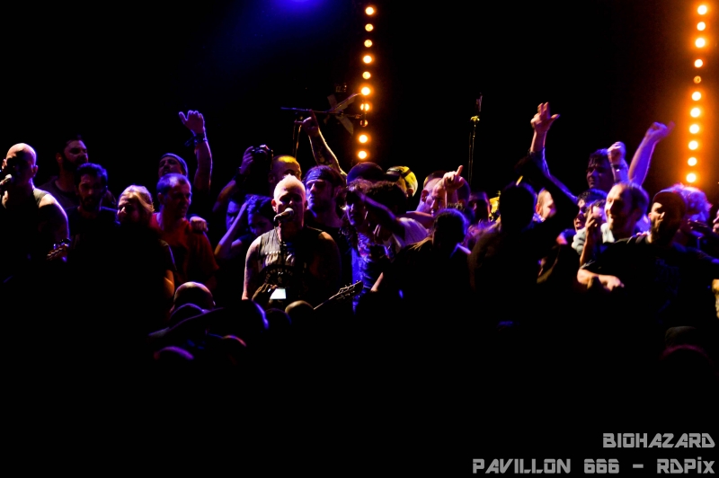 C’est DOWNSET qui entame les hostilités et autant vous dire tout de suite qu’ils ne sont pas là pour faire dans la dentelle. Ce groupe originaire de Los Angeles mélange les styles rap et metal hardcore avec brio. Á mi-chemin entre Body Count (comme le soulignait un compagnon de taverne) et Rage Against the Machine, le groupe a tout de même débuté en 1989 soit quelques années avant ces deux derniers. Nous pouvons donc légitimement nous demander qui a inspiré qui. Je n’ai jamais eu l’occasion de voir DOWNSET en concert avec le chanteur d’origine. De ce fait, je ne suis pas le plus à même de savoir si son remplaçant est mieux ou moins bien. Tout ce que je sais, c’est qu’il a très bien fait le travail. Un bon flow agressif haché par des riffs incisifs. Le groupe fait son effet et les fans commencent à distribuer des pains dans la fosse alors que le groupe débute son set sur « Empower ». Les premiers slameurs ne se font pas attendre longtemps non plus. Á partir de ce moment et jusqu’à la fin des trois sets, la soirée a été marquée par les échanges entre les groupes et leur public. Un coup le chanteur aide quelqu’un à monter sur scène et le repousse aussitôt dans la fosse, puis la seconde suivante, il tend le micro au hasard et quelqu’un dans le public finit le couplet pour lui. Les musiciens font des signes obscènes aux photographes et bougent beaucoup tout en jouant sans accroc. Une ambiance festive s’instaure petit à petit et va crescendo, tandis que les titres s’enchaînent jusqu'au bouquet final avec « Anger » que la salle entière reprend en cœur. J’en ai des frissons rien que d’y repenser. Côté technique la lumière, un peu timide au départ, s’est arrangée légèrement sur la fin du set. Le son, quant à lui, était impeccable et chaque instrument s’entendait distinctement. Très bon set, je n’ai vraiment pas été déçu. Bien au contraire, pour une entrée en matière, DOWNSET a fait très forte impression. Setlist : Empower, Play Big, Take ‘Em Out, Beed the Killer, Pure Trauma, Fire, Forgotten, Sangre de Mis Manos, Eyes Shut Tight, Against the Spirits, Downset, Anger Il fait chaud dans la salle, et le public porté à ébullition par ce premier groupe profite de la préparation de la scène pour sortir prendre un peu l’air. Pour ma part, je reste sur place à boire une bière, plus pour me rafraîchir qu’autre chose, et j’attends le groupe suivant bien placé tout devant la scène. Les balances sont un peu longues et on attend bien 30 minutes avant de voir pointer leur nez les musiciens de MADBALL. Le moins que l’on puisse dire c’est que l’attente en valait la peine. Aussitôt arrivés sur scène, ils commencent fort avec « Empire » tiré de leur dernier album puis enchaînent avec des tires moins récents comme «Can’t Stop, Won’t Stop » ou encore « Set it Off ». Le guitariste et le bassiste restent pratiquement immobiles tout le concert tandis que le chanteur, Freddy Cricien lui, se déchaîne complètement. Il est simplement impossible de le prendre en photo durant les deux premières chansons. Il court et saute partout, une vraie balle de flipper. Et c’est littéralement contagieux. Le public fait exactement la même chose. J’ai dû me résoudre à prendre des photos de loin tant la fosse était en délire. Un show gonflé à bloc, pas de temps mort, MADBALL ne nous laisse aucun répit. Encore une fois le son bien équilibré nous fait apprécier le spectacle des New-Yorkais pleinement. Du bon gros hardcore comme on ne peut l’apprécier à sa juste valeur qu’au milieu de la fosse avec tous les autres sociopathes venu se défouler. Cricien et ses sbires savent faire bouger les troupes. Les New-Yorkais de la vieille époque sont toujours là et n’ont rien perdu de leur efficacité. Les gens bougent et dansent jusque dans le fond de la salle. Les refrains sont repris par le public et on entend chanter même dans les coins les plus éloignés. Après une reprise d’Agnostic Front, « It’s My Life », le groupe enchaîne sur un bouquet final terminé par « Pride » et « Hardcore Still Lives ». Un concert au top. Setlist : Empire, Can’t Stop,Won’t Stop, We the People, Get Out, The Beast, Smell the Bacon, Set It Off, Streets of Hate, All or Nothing, Infiltrate the System, Look My Way, Down by Law, It’s My Life, Heaven Hell, Pride, Hardcore Still Lives. Encore une bonne demi-heure d’attente et de balances pour voir arriver BIOHAZARD sur scène. Ils commencent sans aucune forme de cérémonie mais c’est l’hystérie générale dès les premières notes. Le super-frontman Evan Seinfeld ayant réorienté sa carrière artistique vers des choses plus primaires, il est remplacé au micro principal par le guitariste du groupe, Billy Graziadei. Ce dernier s’en sort très bien avec un chant proche de celui de Seinfield malgré un charisme un peu moins prononcé. Violent, brut de décoffrage, le groupe débute son set avec «Shades of Grey » et « Urban Discipline » tandis que moi, je commence par me reculer du devant de scène. Les pogos y sont trop violents pour pouvoir prendre des photos pour le moment. Durant toute la première chanson, Graziadei chante dans le vide, car son micro ne fonctionne pas. Pas de problèmes. Le reste du groupe et le public remplissent le vide en scandant les paroles à sa place. Aussitôt le problème réglé, c’est Bobby Hambel, le lead guitariste qui rencontre quelques problèmes techniques vite réglés eux aussi. Les musiciens nous servent un spectacle très nerveux. Ils courent dans tous les sens, tournent, sautent et grimpent au décor sans pour autant laisser de coté l’aspect technique de leur jeu. Régulièrement, un slameur arrive sur la scène et chante une partie du couplet dans le micro principal avant de repartir comme il est venu, porté à bout de bras par la fosse surexcitée. L’un d’eux s’est fait rappeler à l’or