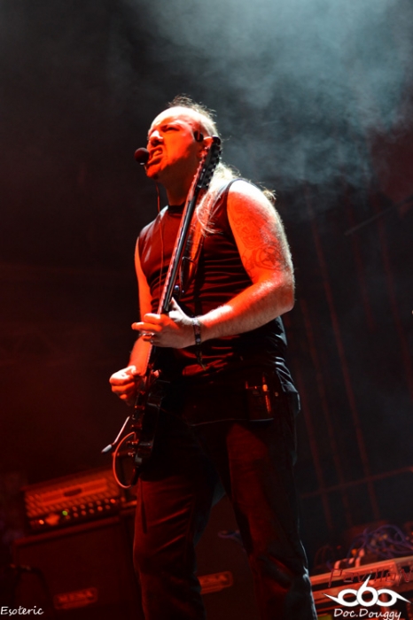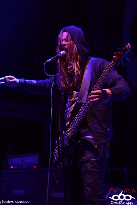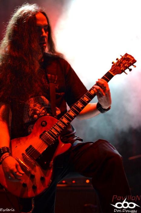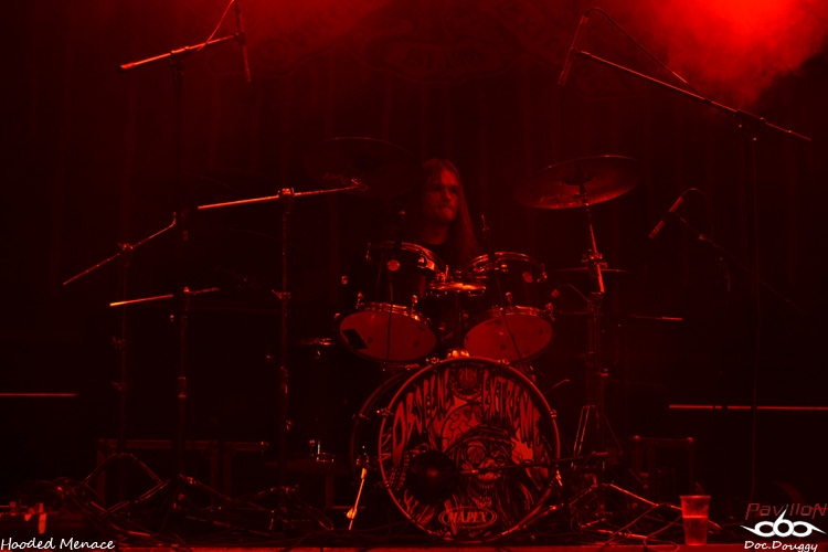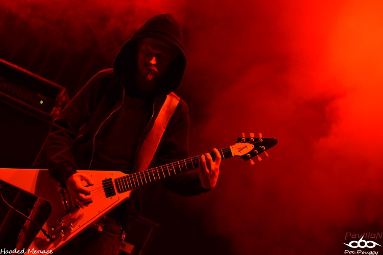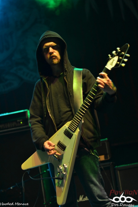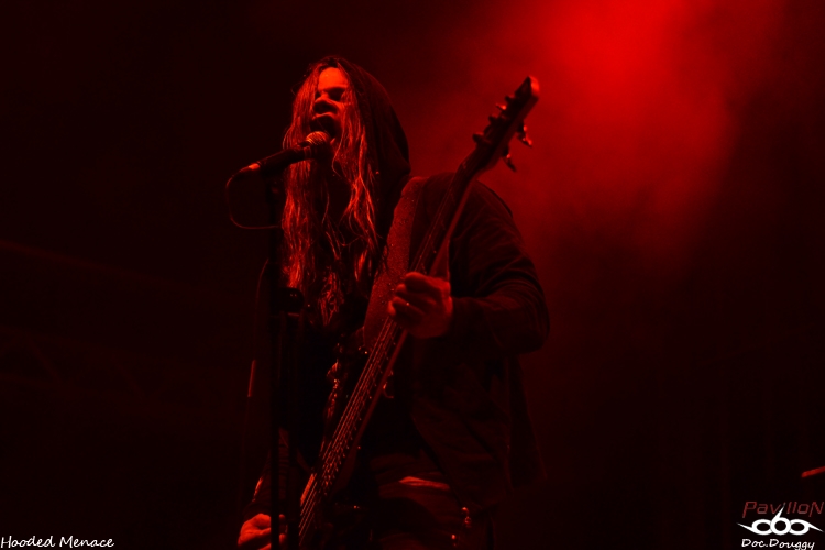 D'ailleurs, parlons du site : un amphithéâtre en plein air, une scène entourée d'une forêt forte accueillante où l'on retrouvera durant tout le week end une quinzaine d'exposants tous plus ou moins orientés metal extrême. Tandis qu'au niveau de l'entrée l'on retrouve le merchandising du Festival (qui sera ouvert dès le jeudi), on y retrouve aussi différents stands de nourriture végétarienne (fait paradoxal que je ne comprendrais jamais, inhérent au grindcore...), mais d'excellente qualité ce qui en fait déjà un bon point. Mais ce n'est pas tout lorsque l'on constate le prix de la boisson (échangeable contre des tickets en euros ou en couronnes tchèques) qui pourrait défier toute concurrence si on le compare à celui des festivals Français (soit environ 1€ la pinte de bière). Mais revenons en au contenu de ce mercredi car, si dans l'après-midi, c'était le "Freak Festival", ce mercredi soir, c'est une soirée "Doom Death" qui ouvre le festival avec 3 groupes qui joueront successivement une heure, et pas des moindres: les Américains d'EVOKEN, les Anglais d' ESOTERIC et l'un de mes coups de coeur de cette année, les Finlandais d'HOODED MENACE. Le temps d'installer ma tente et de découvrir le site ( je suis arrivé aux alentours de 20 h ), qu'EVOKEN termine déjà son set, 15 minutes de changement de plateau et j'arrive au début d'ESOTERIC. Les concerts du combo anglais sont relativement rares, c'est donc avec un certain plaisir que je découvre le groupe de Funeral Doom sur scène. Les jeux de lights sont très dans l'ambiance romantisme noir du sextet de Birmingham entre ambiances pessimistes, chant growlés par un chanteur/guitariste en grande forme, duos de guitare lourds et malsains, voilà ce que représente ESOTERIC sur scène. Je ne connais hélas que peu leur discographie et me laisse donc emporter au gré des morceaux durant l'heure de set. Le son est équitablement réparti entre les instruments (ce qui est l'un des points forts du festival), et que ce soit au niveau du pit ou sur les bancs de l'amphithéâtre, on ne peut qu'apprécier le groupe. C'est l'occasion aussi de constater que pour la réputation de ce festival, le public n'est pas si nombreux, ce soir on doit à peine dépasser les 500 personnes, pour en atteindre environ 4000 sur le week-end. Le set d'ESOTERIC se termine dans les temps, mais j'avouerai l'avoir trouvé un peu longuet par moments, d'autant que je suis impatient d'enfin découvrir HOODED MENACE sur scène, qui d'ailleurs portent bien leur nom, veste à capuche vissée sur la tête. Avec "Effigies of Evil" sorti fin d'année dernière, il est normal de retrouver les Finlandais sur les scènes européennes cet été (notamment un passage au Hellfest). Après une intro "film d'horreur", les guitares vrombissent aux sonorités Doom/Death du combo. Petit hic au début du concert, l'absence de volume dans le chant de Makus Makkonen, heureusement réglé au bout de quelques minutes. D'ailleurs, fait étonnant, ce n'est pas Lasse (guitare/chant studio) derrière le micro mais bel et bien son bassiste qui prend la relève. Mais cela n'enlève rien à la qualité de son remplaçant qui assure tout aussi bien ses parties. Au programme donc, retour sur les 3 albums du groupes pour 7 titres en l'espace d'une heure avec bien sûr un soin tout particulier accordé (pour mon plaisir égoïste) au petit dernier en date avec "Vortex Macabre", "Effigies of Evil" et "Curses scribed in Gore". Un grand moment qui nous fait visser nos capuches sur nos têtes pour headbanguer lourdement sur l'excellent Doom/Death des Finlandais. Une première soirée qui ouvre un Festival qui promet sous tous les angles, que ce soit au niveau de la qualité de son emplacement, mais et surtout, pour l'affiche plus qu'alléchante qui commence dès le lendemain entre découvertes et groupes au statut mondial. Mais pour le moment il est temps de faire la fête avec les amis présents en attendant patiemment le lendemain, 14 h pour le début des hostilités. |