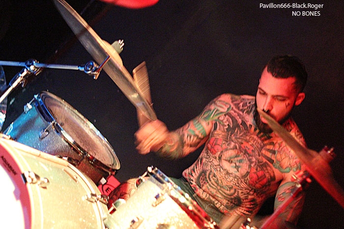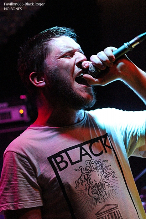 « Messieurs les Anglais tirez les premiers ! ». Mais non, c’est un trio venant de Bristol dans la « perfide albion » au nom prédestiné de CAVES qui officie devant nous. Lou, chanteuse/guitariste, Minty à la basse et Dave aux drums envoient donc la sauce avec au menu du punk tout simplement comme on l’aime, binaire, tranchant avec chorus à la clé. On pense à d’autres groupes comme LEMURIA, SUPERCHUNK et DISCOUNT entre autres. Titres courts incisifs et mélodiques, les keupons anglais ne font pas semblant et mettent du cœur à l’ouvrage s’arrêtant juste quelques minutes parfois entre leurs composition pour régler les cordes de guitares. Prestation sympathique et énergique donc, on aime et on leur souhaite bonne continuation dans leur (longue) tournée européenne débutée chez eux à Brighton le 4 septembre dernier afin de présenter leur nouvelle galette « Betterment ». Un moment plus tard…vers 21 heures, ce sont les punks de Montreal, Quebec, NO BONES qui arrivent devant nous avec sous le bras leur premier EP cinq titres « Belongings ». Première venue en France selon leurs dires, le quatuor semble avoir envie d’en découdre devant un public nombreux et curieux se pressant dans ces lieux exigus. Le son est bon, les musiciens aussi et il ne pouvait en être autrement avec ces ex-TIGHTROPE qui ont formé ce nouveau projet. Du punk pour nos oreilles, bien, mais pas que. Les compositions lorgnent aussi sur le hardcore et la voix rugueuse du charismatique frontman Antoine fait son effet dans les envois costauds et variés de Victor (guitare), Elie (basse) et Yann (batterie) qui ne font pas dans la dentelle même avec quelques dérapages plus techniques bien vus. Le seul bémol de cette prestation, c’est sa durée, une demi-heure pensez-donc, on en aurait bien repris une rasade, même si un petit rappel est envoyé en bonus. Prestation courte mais intense, comme je le dit souvent. Combo à revoir avec plaisir ça c’est certain. Encore une soirée agréable passée au Trokson, cet endroit incontournable des soirées underground Lyonnaises. Plein de découvertes chaque semaine dans cet endroit bien fréquenté comme ce soir avec les sets remarqués de NO BONES et CAVES, nous reviendrons…souvent ! |