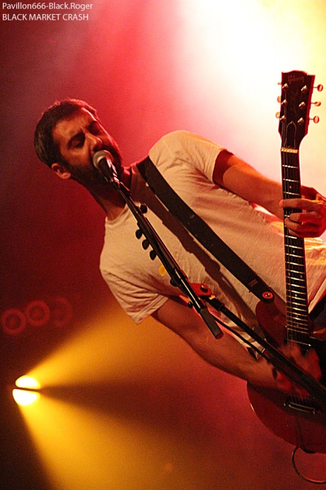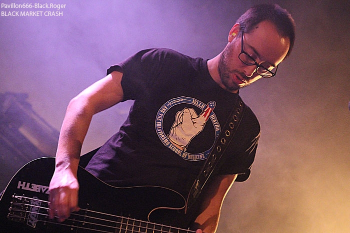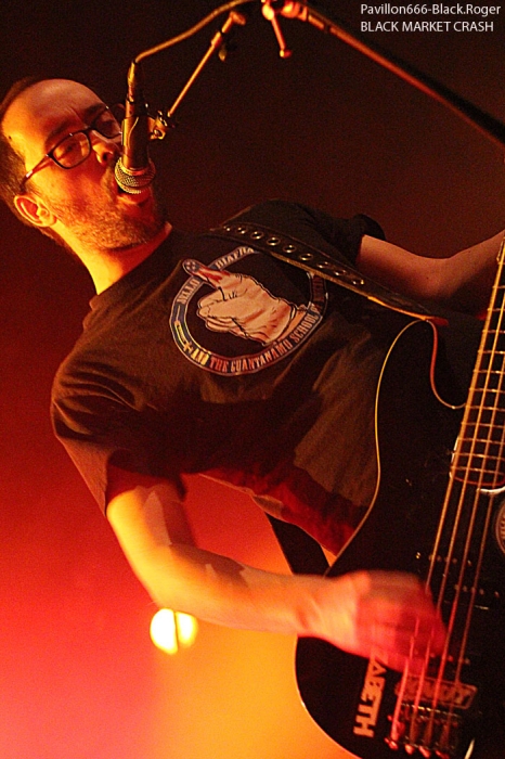 C’est d’ailleurs ces derniers, petits Suisses de Genève (sic) qui ouvrent les débats vite, vite, car il y a déjà du retard dans le « timing » semble-t-il. Tom, Cedric et Conor nous proposent en guise de mise en jambe du punk tout simplement, sans fioritures, sans faux-semblants, puisant dans les titres de leur album « The Buried Dancers ». BLACK MARKET CRASH semble plus rock que punk à première écoute. Du binaire, du binaire, oui mais sans le gros son ce soir. C’est plutôt léger et la voix, les voix ne font pas l’unanimité dans une assistance encore clairsemée, soit, mais qui reste figée loin de la scène. Ce n’est donc pas avec nos amis helvètes que l’on va se réchauffer ce soir.