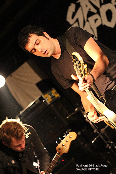 BAD SIAM CAT et SAVAGE RIPOSTE de Lyon vont tout d’abord « chauffer le warm » et ils n’auront aucun mal à le faire soit dit en passant, le public est là bien présent et bien motivé par l’affiche. A peine le temps de finir nos frites au bar que déjà vers 20 heures trente BAD SIAM CAT branche les « grattes » sur l’estrade et c’est parti. C’est parti pour une soirée rock/punk déjantée, du moins nous l’espérons. Les lyonnais, Xav, Dave et Elwin envoient une purée bien rock n’roll, punk et garage rock si vous voulez. L’énergie promise par le groupe est bien palpable en live. Le trio ne se prend pas la tête, ne se la « pète » pas, les accords sont justes, les textes accrocheurs et dénonciateurs, la rythmique est plombée, que demander de plus ? Le show fut court, mais intense comme l’on dit dans ces cas là. BAD SIAM CAT joue avec ses tripes, joue pour se faire plaisir et nous en profitons par la même occasion, bien vu ! Il ne faudra pas beaucoup d’atermoiement pour voir devant nous s’installer sur scène SAVAGE RIPOSTE, et croyez-moi, cela va être « sauvage » comme prestation (facile celle-là). Je n’avais pas encore eu l’occasion de voir ce trio (encore) sur les planches malgré ce nom de groupe que je voyais trainer un peu partout et je ne vais pas être déçu du voyage, vous non plus je l’ai bien remarqué derrière vos visages enjoués de « keupons » dérangés. SAVAGE RIPOSTE a traîné ses « rangers » un peu partout en Europe et s’est façonné un son particulier, un punk/rock né dans l’urgence et qui vous « pète » à la figure d’entrée de jeu. Démonstration ce soir au Warmaudio où l’ambiance est au rendez-vous, chaleur, sueur et boissons houblonnées aussi.. Les « gones » sont furieux, les « gones » tranchent dans le vif, défouraillent et prônent une certaine révolte. Ils en ont les moyens avec un bassiste ne tenant plus en place, un batteur inventif et précis et un guitariste faisant « miauler » sa six cordes sans compromis. Vocaux arrachés, vocaux lame de rasoir, compositions abrasives, le menu servi est piquant bien arrosé de « tabasco » vous m’avez compris. Savage Riposte place donc la barre bien haute avant l’arrivée des très attendus D.O.A. Ces héros punk vétérans de la soirée qui s’installent maintenant avec un certain flegme sur scène avant la déflagration sonore et l’aura qui entoure ce groupe de Vancouver, Canada ayant débuté en 1978 alors que la plupart d’entre vous n’étaient pas encore nés ! Considéré comme l’un des fondateurs du punk/hardcore avec BLACK FLAG, BAD BRAINS et MINOR THREAT, D.O.A. bénéficie donc d’une renommée mondiale car très actif, que ce soit au niveau concerts où au niveau de ses très nombreux enregistrements dont le dernier de 2012 « We Come In peace ». Ce trio est toujours d’actualité dans la mouvance anarcho-punk dont se réclame le groupe, ici pas de « punk à roulette » mais du punk dur de part sa déviance hardcore qu’il à lui-même engendré. Devant nous maintenant voici Joey « Shithead » Keithley, chanteur / guitariste seul rescapé de la formation originelle avec ses sbires actuels et qui va nous accaparer l’esprit et les conduits auditifs avec une « pêche » incroyable en live. Le vétéran d’un punk/hardcore radical n’a pas perdu sa forme, même physique et sa façon de cisailler les cordes de son instrument même avec les dents ou encore avec une canette de bière ! Alors, pendant un bon moment chargé de pulsations binaires, mais aussi d’émotion partagée, le trio n’aura de cesse de nous faire savourer encore une fois ses anciens titres et des nouveaux bien sûr. Chantons-donc avec eux, « Nazi Training Camp », « Class War », « World War 3 », « He’s Got a Gun », « D.O.A. », « General Strike », « Race Riot », « Police Brutality », « War », « The Enemy », et encore plus bien sûr. Ces “plus”, Joey viendra en plusieurs fois nous les enfoncer dans le crâne car rappelé au moins deux fois. On n’en finit plus, ce set est magique, un coup au coeur tout simplement. Et puis, après un dernier envoi, « Switch Off », on arrête donc pour ce soir dans ce Warmaudio copieusement blindé. La soirée fut donc hors du temps et mouvementée dans tous les sens du terme, ceux qui étaient présents ce soir me comprendrons… Merci aux organisateurs et merci aux musicos passionnés pour cette « quecla dans la chetron », on recommence quand ? |