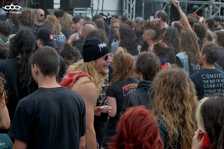 Et voilà, enfin la dernière ligne droite de ce dernier jour de festival, plus que 3 groupes, pas des moindres, et soleil couché qui laisse enfin la place à des superbes lights. Et ça commence par EXODUS. Friand de leurs apparitions scéniques, c'est le moment qu'à choisi la batterie de mon appareil pour s'épuiser, et je passe les 3/4 du concert dans un bar VIP vide... Mais il ne m'empêche pas d'entendre la setlist axée comme le plus souvent sur "Bonded by Blood" pas moins de 4 titres, mais aussi les deux derniers "Exhibit".Le combo mené par un Rob Dukes toujours aussi charismatique ne serait-ce que par sa carrure sait en donner à son public, et c'est une fois rechargé pour assurer les deux derniers sets que j'entre directement dans le pit histoire d'en profiter un peu sur et heureusement "Bonded by Blood", "The Toxic Waste" et "Strike of the Beast" qui clôt leur set.