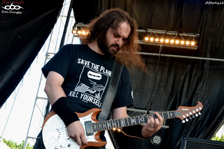 On enchaîne avec les autres absents de l'an dernier qui cette fois sont de la partie : ATARAXIE. Les Rouennais qui déferlent dans un Funeral Doom/Death ont bien fait de se faire attendre, ayant eux aussi un nouvel opus à nous présenter : " L'être et la Nausée" dont on aura d'ailleurs un extrait, " Face the Loss Of Your Sanity". C'est pas toujours facile d'apprécier un groupe de Doom en début d'après-midi, car à l'instar de RLHT un peu plus tôt, ATARAXIE se ressent beaucoup plus pessimiste et sombre encore ! Un lightshow du tonnerre aurait pu rendre tout fan de Doom conquis si le groupe était programmé en soirée, hélas ce n'est pas le cas... Je tente d'apprécier tant bien que mal les 4 titres des Rouennais malgré tout, et en fermant les yeux, on entre dans cet état proche de la léthargie tout comme les effets produits par les cachets portant le même nom, sauf lorsque qu'ils reviennent à des rythmiques très Death, froides comme le Nord ! 40 minutes trop rapides dans leur écoulement, mais dans le rythme imposé par le quatuor on en compterait le double ! A revoir et à écouter sans cesse...