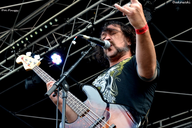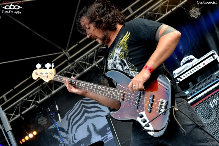 On reste toujours en France avec les Parisiens de BUKOWSKI. Le quatuor Southern rock n'est pas dans la demi mesure et que ce soit au look très redneck, ça sent la grosse moto et le bourbon ! Alors qu'eux aussi ont un nouvel album "Hazardous Creatures" à présenter (sur lequel je n'ai pas encore posé l'oreille) il faut dire que la donne pourrait changer. 4 titres pour cet album sur 9, il n'y a que le second opus qui est peu représenté avec un seul titre (je vous laisse deviner pour les 4 derniers...). Un son très cru qui colle à l'ambiance "rock 'n roll" sur scène, le groupe rend très bien en condition "live" ne serait-ce que par une présence et une scène parfaitement occupée. Une bonne découverte qui se fête à coup de pintes avec le groupe et surtout un soleil qui pointe le bout de son nez !