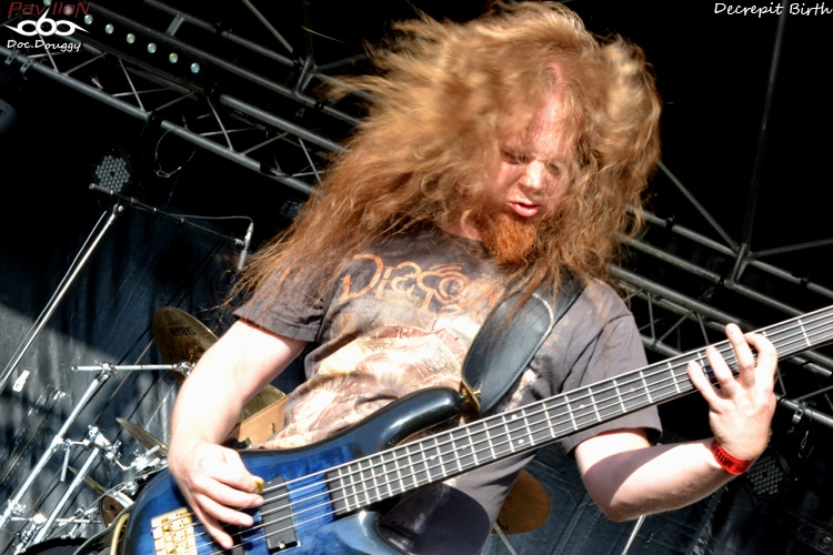 Fini les concerts Stoner pour le moment (si on excepte LUTECE juste avant) et passons au Brutal Death avec DECREPIT BIRTH. Même rendu qu'au Neurotic Deathfest, même si je trouve que les guitaristes sont un poil en dessous... Une setlist plutôt axée sur leurs premières réalisations dans sa vague purement Brutale, avec juste "Symbiosis" tiré de leur dernier album en date et la reprise de "Crystal Mountain" (cover de Death). Mention spéciale au chanteur qui à mon souvenir est le seul artiste à porter un tee-shirt du festival ce week-end ! (Ou alors l'autre devait être devenu une loque...) DECREPIT BIRTH c'est bien, mais m'est avis tout de même que ça poutre plus en studio...
