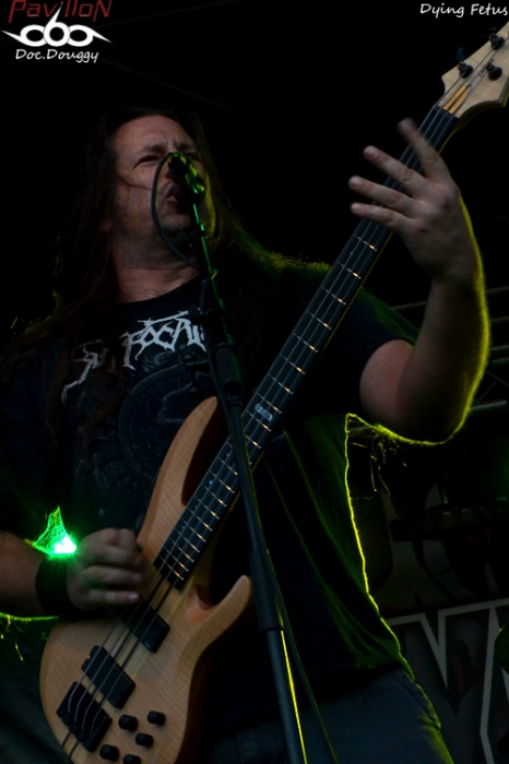 Alors qu'ils étaient en tournée européenne durant tout l'été c'est ici à Saint Nolff que celle-ci se termine. Et même si c'est la fin, le groupe se donne à fond, créant avec Aborted l'une des meilleures ambiances du festival, c'est simple, ça pit, ça circle, et ça slamme à tout va ! Des solis monstrueux, une base rythmique sans failles et les chants assurés par Sean et John (qui a un petit air de Devin Townsend soit-dit en passant) sont alarmants ! Une setlist qui reprend toute leur disco sans oublier le dernier en date, DYING FETUS a pris d'assaut la 2nd stage pour le bien (ou la douleur des coups reçus dans le pit) de tout un chacun. Le foetus est peut-être mourant, mais eux sont bien vivants !