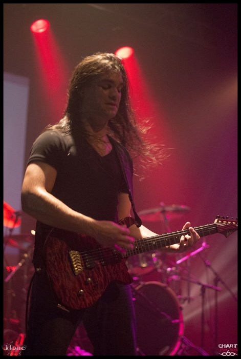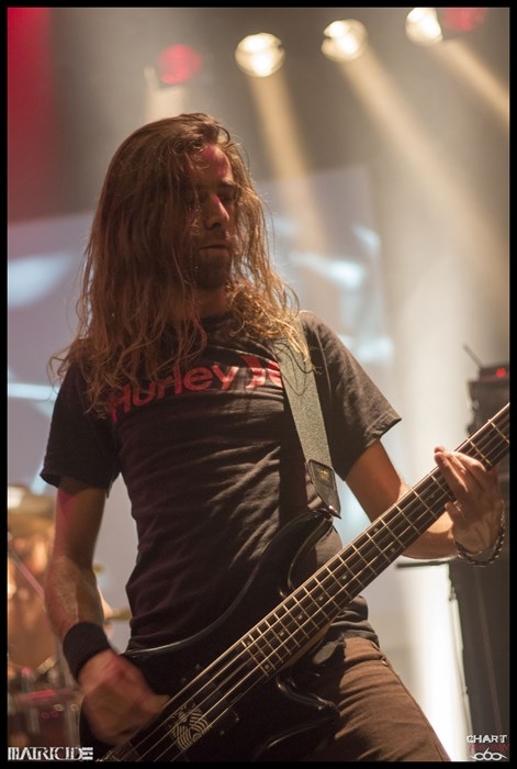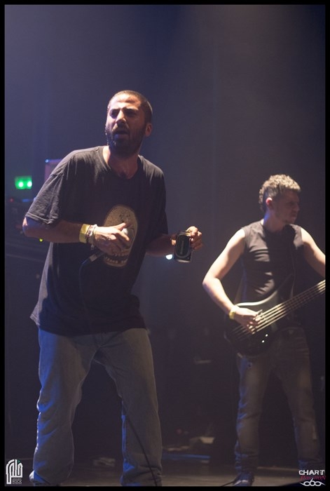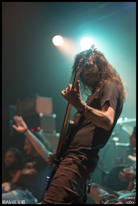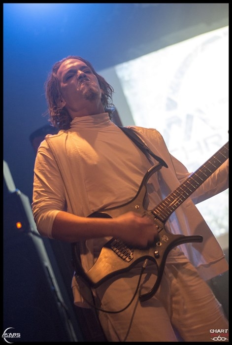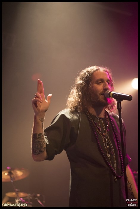 Ce sont les français de THE MARS CHRONICLES qui ouvrent la soirée tout de blanc vêtus. Si l’idée de se vêtir d’une couleur identique et de porter des lentilles noires est très bonne, il est regrettable que les musiciens ne soient pas aller encore plus loin en s’uniformisant totalement. C’est juste une remarque de l’ordre esthétique mais sur scène, cela aurait eu encore plus d’impact. Au niveau musical, le groupe est très énergique et bien en place. Le style oscille entre post rock, hardcore et metal indus. Le résultat est détonnant. THE MARS CHRONICLES invite sur scène le chanteur de MATRICIDE pour un petit duo afin de fêter dignement le dernier concert de la tournée pour la formation israélienne. Le résultat est encore une fois remarquable. Le changement de plateau est remarquablement rapide et en moins d’un quart d’heure MATRICDE est sur scène. Comme je viens de le dire, il s’agit de leur dernière date sur cette tournée. C’est l’occasion pour les membres d’ORPHANED LAND de venir bizuter leurs compatriotes en venant faire un peu tout et n’importe quoi sur scène. L’ambiance est franchement amicale et agréablement bonne ! Cela n’empêche d’ailleurs nullement MATRICIDE de distiller un thrash aux fortes teintes hardcore terriblement efficaces. On retrouve ici et là quelques influences orientales loin d’être déplaisantes. Il s’agit bien là d’un show hors du commun car musicalement MATRICIDE est au top mais l’ambiance sur scène a tout pour convaincre l’assemblée. Un sacré effet que cette prestation ! Un groupe à suivre et à encourager à revenir chez nous pour d’autres dates ! Il est maintenant temps d’accueillir KHALAS, le groupe palestinien de l’affiche. Si dans un premier temps le public semble quelque peu désorienté par ce mélange de rock et de musique orientale, l’auditoire se laisse finalement emporter par la musique. Il est certain que pour connaître ce groupe, il fallait le chercher sur le net car la disponibilité de ses albums est plutôt restreinte mais cela devrait peut-être évoluer avec cette tournée. On sent d’ailleurs que le groupe débute sur ce type de scène car certaines petites imperfections les trahissent mais peut on vraiment le leur reprocher ? Non, certainement pas ! On apprécie ce show aux saveurs exotiques qui vous transporte totalement ailleurs. Cela change radicalement de ce que l’on peut entendre de manière générale dans le milieu du metal et cela ne fait vraiment pas de mal. Cela me fait dire qu’il reste encore bien des horizons à explorer et de nouvelles saveurs à apporter dans le monde la musique. KHALAS est la preuve de ce que l’on peut encore découvrir. Un gros coup de cœur pour ce groupe et c’est bien mérité ! Avec un timing impressionnant de rigueur KLONE débarque sur la scène de la MJC avec son post rock efficace et énergique. L’ambiance est contrastée sur cette affiche et ce n’est pas quelque chose qui me déplait. Cependant, après une formation telle que KHALAS, le retour au post rock n’est pas forcément évident. Mais ne soyons pas mesquin, KLONE est énorme sur scène ! L’énergie du groupe est impressionnante et la musique vraiment prenante ! La lourdeur du groupe me rappelle quelque peu certaines ambiances que l’on retrouve chez DOWN. KLONE contient certains aspects stoner bien sentis. Par rapport à certains autres groupes concourant dans la même catégorie, KLONE se place en tête de liste malgré des influences très marquées. ORPHANED LAND est donc là pour défendre son petit dernier « All is One » à la pochette explicite et lourde de sens. Comme je le disais en introduction, le groupe a réussi à joindre le geste à la parole en partant sur cette tournée en compagnie de KHALAS. Le combo a toujours aimé les mélanges et ce depuis son tout premier essai, « The Beloved's Cry », il y a maintenant 20 ans. Si certains mélangent folk et metal, ORPHANED LAND fait la même chose en mélangeant folk oriental avec des influences domm, death et autres. Pour ceux qui ne connaissent pas, le résultat est impressionnant et particulièrement riche en émotions. La musique orientale véhicule quelque chose d’émotionnellement fort et de quasiment mystique. Kobi derrière son micro fait figure de leader charismatique. Je trouve personnellement que ce chanteur a quelque chose de Fernando RIBEIRO de MOONSPELL ou de Vorph de SAMAEL. Ce sont des personnes que l’on écoute quand elles s’adressent à vous car elles savent capter votre attention comme personne d’autre. C’est ce qui se passe lors de ce concert. La salle est littéralement conquise par le groupe. Il n’y a qu'à demander et le public accompagne le groupe en donnant de la voix ou en sautant. L’ambiance est particulièrement bonne et lorsque Kobi s’adresse au public en lui indiquant les sujets de certains morceaux, la guerre en Syrie notamment, plus personne ne dit le moindre mot et c’est un silence religieux qui se fait entendre. C’est quelque chose d’assez marquant auquel on participe. Il n’y a rien à redire, tout est quasiment parfait sur cette prestation. Le groupe est en forme, ravi d’être ici si on en juge par les sourires ineffaçables du visage de ces musiciens. Les morceaux sont impeccablement joués et très bien sentis. Et lorsqu’au bout d’une heure et demie tout est fini, le groupe descend directement dans le public pour filer au merchandising afin de terminer sa soirée avec le public dans la plus stricte des bonnes humeurs. Soirée totalement réussie et ambiance incroyable. Je partais motivé mais parfois, on est déçu par des groupes où l’on attendait trop mais là, ce n’est pas du tout le cas. Les groupes m’ont convaincu même si quelques détails n’y étaient pas mais on s’en moque au final. L’impression générale est tellement bonne qu’on ne s’y attardera pas ! On compte sur le Headbang Club de Lyon pour r