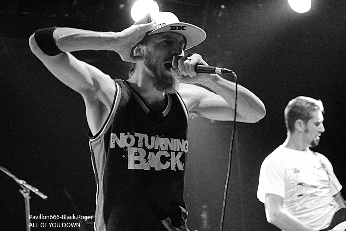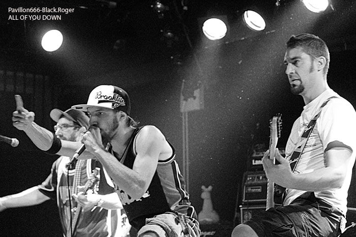 Les punks de Birmingham vont donc, là, tout de suite, enfin presque, ravager la salle du Clacson. Mais patience, les « coreux » Lyonnais de ALL OF YOU DOWN sont chargés de « chauffer » la salle auparavant et c’est une bonne idée. Beaucoup de monde ce soir, ce n’est pas tous les jours que G.B.H. se présente sur scène chez nous en France. Après un passage obligé au bar des lieux on entre dans la salle proprement dite attirés par le son, celui de ALL OF YOU DOWN donc qui, tout heureux de jouer ce soir, nous balance avec énergie son hardcore old-school en pleine figure. Cette énergie caractéristique du combo est bien au rendez-vous, le son est énorme et les fils spirituels de Madball, Sick Of It All, Raised Fist et autres Strife sont enragés et engagés dans leurs propos. Bien entendu, les titres de leur EP 6 titres « Not Loose My Way » de 2012 nous serons jetés en pâture, mais pas que. Alors, bien sûr me direz-vous leur hardcore n’a pas la prétention de révolutionner le genre c’est certain. Mais que cela fait du bien de les voir à nouveau en live avec des progrès certains dans la tenue de scène, on aime. Savourez donc cette chorégraphie bien sentie, cette basse ronflante, ces guitares cisaillantes et cette batterie précise et démonstrative. Le style NYHC est bien respecté et bien interprété, il n’en fallait pas plus pour un public qui « ose » enfin se lâcher mais seulement sur les derniers titres. Pas le temps de finir sa « mousse » que déjà ceux de G.B.H. branchent leurs grattes et envoient la sauce. La sauce piquante d’un punk millésimé et labellisé avec les ineffables Colin Abrahall, Ross Lomas, Jack Blyth et Scott Preece. Leur prestation donnée au Hellfest en 2012 dans la « warzone » m’avait laissé un goût de « revenez-y » car le show de cette légende keupone british m’avait surpris de la part de musiciens plus tout jeunes mais ayant gardé un punch incroyable malgré le temps qui passe… Alors ce soir je savoure et ne suis pas le seul car le pit est en folie, les « crêtes » s’entrecroisent devant la scène devant Colin qui vient exciter, provoquer et fait chanter ceux des premiers rangs. Mais laissons parler, enfin chanter, Colin qui démarre « à fond le canettes (les manettes pardon !) » sur fond de sono grésillante poussée dans ses derniers retranchements. Pour le premier morceau on ira donc dans le dernier « méfait » du groupe « Perfume And Piss » avec le titre « Unique », puis s’en suivrons 25 morceaux de bravoure puisés dans les « classiques » des Grevious Bodily Harm (G.B.H.) dont le fameux « City Baby Attacked By Rats » de 1982. Rappelez -vous ces paroles « Residing in a squalid place, it can’t be too much fun Your brain is getting laten away by the rat living in your skull ». Et puis on nous envoie “Am I Dead Yet?”, et puis “Give Me Fire”, et puis, tiens une reprise des STOOGES pour varier les plaisirs. Bref, plus d’une heure de punk/hardcore mythique comme on l’aime, dérangé, dérangeant, qui vous éclate l’esprit. En fin de set le sol du Clacson est « collant », c’est donc le signe d’un bon concert n’est-ce pas ?. Qu’une envie donc, celle de revoir encore et encore ce G.B.H. toujours debout et toujours motivé, alors, « No Survivors » ? Mais si « Punk As Fuck »! Set-List : Unique, R.A.T., Knife Edge, Lycanthropy, Necrophilia, State Executioner, Dead On Arrival, Generals, Freak, Alcohol, No Survivors, Self Destruct, Big Women, Sick Boy, Slit Your Own Throat, Am I Dead Yet, Give me Fire, Man Trap, Catch 23, Hellhole, Kids Get Down, Drugs, Diplo, City baby Attacked by rats, revenge, Hey Keef. Soirée chaude, soirée brûlante, le Clacson a transpiré et be public s’est éclaté, que demander de plus? Merci à Punk Rock Shows In Lyon pour cette nuit hors du temps, pas de « no future », mais « punks not dead ». |