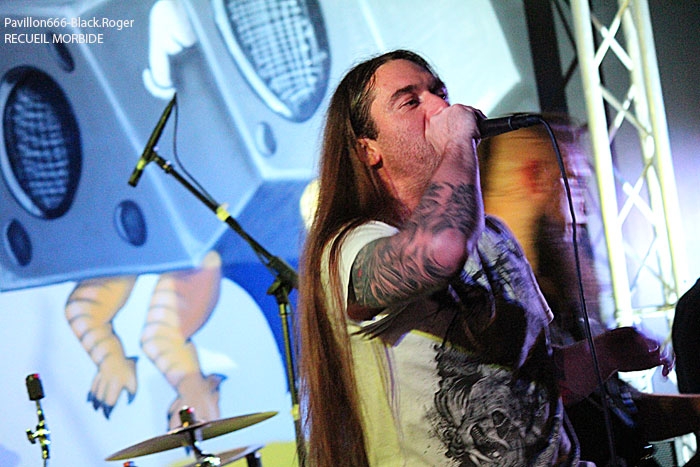 En effet l’affiche proposée et ce concert organisé par Shaytan en collaboration avec Transylvania prod attire forcément avec au menu du métal extrême qui va être envoyé par les Franc-Comtois de RECUEIL MORBIDE, les Bourguignons de PSYGNOSIS et les Savoyards de SHAYTAN et SCREW. Après avoir inteviewé backstage Recueil Morbide avant leur concert je m’en vais devant la scène pour apprécier (ou pas) le premier groupe de la soirée appelé SCREW. C’est un trio composé d’un guitariste/chanteur (ex-ASSAULTER), d’un bassiste et d’une charmante « batteuse » derrière les fûts. Ce groupe donne son premier concert avec des compositions somme toute assez variées. Au menu du thrash/death aux multiples ambiances. Les musiciens ne sont pas des novices ni des manches, cela se ressent bien et surtout ils semblent vouloir se faire plaisir en live. Alors nous en profitons par la même occasion, on aime ce bon vieux thrash qui n’a pas prit une ride depuis le temps. Neuf titres et puis s’en vont, alors même si ces morceaux ne sont pas encore connus dans la sphère métal, les voici : Born To Serve, Man is Good, Provocative Pussy, Executive Power, The Lord, Half Dead, Nanny, Rot Fool, The Storm Rages. Place maintenant au death/thrash qui arrache avec les Annéciens/Rumilliens de SHAYTAN. Et là, ça ne rigole plus (si, un peu quand même). Pas encore de CD, EP ou autre démo pour ces furieux du métal brutal qui lorgnent beaucoup vers le death/thrash mais aussi vers le black parfois et flirte avec le « core » par moments, mais à leur actif des concerts mémorisables. SHAYTAN ne fait donc pas dans la dentelle vous l’aurez compris avec un chanteur/bassiste bien dans ses « growls », deux guitaristes aux riffs mortels et aux soli vicieux et un batteur à l’aise derrière son kit. Les titres défilent, le public suit et s’éclate devant la scène, et l’on déguste dans tous les sens du terme. Bonne présence scènique donc, bon son, morceaux choisis, on aime fatalement et on en aurait bien repris une rasade, mais l’heure tourne et dérrière, ceux de Psygnosis poussent pour prendre la place sur l’estrade. Set-List : Shaytan, Mournful Journey, I Stole His Identity, Forgotten Souls, Chair(e) Trauma, The Revelation, Coffin Rock, Grief and Remorses, Strange Voices, No Lies, The Agony Jail. Changement de style avec les mâconnais de PSYGNOSIS qui tout en restant dans le métal extrême, instaurent des ambiances disons…atmosphériques. Chez eux nous avons toujours le calme avant la tempête, c’est ça le métal électronique expérimental, alors on aime ou on aime pas, mais l’expérience Psygnosis sort des sentiers battus. Peut-être que la présence d’une batterie programmée gêne quelque personnes. Mais globalement les compositions des Bourguignons tiennent la route. Deux guitaristes, un bassiste et un chanteur inspiré vous prennent le cerveau en otage, vous font prisonniers de leurs compositions dans lesquelles on retrouve des mélodies parlées et samplées se déclinant en un déluge death-métal ravageant tout sur son passage tel un tsunami pathétique. Ce soir le public adhère pleinement à la démarche métallique de Rémi, Jérémy, Anthony et Yohan. Lasers, lumières, présence des musiciens, gros son, voix décharnées, samples bien placés, le groupe avance dans son originalité et gomme petit à petit les quelques défauts de jeunesse trouvés dans leur album « Anti-Sublime » de 2012. C’est donc un concert épique et furieux de post-metal cosmique construit de main de maitre par PYGNOSIS qui a séduit ce soir la nombreuse assistance attentive et déchaînée chez Drey à Seynod, excellent. Il est déjà bien tard, les retards se sont accumulés depuis le début de la soirée et l’on croise les doigts en espérant que tout ce public motivé présent ce samedi soir ait la patience d’attendre pendant la mise en place de la tête d’affiche de la soirée. Cette tête d’affiche n’est autre que les cinq brutes du death-métal frenchie appelés RECUEIL MORBIDE. Ceux de Montbéliard sont impatient d’en découdre et le public est toujours présent, ça va faire mal. Après l’intro de mise en bouche, les bouchers Franc-Comtois lâchent les décibels et se lâchent par la même occasion sur la scène de Chez Drey. « Alone » et « Unsalubrious Walls », les premiers titres annoncent la couleur. C’est rapide brutal, saignant, vicieux, un must dans le domaine du métal de la mort pratiqué en France. Ici on mise sur tout ce qu’il ya de plus « destroy » en matière de métal extrême avec des dérapages death pachydermiques pimentés par des épices « grind » où les « grunts » et les « gruiks » font la loi. Mention spéciale aux guitaristes faisant « miauler » leurs 6 cordes respectives avec une technique époustouflante de maîtrise. Mention spéciale au frontman qui nous envoie ses vocaux déments en pleine figure. Mention spéciale encore au duo basse-batterie, un bassiste très présent et un batteur flirtant avec les 200 bpm. Bref, mention spéciale pour tous les membres du groupe. Ce groupe qui après 13 années d’existence, 4 albums (le 5ème sous peu) et d’innombrables concerts a marqué la scène brutale métal frenchie au fer rouge. Ce soir nous aurons droit à 3 nouveaux titres en avant-goût du futur opus intitulé « Morbide Collection » qui devrait voir le jour début 2014, on savoure d’avance. En tous cas, là, tout de suite à 1heure du matin le quintette rend les armes et laisse un public en état d’électro-choc, quelle claque ! Alors, les Recueil Morbide nous vous attendons là où vous voulez, quand vous voulez pour prendre notre dose de métal extrême et nous faire disséquer de bonne façon les méninges, merci. Set-list : Intro, Alone, Unsalubrious Walls, Chronicle Of A Decline : Perversion, Massive Destruction Weapon, Domination, Bipolaris, Crazy War, Vicious Circle, The Suffering Remains, Skin 