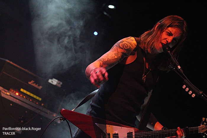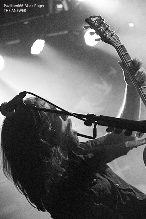 TRACER les kangourous d’Adélaïde envoient du lourd, du plombé dans un registre proche du Stoner. Cette tournée leur permet de présenter les titres de leur second album intitulé « El Pistolero », enregistrement bien accueilli à sa sortie par la critique. TRACER n’est pas un inconnu en France où il sait trouver un public qui adhère pleinement à sa musique. Sa musique, parlons-en, c’est un mélange de Stoner et de rock des 70’s qui contrairement à toute attente fait un malheur en live, comme ce soir justement. Le chanteur/guitariste, aux vocaux bien ciblés hard-rock, sait varier son chant avec aisance et ses riffs souvent convenus font quand même mouche. Le duo basse-batterie assure même dans les tempos aventureux accompagnant des dérives grungy. Peut-être qu’une basse un peu plus lourde les ferait basculer dans le véritable stoner enfumé et psychédélique, mais là n’est pas le propos pour l’instant. Tracer nous a littéralement « emballés » ce soir et même plus, on s’en souviendra. Ce fût LE concert de la soirée en tous cas, cela n’engageant que moi, car la suite va être plutôt déroutante. Set-List : Hangman, Too Much, Manic For Ya, Wrecking Ball, There’s A Man, Now I Ride, Dead garden, Devil Ride. En effet, tout d’abord tout irai beaucoup mieux dans le meilleur des mondes si THE ANSWER n’apparaissait pas dans une ambiance lumière noire. Les lights ne sont pas au rendez-vous, c’est le retour à la bougie (merci pour les photographes qui n’ont droit qu’aux trois premiers titres). Mais curieusement les lights feront leur apparition plus loin dans le milieu du set des irlandais. Bref, nous n’allons pas parler toute la soirée des lumières, bien que… Les Irlandais ont eux aussi un opus à défendre sur les planches qui s’intitule « New Horizon », album paru le 30 septembre dernier. D’ailleurs, le « back drop » du groupe est à l’effigie de l’artwork de ce nouveau CD. The Answer après des débuts difficiles et laborieux dans l’ombre, s’est surtout fait connaitre par ses prestations en première partie d’ AC/DC reconnaissons-le, ce qui lui a permit de se présenter dorénavant en pleine lumière (sic). Musicalement parlant les musiciens d’Irlande envoient des riffs et des soli à toute épreuve, se lâchant souvent en instrumental avec une batterie inventive soutenant l’édifice rock. La dénomination rock étant le pilier central ici, pas de problème, on joue, on a de la présence sur scène telle la chorégraphie du chanteur qui se prend un peu trop pour Robert Plant (LED ZEPPELIN) et cela devient un peu trop convenu à la longue. Dans les compositions du groupe on retrouve beaucoup de passages transpirant le hard-rock, le hard-blues et le blues « tout court » que l’on pratiquait dans les années 70 (DEEP PURPLE es-tu- là !). Et puis on retrouve aussi des dérapages dans le registre des GUNS N’ROSES carrément. Alors, pour moi, leur prestation de ce soir à Lyon sera plutôt en demi-teinte car les influences du groupe se font encore trop présentes. Pourtant, un potentiel énorme se fait jour, mais pour l’instant on attend encore l’accroche définitive d’une certaine originalité qui fera la différence. Peut mieux faire donc car il ne suffit pas d’être (presque) un copier/coller de groupes légendaires qui ont façonné un certain style il y à …longtemps. Set-List : New Horizon, Come Follow Me, Burn You Down, Speak Now, Under The Sky, Concrete, Freeway, On And On, Moment, Spectacular, Memphis Water, Waste Your Tears, Comfort Zone, Preachin’ Au final, nous avons trop eu l’impression que le public de ce soir (majoritairement plus tout jeune) était venu revoir avec THE ANSWER les gloires passées comme par exemple feu-THIN LIZZY de la belle époque. A méditer donc par ce groupe qui doit trouver son propre public aussi dans la jeune génération. En tout cas merci à Eldorado & Co pour ce concert intéressant tout de même et merci aux deux formations pour nous avoir communiqué leur passion musicale. |