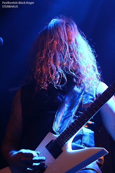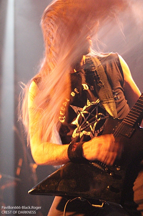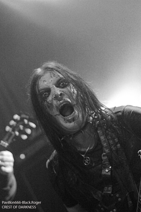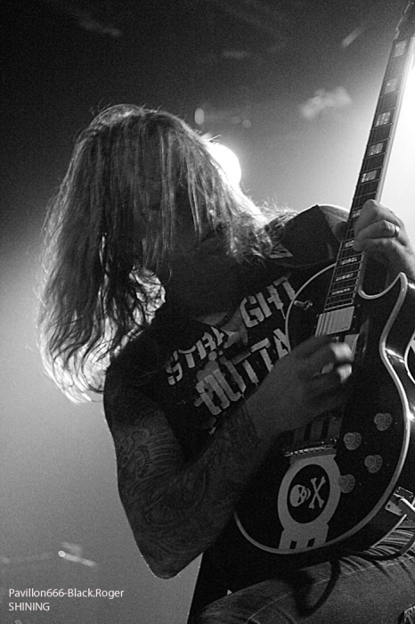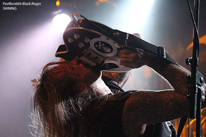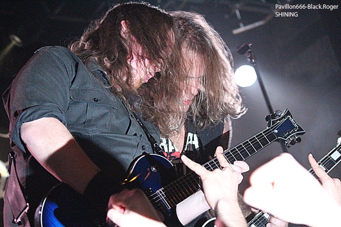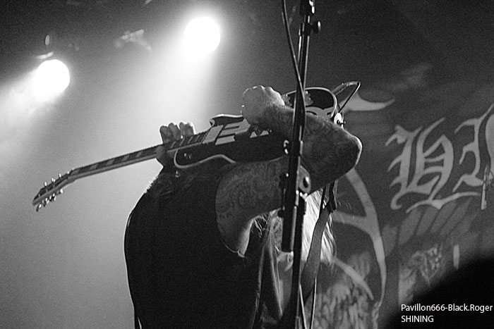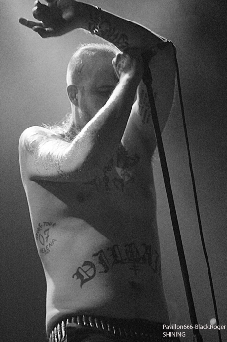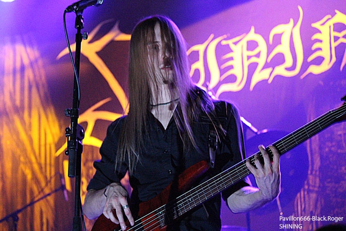 Bien entendu, le « tout black-metal » de la région et même plus loin est présent formant un public extrême pour une musique extrême naturellement et l’attente est fébrile avant que ne se présente sur scène la première formation de la soirée. Pour débuter ce sera, pour une petite demi-heure seulement, les Norvégiens de CREST OF DARKNESS qui vous nous emmener dans leur univers glauque et malsain idéal pour créer une certaine ambiance sombre et maudite. Après six ans d’attente, Iugar Amlien et ses musiciens nous ont offert en ce début de 2013 un nouvel et sixième opus intitulé « In The Presence Of Death » toujours bon même si pas exceptionnel, du Crest of Darkness comme on l’aime depuis déjà 17 ans. Ce soir, les Norvégiens ne vont pas faire dans la dentelle on s’en doute. C’est du dark bien foutu et bien théâtral qui nous est proposé avec un frontman en faisant des tonnes niveau présence et peintures black/death de rigueur dégoulinantes. C’est brutal évidemment avec un coté thrash et heavy sous jaçent. Riffs et soli impeccables et remarquables, batteur hors-norme derrière les fûts, nous n’avons pas vu le temps passer. Groupe méconnu à mon sens qui n’a pas le succès mérité depuis tout ce temps et c’est dommage. Du dark/black/death classique et efficace en somme, mais on aime tout simplement. Il ne faudra pas bien longtemps aux Suédois de STERBHAUS pour prendre la place sur scène, et c’est tant mieux, pas le temps de se refroidir l’esprit et le corps. Inconnu pour ma part ce combo de black/death/thrash surprend d’entrée de jeu par sa fougue en live. Formé en 2007 et avec leur second « méfait » sous le bras intitulé « Angels For Breakfast… And God For Lunch » ce jeune groupe de Stockholm se lance sur scène ce soir avec une attitude guerrière dans les peintures et sa chorégraphie très remuante. C’est thrash, voire speed-thrash bien souvent. Ils ont le droit ce soir à 50 minutes de set et vont utiliser ce temps qui leur est imparti à nous martyriser les tympans de belle façon. En ce qui me concerne je trouve leurs envois très (trop ?) thrash évidemment même si une déviance black apportée par des solis glacés et empoisonnés pimente le tout. Sterbhaus semble vouloir tout miser sur la vitesse d’exécution et une certaine technicité. Mais les envois sont de toute façon variés dans une démarche quelque peu progressive et pourquoi pas jazzy. Bref, ce quatuor extrême Suédois possède un énorme potentiel avec pour ne rien gâcher une présence scénique indubitable. Alors, thrash/black moderne et bien en avance ? Pourquoi pas, le publique de ce soir adhère à leur démarche et ce n’est que justice rendue. Brusquement, un mouvement de masse se produit et tout le monde s’agglutine contre la scène du Kao pour un chaos attendu avec la venue là tout de suite de Niklas frontman de SHINING. Personnage controversé, parfois haineux, parfois innatendu, mais qui hypnotise toujours une masse de black-métalleux et métalleux « tout court ». Niklas qui revendique son dégoût pour une certaine industrie discographique par exemple. Niklas qui nous propose une réédition de son livre « When Prozac No Longer Helps » pour mieux se faire comprendre. Niklas prisonnier de ses angoisses souvent, mais qui ce soir va nous donner un set mémorable, à moitié « clean », à moitié dérangé, à moitié sale, mais oh combien généreux avec une dynamique et une énergie folle sur les planches du Kao. Et puis, tout va vibrer dans la salle maintenant avec un public conquit d’avance frôlant l’hystérie pour quelques fans devant la scène. Pour les autres c’est l’extase dans cette ambiance particulière créée par Shinning. Shining qui a sorti huit véritables albums pondus par un musicien très prolifique. Le nouvel album "8 1/2 - Feberdrömmar I Vaket Tillstand" paru le 20 Septembre dernier n’étant en fait que des démos ressorties du placard avec au chant plusieurs chanteurs de black-metal dont Famine de PESTE NOIRE. Famine qui viendra ce soir au micro avec une voix Française bien entendu. Niklas a su s’entourer ce soir de musiciens hors pair et les longues parties instrumentales, les soli guitaristiques ont été à la hauteur des compositions, magique tout simplement. L’ambiance fût particulière cette nuit, particulièrement prenante, mélange de noirceur et de lumières éthérées, de sensibilité aussi, de déluges métalliques bien sûr après les états d’âme imagés de Niklas. Niklas souvent accroupi pour conjurer ses démons intérieurs sur scène. Nous n’avons pas vu le temps passer encore une fois, était-ce long, était-ce la nuit, le jour, sur terre ou dans un autre monde parallèle, parallèle au néant ? Nul ne le sait vraiment. Tout ce que nous savons, c’est que SHINING nous a éblouis ce soir et ce fut bien, un concert énorme en forme de coup de cœur. Un cœur remplit de sang noir, mais vivant, allant vers un renouveau plein de promesse, comprenne qui pourra ! Set-List : 1. Människa o'avskyvärda människa 2. Yttligare ett steg närmare total jävla utfrysning 3. Vilseledda barnasjälars hemvist 4. Ohm (Sommar med Siv) 5. Submit to Self-Destruction 6. Fields of Faceless 7. Han som hatar människan 8. Låt oss ta allt från varandra 9. For the God Below 10. Förtvivlan, min arvedel Au revoir la chaleur du Kao, bonjour la nuit, le froid, le contraste de chaque concert hivernal en fait. Mais les images et les sons, vues et entendus lors de cette soirée resteront longtemps gravées dans un coin de notre cerveau car ce fut une soirée particulière avouons-le. Merci encore à Souds Like Hell Productions pour le précieux « sésame » et merci au gens venus du nord qui nous ont apporté beaucoup dans cette soirée métallique en diable |