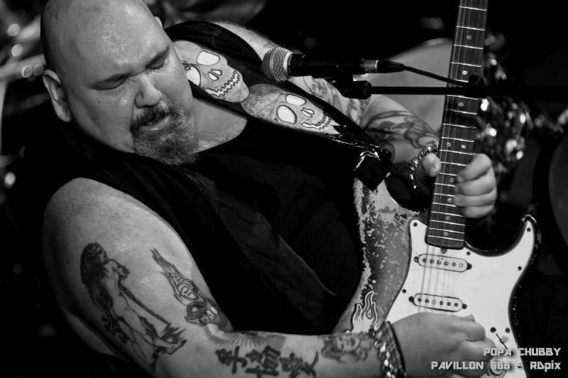 Les gens s’approchent de la scène sobrement équipée. Pas de « back-drop » au nom de l’artiste, pas de murs d’enceintes non plus. Simplement un gros set de batterie puis un autre plus petit juste devant. Un micro sur pied et des enceintes de retour placé en demi-cercle autour de celui-ci. Et trois gros amplis dans le fond ainsi que deux pédales d’effet branchés dessus. C’est ce qu’a pu contempler le spectateur durant ces 45 min d’attentes, le temps que la salle se remplisse et que l’artiste fasse son entrée sur la scène. C’est d’un pas incertain que Popa Chubby arrive sur scène et attrape sa Fender. Aussi tôt ses mains posées sur le vieil instrument (commençant à accuser le poids des années) l’homme semble déjà beaucoup plus sûr de lui. Le personnage en impose aussi bien physiquement qu’artistiquement. Le génie de ce bluesman ne fait aucun doute dès qu’il commence à promener ses doigts sur sa guitare. Aussi bien qu’on se demande comment un homme aux doigts boudinés comme les siens peut avoir une telle agilité dans ses mains. Il joue à merveille des morceaux blues, les accompagnant d’une voix rocailleuse créant un mélange très adapté à son style. Il apportait parfois sa propre touche à de vieux standard du blues comme Rock me Baby de B.B King mais jouait aussi tel un virtuose ses propres compositions. Durant tout le show séparé par 20 minutes d’entracte, il a fait preuve de son talent de multiples façons. La première heure, il l’a consacré à du blues pur. La seconde partie de son show sonnait beaucoup plus rock des années 60-70 comme il sait si bien le faire. Mais pas seulement. Le guitariste savait par moments ajouter une touche de mélodie tout en faisant sonner son instrument d’une façon inhabituelle. Sa façon de frotter les cordes donnait un son proche d’un instrument à vent tel le hautbois. C’était bluffant. Mais le génie de la guitare savait que le public risquait de se lasser à écouter des solos interminables pendant les 2h30 qu’a duré le spectacle. Il a donc cherché à varier les plaisirs. Tantôt laissant son bassiste faire une démonstration de son meilleur funk, tantôt accompagnant son batteur dans un duo de batteries endiablé. Le guitariste nous a même gratifié d’un medley dans lequel il a incorporé une adaptation à sa sauce du thème principal du film le Parrain écrit par Nino Rota. Toute la soirée, Popa Chubby donnait le rythme et la direction à suivre à ses deux musiciens. Par moments il leur demandait de ralentir, ou bien même de s’arrêter pour le laisser jouer seul. Le tout montrait clairement qu’il était là pour se faire plaisir en jouant ses morceaux comme il l’entendait au moment où il le voulait en faisant la part belle à l’improvisation. C’est dans les dernières 30 minutes de son concert que Popa Chubby a fait sa plus grande prestation en reprenant Hendrix pour le plus grand plaisir de son auditoire, suivit de ses compositions personnelles qui ne faisaient pas pâle figure non plus. Hélas le tout semblait se perdre dans le méandre de solos complexes et sans fin qui a force se ressemblaient tous sans qu’on en voit ressortir quelque chose de spécial pour autant. La prestation de ce soir n’en était pas moins impressionnante. Popa Chubby a démontré qu’il avait bien sa place parmi les grands guitariste de son époque et qu’il est loin d’être ridicule à coté d’un Jimi Hendrix ou d’un Stevie Ray Vaughn. Le public semble ravi d’en avoir pris plein les oreilles toute la soirée. Pour ma part j’ai beaucoup aimé même si j’ai trouvé ça tout de même un peu long sur la fin. Je conseille tous ceux qui ne connaissent pas de voir un de ses concerts à l’occasion, ça vaut largement le déplacement. |
