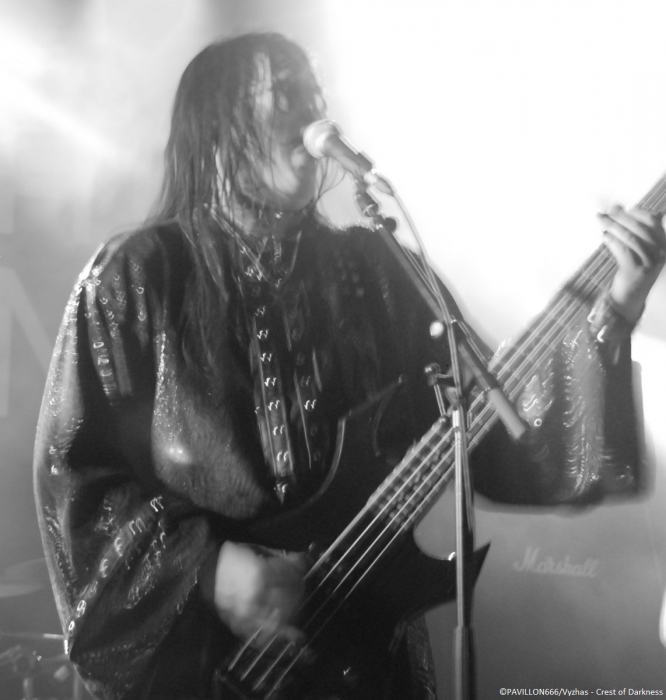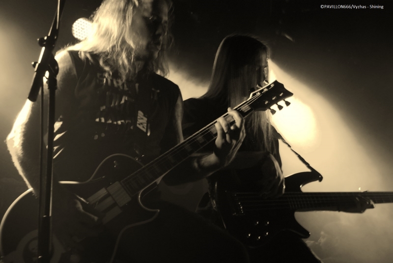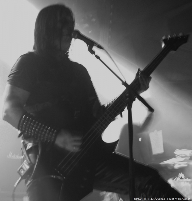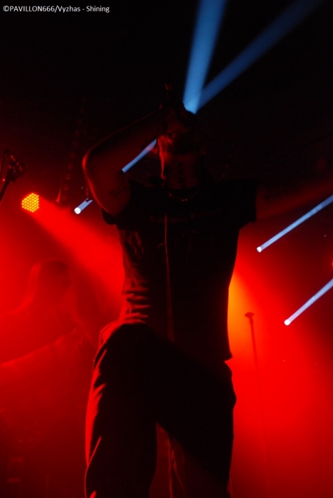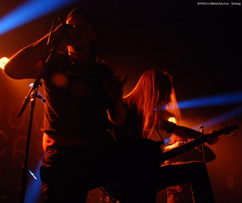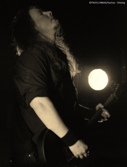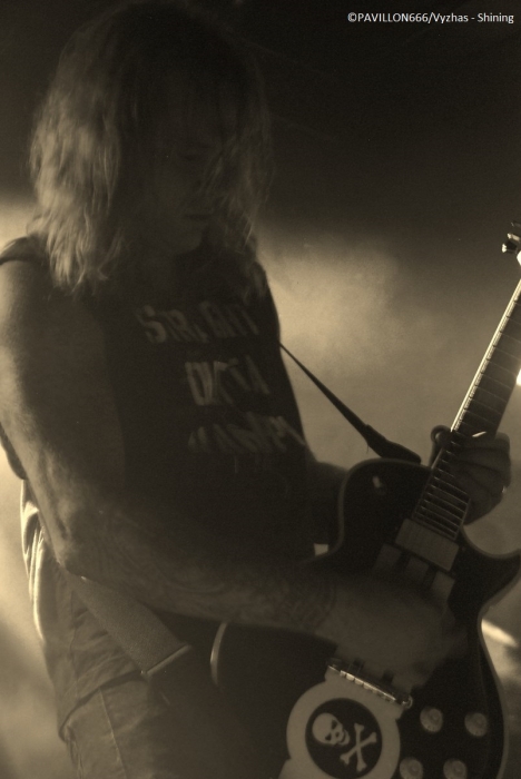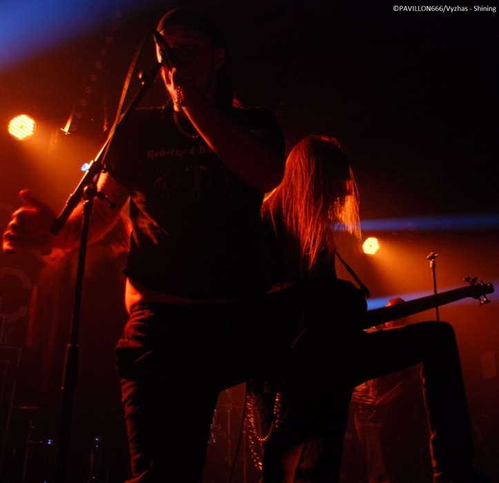 Arrivant à 19h pour interviewer « Monsieur Shining », je dois renoncer à m’entretenir avec le frontman torturé parti manger, selon l’organisation et le tour manager. C’est quelque peu « déçu » que je me dirige tout de même vers les premières parties. Je remarque que peu de personnes ont répondu présent à l’appel des suédois, préférant sûrement se rendre au Black Metal is Rising. C’est donc devant un public épars que Crest of Darkness ouvre les hostilités. Si je devais résumer la prestation des norvégiens, je dirais plat et si je devais résumer leur musique je dirais sans intérêt. Alors on passera sur l’accoutrement du chanteur/bassiste, Ingar Amlien, sorte de Dee Snider (Twisted Sister) version « black metal » à la Fadadès ! Ayant tout de même quasiment 20 ans d’existence, je suis surpris de voir un groupe manquer autant d’assurance et de charisme sur scène. Non content d’officier dans un black très convenu et pas original pour deux sous, le chanteur n’arrive pas à captiver les foules et sa technique vocale laisse clairement à désirer. Les autres musiciens sont tous très en retrait. Même si le son plutôt correct du quatuor était au rendez-vous et que quelques bons riffs thrash émergeaient un peu de l’ensemble, le groupe n’aura récolté que de très timides applaudissements. On enchaîne avec le deuxième groupe de la soirée, Sterbhaus. Ça n’a clairement rien à voir avec le groupe précédent. La formation nous délivre un black/death/thrash moderne énergique, puissant mais surtout très efficace et avec une bonne dose d’humour. Les suédois sont venus défendre leur dernier album intitulé « Angels for Breakfast …and God for Lunch » sorti en 2012. Les musiciens sont carrés, donnent tout ce qu’ils ont sur scène et possèdent une fougue des plus communicatives ! Et ça marche, le public en redemande. Leurs peintures « guerrières » est en parfaite adéquation avec le déferlement de décibels sur scène. Objectivement ce fut une excellente prestation de la part du quatuor, mais leur musique ne m’a pas spécialement transcendé. Simple question de goût, mais les structures un peu trop techniques et progressives m’ont un peu ennuyé par moment. J’avais également l’impression d’écouter un peu le même morceau tout le temps, excepté le break d’un titre aux sonorités blues/country assez amusantes. Au final, Sterbhaus a livré une performance de haut niveau avec une musique variée (voire un peu trop en ce qui me concerne) et méchamment efficace ainsi qu’une présence scénique dynamique. Avec une mention spéciale pour le chanteur/bassiste Marcus Hammarström à l’énergie communicative et visiblement heureux de jouer pour la toute première fois à Paris. Le public a été réceptif aux brûlots de Sterbhaus et tant mieux, car c’était mérité ! Place maintenant à la tête d’affiche, les maîtres incontestés du black dépressif à la suédoise, Shining. La hâte manifestée par un mouvement de masse est bien palpable. La salle est remplie à l’extinction des lumières. Place à la messe noire qui débute sur une intro des plus malsaines reprenant des extraits de la musique du film de Christopher Nolan « Inception ». Les musiciens font leur entrée sur scène, Niklas Kvarforth est le dernier à arriver préparant soigneusement une entrée théâtrale ! Ayant vu Shining à deux reprises en festival, il me tardait de les voir enfin dans une salle, et je dois dire qu’avec Shining je n’ai jamais été déçu. Le groupe confirme donc ce soir qu’il est une valeur sûre. Niklas est au sommet de sa forme, faisant la démonstration de son charisme habituel. Il occupe la scène à la perfection, son chant très particulier se conjugue à merveille avec ses lamentations. Le musicien fait preuve d’une attitude toujours aussi tourmentée, il rampe par terre, boit du whisky et fume des clopes avant de se les écraser sur le torse. Malgré quelques problèmes techniques au début obligeant Niklas à chanter dans deux micros, le son est dantesque et très limpide ! Tous les musiciens livrent une prestation d’une grande précision et se permettent un interlude où les deux guitaristes Peter Huss et Euge Valovirta et le batteur Rainer Tuomikanto auront à cœur de démontrer l’étendue de leur virtuosité. Le public est aux anges en témoignent les nombreux pogos et l’hystérie générale dans la salle. Niveau setlist, c’est un petit peu le point noir de la soirée : les ayant vu deux fois, leur setlist ne change pas vraiment, les morceaux s’axent en priorité sur les deux derniers albums « Redefining Darkness » (« Han Som Hatar Människan » et « For The God Below »), VII - Född Förlorare (« Förtvivlan Min Arvedel », « Människa O'Avskyvärda Människa) ainsi que leur album culte V – Halmstad (« Yttligare Ett Steg Närmare Total Jävla Utfrysning » et « Låt Oss Ta Allt Från Varandra »). Nous aurons tout de même droit à des titres de VI – Klagopsalmer et du III – Angst avec un « Submit to self destruction » toujours aussi tranchant. Le « si si la famine » hurlé par Niklas annonce l’arrivée sur scène du leader des corrosifs de Peste Noire, j’ai nommé Famine. Présent au départ dans le public, le vocaliste monte sur les planches pour interpréter « Fields of Faceless » rebaptisé « Terre des Anonymes » sur le nouvel album "8 1/2 - Feberdrömmar I Vaket Tillstand" paru le 20 Septembre dernier et qui est en fait une compilation de démos réenregistrées. Famine délivre une performance de réinterprétation remarquable et à titre personnel, je trouve que sa voix a beaucoup plus de puissance et d’impact en live que sur CD. Le concert se clôture sur le titre « For the god below » et ses envolées guitaristiques dignes de Led Zeppelin. Niklas démontre sa « devotion to Paris » (au lieu « devotion to evil », paroles originales du morcea