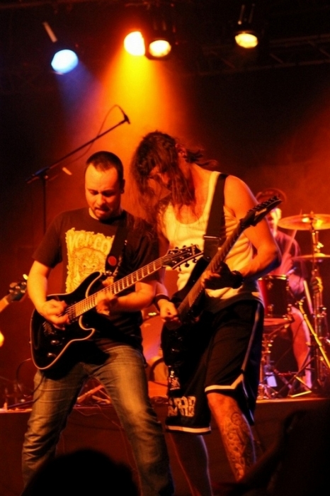 Lorsque que Brising foule la scène, peu de spectateurs sont présents, le groupe envoie sans timidité et sans complexe son metalcore d'une assez belle manière. Les musiciens pratiquant la scène régulièrement sont dans leur univers et savent communiquer avec l'audience. Dum's (chant) n'hésite pas à interpeller le peu de metalleux présents, Thib et Ben (guitares) donnent dans le riffs puissants, s'activant eux aussi sur les planches sans retenue. La section rythmique finit de convaincre le public en donnant dans du solide et lourd. Les compositions sont intéressantes et possèdent un certain potentiel, il reste au groupe à finaliser l'ensemble afin de poser tout ce matériel sur un support audio. Changement de registre avec 91 Allstars, les essonniens possèdent une belle carte de visite en ayant accompagné des formations nationales et internationales : Sick of it all, Gojira, Lofofora, Born from pain, 25 ta life, Do or die, Mass hysteria, Knuckledust, ajouté à cela un premier album "Telle est la loi", encadré par Stéphane Buriez, sorti en 2010. Durant 45 minutes, les cinq musiciens vont se donner sans ménagement. Julien (chant) s'agite sans cesse et s'égosille comme si sa vie en dépendait, le duo de guitaristes distille des riffs épais. L'assise rythmique est parfaitement calée. La globalité du show est orientée hardcore pur et dur sans demi-mesure, un set agréable et plein de potentiels. My Mental Health Degrades (MMHD) sont eux aussi habitués à s'exprimer sur des planches, l'attitude scénique est à l'image de leur nom. Tout au long de leur show, les facultés mentales du groupe se dégradent et les cinq compères ne tiennent plus en place. Au programme sauts, poses acrobatiques, jeu de batterie en apnée... certains clichés font penser aux pionniers du skate metal, normal MMHD fait dans le Hardcore mélodique. Au programme : riffs imposants, rythmique et chant puissants agrémentés de séquences mélodiques . Les membres assurent et maîtrisent leur instrument, leurs niveaux techniques les autorisent à délivrer un set explosif. Ben (chant) n'est pas en reste et attise le public un peu plus nombreux. L'ambiance est intense sur scène et la fosse ne loupe pas un moment de ce show. Une bonne grosse baffe. Je veux bien tendre l'autre joue !!! Le set final est donné à T.A.N.K., inutile de présenter la formation francilienne. La set list fait plus référence à leur premier album "The Burden Of Will" qu'à "Spasms of Upheaval". Symheris et Nils (guitares) envoient des riffs énergiques, percutants mais aussi s'expriment parfaitement lors des soli. Les deux six-cordistes sont en phase et semblent être ensemble depuis toujours. Olivier (basse), n'hésitant pas à venir au front, donne dans le monstrueux, sa basse gronde pour notre bonheur. Clément (batterie) ne s'économise pas, ses fûts reçoivent des frappes lourds et denses. Raf (chant) s'exprime dans un registre thrash / death bien rodé, sa voix ne souffre pas de sa mobilité scénique. Comme ses guitaristes et bassiste, il ne reste pas en place, parcourant la scène, allant au contact du public et communique régulièrement avec ce dernier. Les neuf titres parfaitement exécutés sont envoyés telles des roquettes et la fin du show laisse une sensation de : "on en veut plus". Ce n'est pas l'unique rappel qui fera éteindre la flamme des fans. La formation mérite le détour et confirme sa place de prometteur à un avenir en dehors de nos frontières. A suivre et à recommander... Setlist : The Raven's Cry - Disturbia - Inhaled - T.A.N.K. - Beautiful Agony - Destination - Cryptic Words - Unleash the Craving - Brother in Arms - (rappel) It Bleeds Inside En conclusion le PYHC a organisé et programmé une agréable affiche. Son implication, son approche avec les groupes est dans un esprit de pure amitié. Les formations présentes se sont exprimées comme pour une salle remplie sans économie. Le travail effectué sur le son et les lights nous ont permis de profiter pleinement des sets. Permettez moi de porter un remerciement particulier à l'association PYHC pour l'exclusivité qu'ils ont accordé à Pavillon 666, pour la disponibilité de Laurent et de son équipe de bénévoles et surtout de passionnés. |