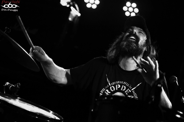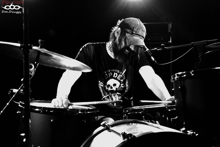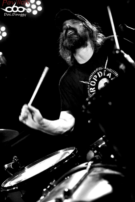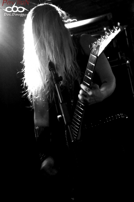 C'est les LUMBERJACK FEEDBACK qui ouvrent donc cette soirée. Le combo de Post/Sludge Lillois sévit déjà depuis quelques années dans la région et notamment outre-manche. Après un premier E.P en 2010 qui leur avait déjà ouvert quelques portes, les bûcherons resteront en hiatus jusqu'à la fin 2012 qui les voit modifier leur recette, passant d'un drone/noise/sludge à une musique clairement plus post/doom/sludge ( du lourd, très lourd si les "étiquettes" vous parlent pas), quelques changements de line-up et surtout le recrutement d'un second batteur. Ainsi, avec un nouvel E.P 2 titres sorti cet été, le quintette instrumental est reparti asséner la scène lilloise mais aussi outre-manche avec notamment une tournée en compagnie des Acid King. On les retrouve donc assez logiquement en première partie de JUCIFER ce soir. D'ailleurs ceux-ci possèdent un public quand on voit la salle somme toute bien remplie. Le groupe assène donc ses 2 titres (aux alentours de 30 min de set). Le son est globalement bien réparti, car des deux grattes qui se complètent et du jeu très travaillé des deux batteurs ressort une ambiance bien particulière aux Lillois. Par contre, pour nous public Lillois, on aimerait maintenant un peu de nouveauté sachant que (si je compte bien), cela doit être la 4e ou 5e fois que je vois le combo en l'espace d'un an, et même si c'est toujours un plaisir pour les yeux et les oreilles, la lassitude pointe. Mais juste un peu hein ! 30 minutes qui leur permettent de ranger au moins une batterie et le duo Américain enchaîne. Armée de sa guitare, Amber Valentine (dont on ne verra pas le visage une seconde de tout le concert) nous assomme. Tout simplement. Amplis à fond, même l'organisateur se fait envoyer balader lorsqu'il demande à celle-ci de baisser un poil le son. Et résultat des courses, on aura eu le droit au set le plus fort jamais entendu au Biplan ! Car, si on entend qu'un gros vrombissement durant tout le set qui cache même les quelques vocalises, le duo entre parties lourdes, voire noise, accélérations rythmiques à la limite du grindcore ou rock'n roll garde quelques irréductibles dans sa salle qui en l'espace de 15 minutes s'est pratiquement vidée, car c'est bien d'une cinquantaine à la première partie, que l'on passe à une douzaine de personnes, massées devant la scène à en prendre dans les tympans ou à observer une session guitare/batterie tout simplement effarante. On aura rarement vu Edgar Livengood ouvrir les yeux, qu'il paraît habité par l'instant présent (ou bien totalement déchiré, c'est aussi une hypothèse plausible..) Les morceaux s'enchaînent , et nous dévoilent toute la lourdeur, l'expérience accumulée par le groupe qui est sans cesse en tournée et ne laisse personne indemne, tout comme Edgar qui va jusqu'à vomir à côté de son siège alors qu'il joue, instant magique ! On a même le droit à un auditeur, qui va jusqu'à s'allonger devant les retours, lui aussi possédé ou juste imbibé ? Il n'empêche que ça n'aura pas plu à tout le monde, quand on voit la salle qui s'est vidée. Mais les gens restants étaient tous d'accord, ce concert était une expérience sans précédent. Et un concert à s'en créer des acouphènes aussi par ailleurs ! Rarement il m'aura été donné l'occasion de voir un groupe en première partie avec un son proche de la perfection et celui qui suit pratiquement inaudible. Mais n'est ce pas là ce qui caractérise chacun de ces deux groupes ? Une bien bonne soirée placée sous le signe des ambiances et des expériences, ça c'est sûr ! |