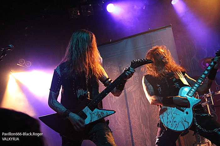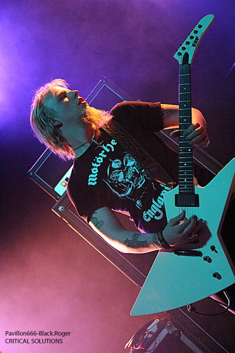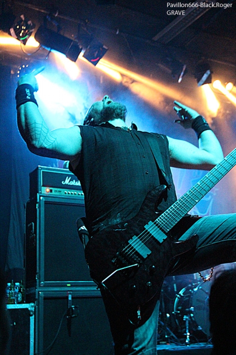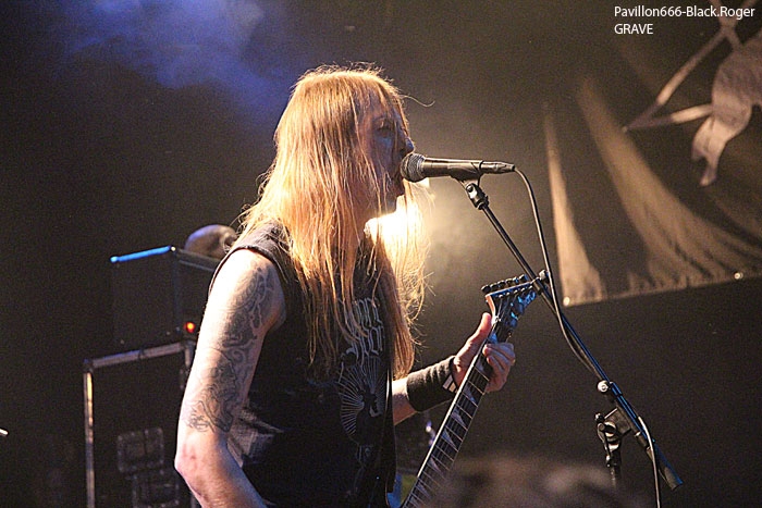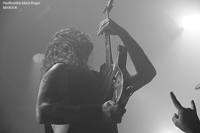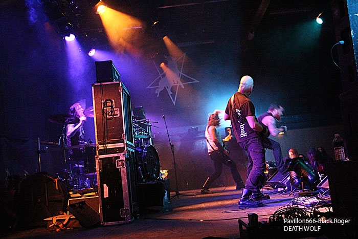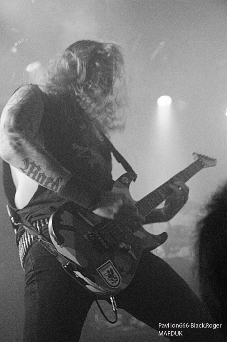 Avec cinq combos prévus, le timing sera séré en pensant bien-sûr aux conditions limites imposées par cette salle de concert. C’est donc à 18heures et 20minutes exactement que CRITICAL SOLUTIONS lâche les décibels devant…une trentaine de personnes vu cet horaire, un jour de semaine qui plus est. Mais ces jeunes thrashers ne vont pas se démonter pour autant, l’énergie, le savoir faire et la fougue des Norvégiens sera de mise durant la petite demi-heure qui leur est allouée. Ils défendent sur scène ce soir leur premier album studio « Evil Never Dies ». Bien sûr on pense d’entrée de jeu au METALLICA des débuts avec par endroits un soupçon de SLAYER et une touche de MOTÖRHEAD. Mais cela n’enlève en rien à ces débutant thrashers qui ont tout comprit au film et assurent déjà comme des « pros ». Pour ne rien gâcher ils bénéficient d’un bon son et le public qui envahit progressivement la salle durant leur set semble apprécier au final cet apéritif brutal. Présence scénique remarquée, technique éprouvée, alors on aime bien ce début de soirée, tant pis pour les retardataires. Set-List : God Of Anarchy, Crime Of Passion, Dead Man Walk’in, Seek and Destroy (Metallica cover), Soulmaker, Heavy Metal. Pour la suite nous aurons droit à du black brutal avec VALKYRJA, premier groupe Suédois de l’affiche de ce soir. Là, ça ne rigole plus, nous allons en prendre plein la figure sans problème. Déjà trois albums de sortis pour ce groupe de Stockholm formé en 2004. Ce soir leur dernier « méfait », « The Antagonist’s Fire » sera à l’honneur mais pas que. Au fait, que nous propose ce groupe de black typiquement suédois ? Et bien du brutal, du guerrier à la MARDUK pour l’inspiration du départ. Mais le groupe sait varier les plaisirs et entrecoupe ses envois de dérives presque épiques, de parties limite progressives faisant ressortir un côté technique sous-jacent. Alors, au lieu de nous « assommer » du début à la fin par des blast-beat incessants, le groupe épice ses compositions avec des parties de guitare limite mélodique, mais des mélodies malsaines quand même ! Un côté death avec ses « growls » transparait également ce qui n’est pas fait pour nous déplaire. Le public enfin arrivé sur les lieux semble apprécier en se manifestant physiquement après les premiers titres. La chaleur commence à se faire sentir dans la salle et c’est très bien. Set-List : Betrayal Incarnate, The Cremating Fire, Welcoming Worms, Madness Redeemer, Oceans To Dust, Frostland. Les premiers groupes de la soirée semblent défiler à toute vitesse, il faut tenir le timing comme dit plus haut et déjà la troisième formation se présente à nous sans dire ouf!. Tiens, mais l’on reconnait sur l’estrade à la basse, Morgan de Marduk. Mais oui, c’est son dernier projet « parallèle » DEATH WOLF qui envoie maintenant le son. Les Suédois n’ont pas « chômé » en deux ans, deux albums, dont le petit dernier « II : Black Armoured Death » à nous proposer durant la tournée Européenne actuelle. Alors, Death Wolf est-il un nouveau sosie musical des Misfits ? Pas exactement dirons-nous. Au menu, du black, un peu, du gothique (que je n’ai pas vu), du punk, oui beaucoup. En fait c’est souvent du hard-rock qui nous est proposé teinté de black, teinté de doom aussi. Le chanteur/frontman peut changer facilement de registre, c’est un plus dirons-nous. Côté rhytmique c’est assez binaire avec une guitare qui invite souvent au « groove ». Bref, Death Wolf est particulier dans sa démarche, alors on les suit ou pas même si leur prestation est variée. Si sur CD c’était bien lèché, ce soir en live ce fut un peu déroutant, mais par pour tout le monde vu l’accueil bien senti que leur a réservé le public. Nous changeons quelque peu de registre maintenant pour se retrouver dans le death old-school, mais pas n’import lequel, celui des vétérans du genre c’est-a-dire GRAVE. Un Grave qui va transformer le CCO en salle de « bourrinage » non stop pendant toute sa prestation. Et le succès des death-métalleux Suédois (encore) est mérité car depuis plus de 20 ans maintenant Ola Lindgren et sa bande ne faiblissent pas semble-t-il. Au contraire on dirait même que tout se bonifie chez eux au fil du temps. L’énergie est toujours présente, l’envie d’en découdre, la passion pour le métal-de-la-mort sont au rendez-vous. Inutile de vous dire que ce soir le CCO sera en ébullition dans tous les sens du terme. Quel son, quel groove, marque de fabrique des Suédois. Et malgré un certain passage à vide il y a quelques années déjà, les vieux briscards du death à la Suédoise, copains d’Entombed et autre Dismember, semblent avoir retrouvé une certaine inspiration. Ceci avec des riffs de plus en plus puissants, une présence scénique rarement égalée et de nouvelles compositions efficaces issues du dernier opus en date « Endless Procession Of Souls ». C’est une « tuerie » death tout simplement qui nous est offerte ce soir, géant ! Set-List : Amongst Marble And the Dead, Christi(ns)anity, Reborn Miscarriage, Dismembered Mind, Winds Of Chains, Hating Life, Turning Black, You’ll Never See, Passion Of the Weak, Morbid Ascent, And Here I Die (Satisfied), Into the Grave. Après la tuerie death, voici que se profile derrière un épais brouillard une autre tuerie. Celle du black guerrier impitoyable de MARDUK. Marduk qui s’avance sur l’estrade et sans « tambours ni trompettes » démarre « pied au plancher » un set spécial pour cette tournée. En effet, le groupe va nous interpréter ce soir les titres de deux albums anciens, « Panzer Division Marduk », sommet de la brutalité black paru en 1999, et « Those Of The Unlight » second véritable opus du groupe paru lui en 1993 et qui donna ses lettres de noblesse à la démarche des Suédois en somme. Ces deux opus avaient été enregistrés à l’