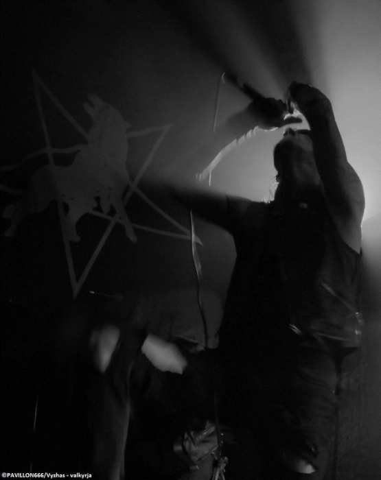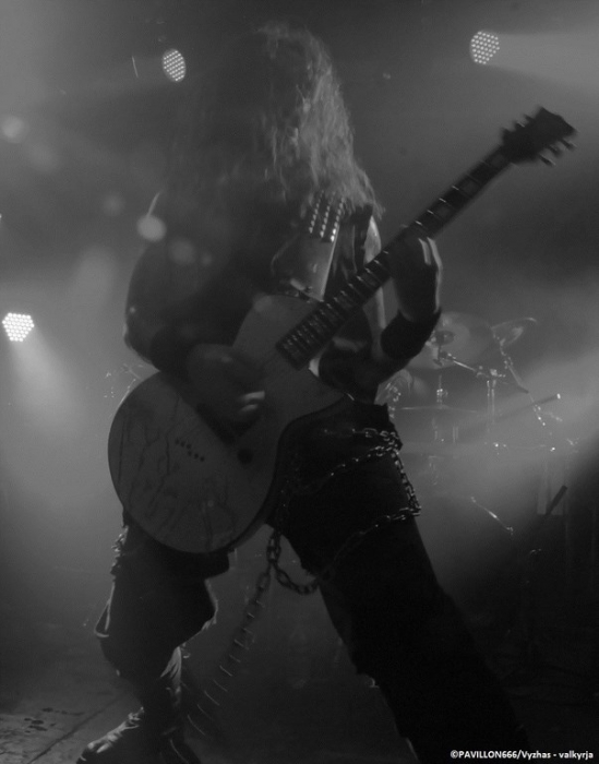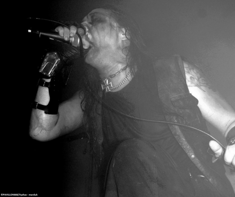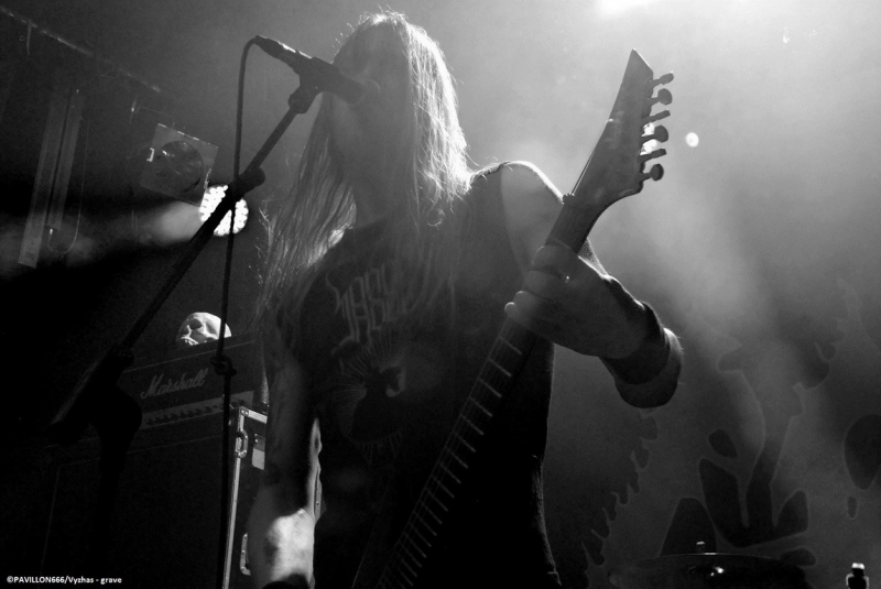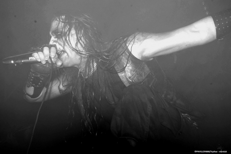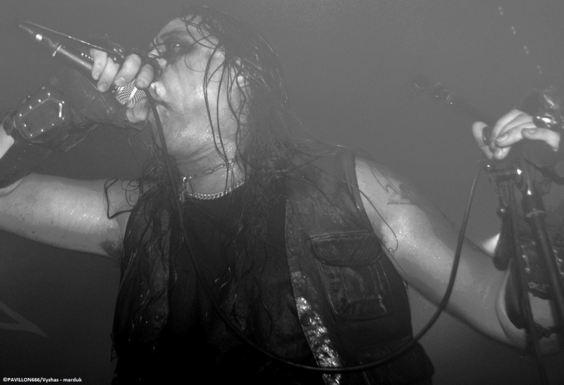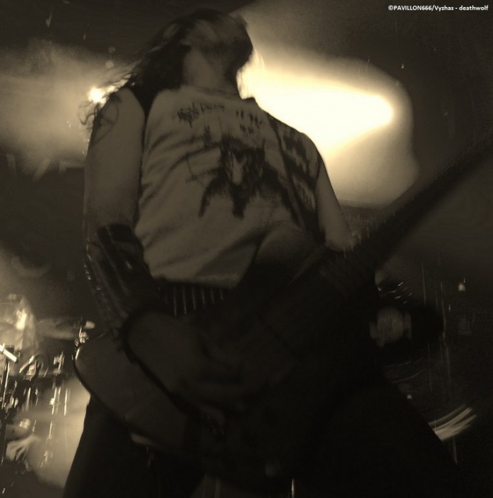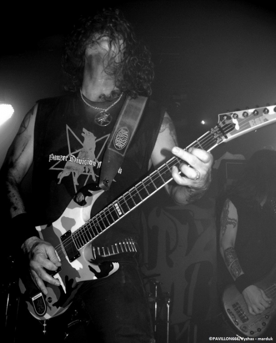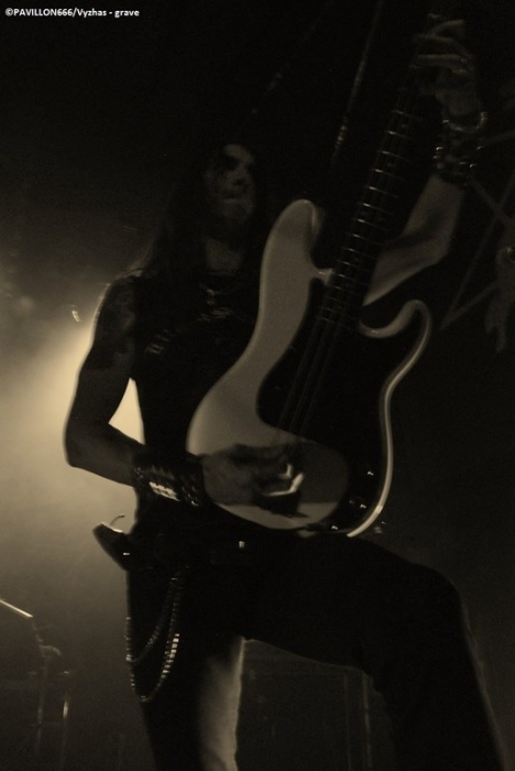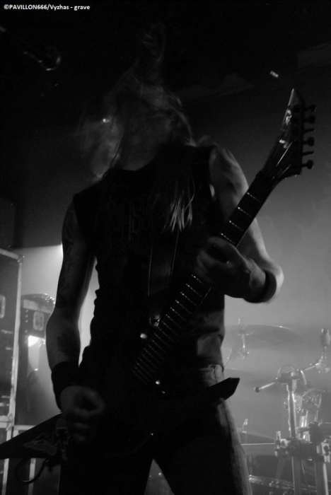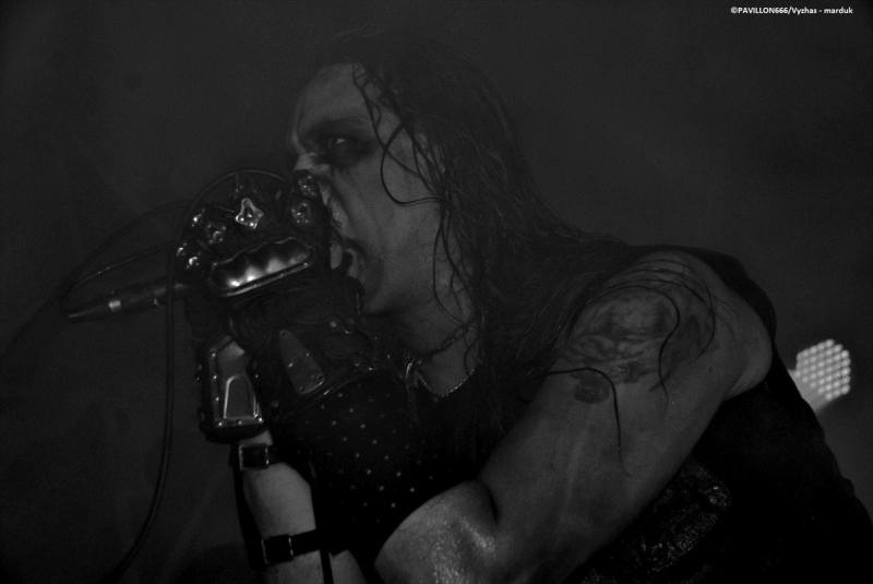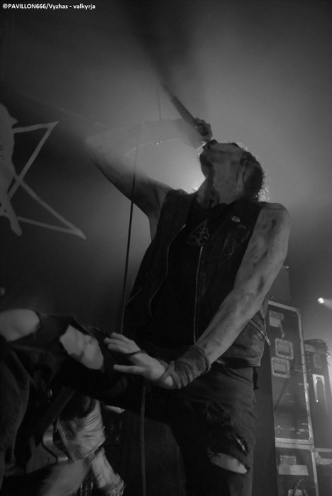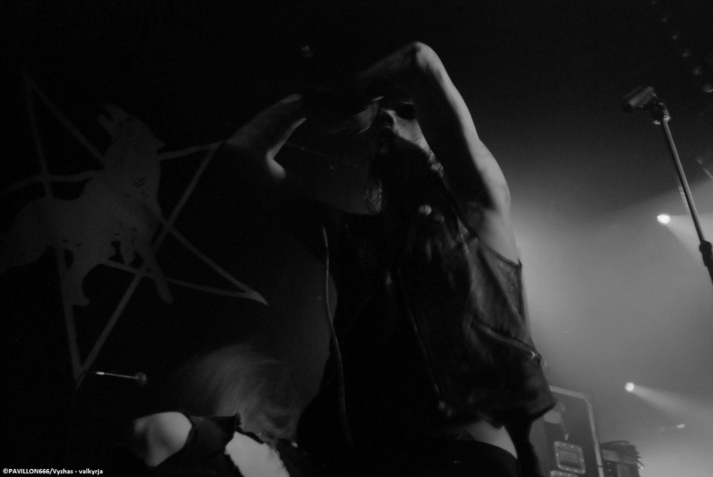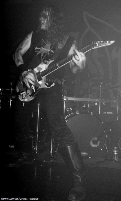 On commence avec une bonne dose de thrash avec Critical Solution. La formation vient défendre les couleurs de son tout premier album « Evil Never Dies » sorti en mai dernier. Les norvégiens font une entrée remarquée sur scène : le batteur débarque avec un masque de faucheuse et le guitariste avec une perruque de coupe-mulet. Critical Solution est vraiment heureux d’être sur scène, en témoignent l’énergie et les sourires affichés sur les visages de chaque membre. Musicalement parlant, le groupe voue clairement un culte à Metallica ; le chanteur/guitariste reprend d’ailleurs les gimmicks de James Hetfield. Même si la formation s’en tire avec les honneurs, le groupe reste encore trop accroché aux influences des Four Horsemens. Le groupe fait également un peu "tâche" dans le décor guerrier des drapeaux de Marduk accrochés de chaque côté de la scène. Ce fut un concert sympathique, mais le public (et votre serviteur) aurait sûrement voulu voir une formation plus extrême, mais surtout plus « mature ». L’ambiance s’assombrit à l’approche des blackeux de Valkyrja. Le groupe, tout de sang, de chaînes, de clous et de corpse-paints vêtus, officie dans un black metal rappelant ses aînés de Watain. Les suédois ont déjà trois albums à leur actif, et vont faire honneur à leur dernier en date « The Antagonist's Fire ». Le groupe est parfaitement en place, et arrive à plonger le public dans une ambiance malsaine et oppressante. Même si l’impression de « déjà entendu » chez Valkyrja se fait ressentir, les riffs incisifs font mouche auprès du public qui commence à pogoter. D’un point de vue subjectif, je n’ai pas trop aimé le timbre de voix du chanteur, un peu dans la veine d’Erik Danielsson en bien moins varié. Mis à part cela le groupe nous a offert un grand moment de black metal, certes peu original, mais tout de même plus que convaincant. Et c’est l’essentiel ! On enchaîne avec le side-project du guitariste de Marduk, Death Wolf. Changement de registre à nouveau puisque le groupe envoie un heavy/punk rempli de testostérone. Morgan tient ici le poste de bassiste. La formation met à l’honneur ce soir, son dernier méfait « II : Black Armoured Death ». Le set débute avec des problèmes de son et une basse bien trop en avant. Une fois ces quelques désagréments passés, Death Wolf montre au public de quel bois il se chauffe ! Et en effet, la musique du quatuor ne fait pas dans la dentelle, le public l’a parfaitement assimilé et pogote à tout-va ! Les suédois font preuve d’une énergique ultra-communicative et le charisme de Maelstrom (chant) et Morgan opère à merveille. Je regrette simplement que le groupe n’ait pas exploité un peu plus le côté rock’n’roll dans leur musique. Quoiqu’il en soit, Death Wolf fut une bonne découverte pour ma part. Place maintenant à un groupe culte de la scène « swedish death metal », je veux bien sûr parler de Grave. Avec ses 25 années d’existence, le groupe n’a pas changé d’un iota et pratique toujours son death « old school » rampant. Grave c’est aussi 10 albums studio au compteur. Le groupe a également sorti un EP en août dernier intitulé « Morbid Ascent ». A l’image de Critical Solution, les vétérans du death suédois sont heureux d’être venus en découdre sur scène avec le public parisien ! Le son est plutôt bon et rend hommage à leur death lourd et caverneux. Le groupe enchaîne les brûlots et varie sa setlist entre morceaux récents et les titres de leurs premiers albums. Pendant plus d’une heure, Grave se sera démené avec une fougue impressionnante, et aura fait pogoter toute la salle. Le set du quatuor death aura été un peu trop long à mon goût et n’étant pas un très grand fan de leur musique, l’ennui m’a vite gagné à partir des quatre-cinq derniers morceaux. Mais objectivement, le groupe a effectué un set remarquable et d’une efficacité redoutable, avec des musiciens énergiques et carrés. Un mouvement de foule se fait ressentir pendant le changement de plateau. Le public trépigne d’impatience de voir la « Panzer Division » faire des ravages ! La scène se prépare tel un champ de bataille, avec filet de camouflage recouvrant les retours, la guitare de Morgan au motif militaire et une ambiance guerrière mise en exergue par le jeu des lumières, la fumée et l’introduction assourdissante. La pression monte, jusqu’à ce que le groupe débarque sur scène. On embarque au sein du panzer black brutal pendant une demi-heure, prêt à tout dévaster ! Pas de quartiers ! Les suédois bénéficient d’un son énorme et ultra maîtrisé. Morgan assène ses riffs tranchants avec une violence des plus jouissives, la batterie est un véritable rouleau compresseur. Le public en redemande et participe à la bataille sanglante à coups de headbangs et de pogos endiablés. Tout le monde prend un véritable plaisir à scander les paroles de morceaux désormais cultes, comme « Baptism By Fire », « Christraping Black Metal » ou « Fistfucking God’s Planet ». Seul Mortuus viendra un peu "ternir" certains titres, où le vocaliste, bien que très charismatique, peine à égaler son prédécesseur Legion, sur les parties rapides en l’occurrence. Après plus de trente minutes de mitraille et d’explosions d’une extrême intensité, la guerre menée par Marduk est maintenant terminée laissant le public sur les rotules, le sourire béat et dans une véritable fournaise ! Après une courte pause marquée par la musique funéraire du film « Koyaanisqatsi » de Godfrey Reggio, le groupe reprend les armes et entame leur deuxième set avec l’album « Those Of The Unlight ». Après un premier set ébouriffant de « Panzer Division Marduk », il est tout de même regrettable de constater une grosse baisse de régime malgré la qualité de la prestation. La transition entre l’ambiance guerrière et celle plus «