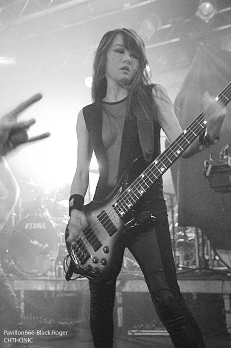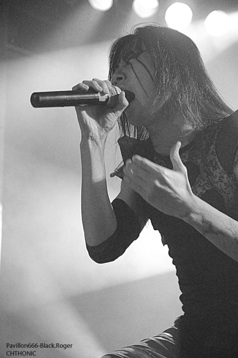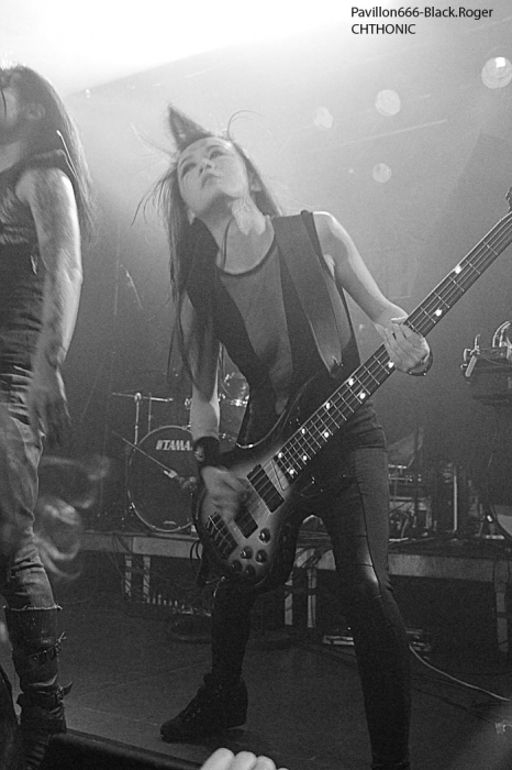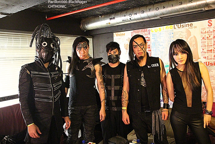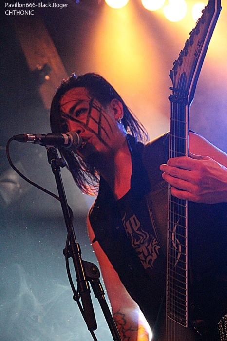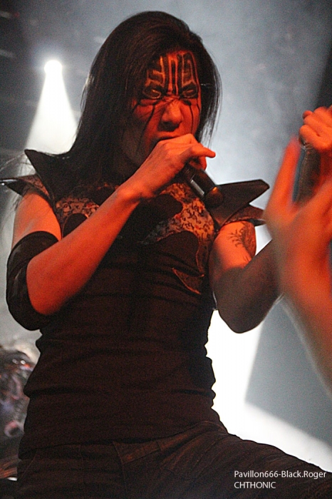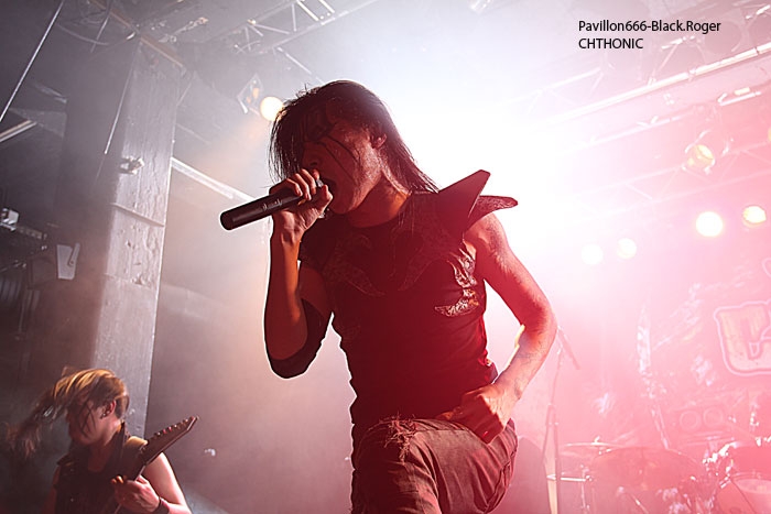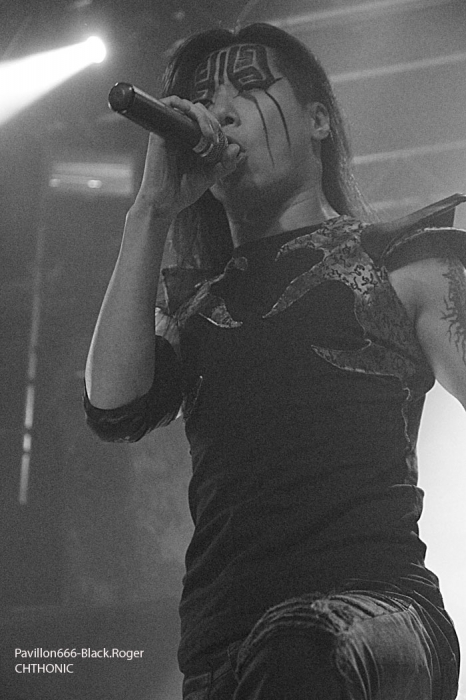 Départ fulgurant du quintette chinois qui « scotche » l’assistance dès les premiers titres « Oceanquake » et « Supreme Pain For The Tyrant ». Là, on se rend compte tout de suite que CHTHONIC n’est pas un groupe de débutants. A son actif déjà 7 albums dont le petit dernier « Bu-Tik » qui les a fait connaitre un peu plus en Europe. Cette Europe médusés qui découvre encore une fois un groupe de métal oriental qui mélange allègrement black , folk avec un côté indus surtout au niveau du « look » du batteur et celui du claviériste. Chanteur et guitariste arborant fièrement des peintures faciales propres à leur culture. La bassiste quant à elle opte pour une tenue plus « gothique » qui lui sied à merveille. Bon, c’est pas tout ça, mais musicalement que valent ces fiers défenseur du métal d’extrême orient ?