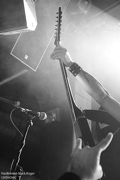 Et bien deux choses sont à mettre en avant dirons-nous. Tout d’abord leur chorégraphie scénique très au point est impressionnante et agréable visuellement parlant. Ensuite nous avons à faire à des musiciens expérimentés, pour preuve ces « Awards » du meilleur groupe de Taiwan et celui du meilleur guitariste décernés récemment. Mais l’accroche est encore ailleurs, elle se situe dans ce mélange de black-métal agressif parfois, puissant souvent, symphonique toujours avec en filigrane des mélodies traditionnelles où des instruments samplés ou manipulé par le frontman (Ehru à corde) viennent apporter une variété incontestable à leurs compositions. Ces mélodies posées au milieu de déflagrations brutes de métal en fusion qui vous restent dans la tête longtemps après la fin du concert comme avec le dernier morceau de ce soir « Takao ». Le seul regret après la prestation de Chthonic c’est d’avoir un goût de « trop peu » dans les oreilles car le set fut court, un peu trop en fait (30 minutes). Belle découverte en tout cas pour ma part, et je pense que beaucoup de métalleux présents ce soir à l’usine ont largement apprécié cette prestation courte mais intense comme l’on dit dans ces cas là.