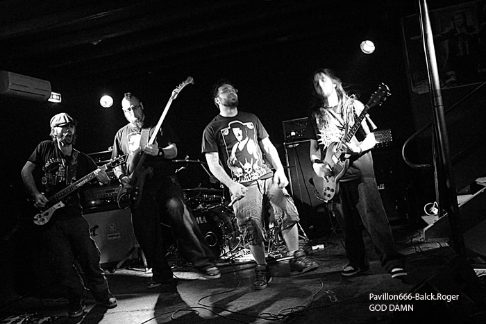 Ce samedi soir 14 décembre nous aurons sur le ring (pardon, la scène), à ma gauche les métalleux de DISSIDENT SOLUTIONS et ceux de GOD DAMN. A ma droite les « coreux » de EIGHT SINS et ceux de FOR THE LIONS, alors que la fête commence ! Premier concert ce soir pour les death-métalleux « tout neufs » de DISSIDENT SOLUTIONS. Alors même si les membres du groupe ont déjà fait leurs preuves auparavant dans d’autres formations, la tension du premier show est là bien présente. Mais laissons parler la poudre avec ce « jeune » combo. Au menu, du death old-school justement comme le pratique depuis longtemps des vétérans du style tels OBITUARY et BOLT TROWER par exemple. D’ailleurs en fermant les yeux et en écoutant, nous croyons entendre John Tardy et ses sbires, grosse influence donc pour nos Lyonnais qui ont tout comprit au film du genre. Le quintette a pour but de se faire plaisir tout simplement en jouant des compositions qui ne dénaturent pas l’esprit old-school du métal de la mort de leurs aînés, et ça marche. Pas tout à fait encore, car si le potentiel est bien présent, les envois lourds et musclés, il manque encore de la cohésion au sein de la formation. C’est un peu décousu par moments, mais bon, on reverra le groupe après un peu plus d’expérience scénique avec plaisir. Le public adhère et réclame même un rappel, alors ils nous offriront en seconde audition à nouveau leur premier titre car la set-liste est limités pour le moment. La démarche et le son de Dissident Solutions plaisent, alors à revoir bientôt ? Place maintenant au hardcore (muscles et karaté ?), mais pas n’importe lequel, celui de EIGHT SINS du Nord-Isère Loïc, Arno, Julien et Mike sont toujours prêts à mettre le feu au pit dans toutes les soirées « musclées ». Alors, un frontman en forme essaie de motiver un public frileux ce soir. Pourtant les envois sont costauds, le métal invite aussi dans les vocaux de Loïc entre partie « aboyées » propres au hardcore et les parties « growlées » plus métallisées dans un rythme d’enfer. Mais rien n’y fait, l’ambiance reste tiède quand même. Ce soir nous aurons droit à des compositions qui devraient figurer sur un troisième album à venir qui s’annonce déjà lourd et tranchant. D’ailleurs un maxi est d’ores et déjà sorti en « apéritif » musical si vous voulez. La set-list de ce soir reste néanmoins ancrée dans l’album actuel « World Of Sorrow ». Mais revenons-en à ce soir, où Eight Sins ne fait pas dans la dentelle et frappe là où ça fait mal en appliquant la loi implacable du moshpit. Le combo sait varier les plaisir entre un « World Of Sorrow », titre brut de décoffrage et un « A Day Without Light » titre plus posé, tout cela est « Pathetic », titre qui clôture ce set donné au Warmaudio, set irréprochable, bravo ! Set-List : Where Is Your God, Nine Eleven, World Of Sorrow, Impurity, Bloodshed, God Eater, Make me Hate, Trapped, A Day Without Light, Under The Edge, Pathetic. Retour au joint et à la bière, mais non ! Retour au métal, enfin au stoner/métal plus précisément avec la bande à Renat’. Les vieux renards du désert semble en forme ce soir, mais pas le public dont une grosse partie va « prendre l’air » pendant leur set et donc « bouder » le « Damn » n’ayons pas peur des mots ! Pourtant, Bij, Pitch, Charly, Gayrem et Renato sortent le grand jeu comme d’habitude sans sourciller avec leur « punch » habituel. Mais, avouez que jouer devant une poignée d’irréductibles Lyonnais laisse songeur. Le « damn » a toujours des «couilles » dans sa musique remplie de blues, de groove, de rock gras avec un chant imbibé de bourbon frelaté, comme passé au « destop ». Charly nous remonte toujours les bretelles avec son énorme basse seventies. Pitch et Gayrem font miauler leurs six cordes et Bij démonte son kit de batterie évidemment. Pour varier les plaisirs, Rénat’ lance un titre un peu plus « hardcore » clin d’œil à la soirée et propose un peu de nouveauté aussi car le groupe va toujours de l’avant c’est sûr. Alors, si ce soir l’ambiance rock n’roll n’était pas au rendez-vous ce n’était pas de leur faute. Set-List : Under Pressure, All In, Crazy Train, Remedy, Old Days, I Could Be Jay, Never Look Your fate Down, Legend Come Down from US, Another Wireless, Landing For My Pride. FOR THE LIONS, vous connaissez ? Moi bien sûr en tous cas ayant eu l’occasion de voir ce « super groupe » de « coreux » à l’ampérage de Grenoble il y a quelque temps déjà. Présentation, vous avez dans cette formation des membres de EightSins, God damn, Swine Punch, Gravedig et Frontal qui se sont réunis pour le « fun », pour reprendre en « live » des classiques du hardcore. Alors ce soir vous aurez droit à du MADBALL, du HATEBREED (voir le nom du groupe), du PRO-PAIN, du AGNOSTIC FRONT et plus si affinités. Et ça marche, ça marche tellement bien que pour leur prestation tout le monde est rentré dans la salle et a ravagé le pit, curieux non ? Est-ce dû aux reprise que tout « coreux » qui se respecte aime à chanter, est-ce dû au charisme du frontman Diego de Frontal qui a le « core » au corps et qui a su rameuter les troupes ? On ne sait pas en fait, mais en tout cas pour ce dernier show de la soirée tous les « potets » sont dans le rouge. Sur scène c’est très mouvementé, chanteur improvisé chanteur et guitariste de God damn en invit’, etc, etc..Bref, ce fut LE moment fort de la soirée qui l’eût cru ? Là, le warmaudio portait bien son nom pour ce bouquet hardcore final terminant ce Beers And Moshpit 3 de façon éblouissante. A la décharge de la moindre assistance présente ce soir, deux autres soirées métal lyonnaises en même temps, une habitude fâcheuse dans l’agglomération et qui se répète trop souvent quand même. Merci aux organisateurs de cette petite « sauterie » du samedi soir au « W