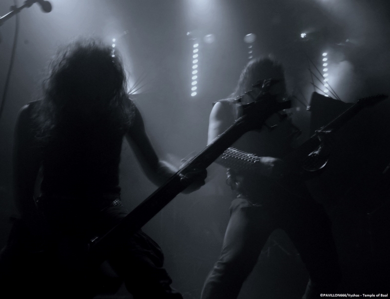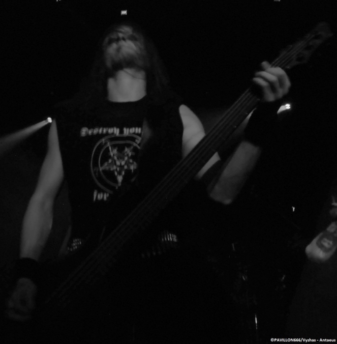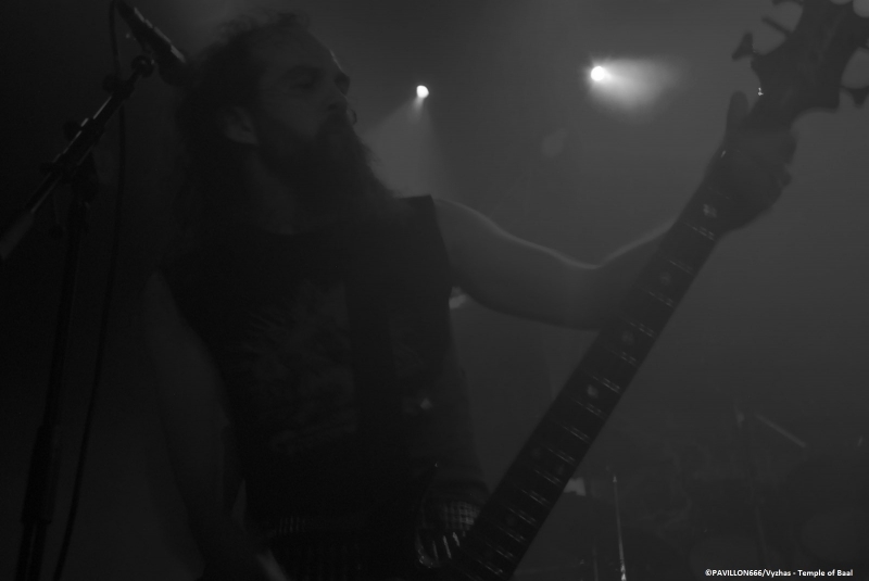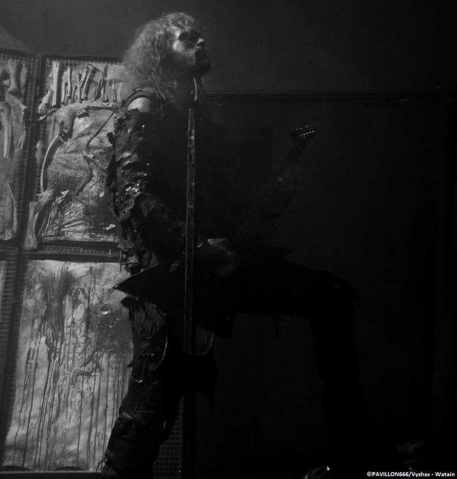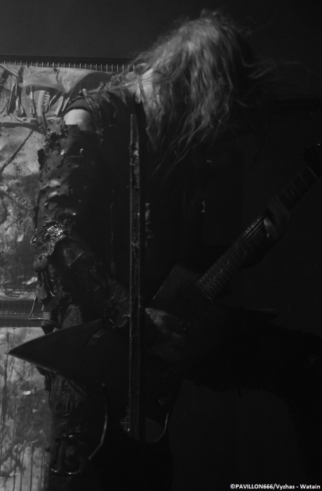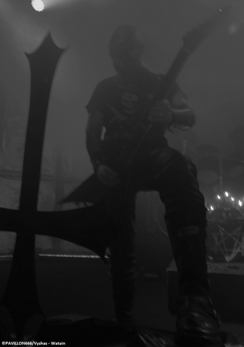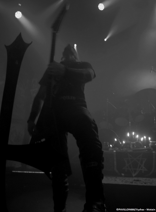 C’est à Temple of Baal que revient la charge de démarrer les hostilités. La formation revient plus brutale et sombre que jamais avec son dernier excellent album « Verses of Fire ». Les ayant déjà vus à l’occasion du Wolfthrone à Saint Germain-En-Laye le 9 novembre dernier, j’étais ressorti quelque peu mitigé de leur prestation, notamment à cause d’un son un peu brouillon. Ce soir, il est clair que les parisiens sont en forme et sont très dynamiques sur scène. Malheureusement, la prestation ne sera pas suffisamment convaincante, dû toujours à un son approximatif m’ayant donné du fil à retordre pour identifier les morceaux (je n’ai reconnu le titre « Traitors to Mankind » qu’au moment du refrain scandé par Amduscias (chant/guitare) et Arkdaemon (basse/backing vocals)). Malgré tout, Temple of Baal n’aura pas écorné sa réputation et montré qu’il est une valeur montante de la scène underground avec une prestation d’une lourdeur intense. Le public semble avoir apprécié, même si il est clair que les spectateurs ne sont pas venus uniquement pour les « beaux yeux » des premières parties… On change de décor assez rapidement pour Antaeus. N’étant plus montés sur les planches depuis l’album « Blood Libels » en 2006, MkM (chant) et ses sbires avaient fait forte impression auprès du public et surtout de leurs fans pour leur première date depuis 6 ans au Wolfthrone le 9 novembre. Les blackeux parisiens n’avaient pas jouit d’un son très précis au festival de Saint Germain-En-Laye, mais ce n’était pas tellement un mal compte-tenu du son très « raw » sur leurs albums. Ce soir, la formation est fidèle à ses principes : un contact très froid voire inexistant avec le public et surtout une musique acérée et extrêmement rapide. C’est un déluge de décibels qui s’abat sur la foule. Le public se fait moins timide que pendant Temple of Baal, et c’est dans un climat de liesse sublimée par les headbangs et les pogos que les spectateurs accueillent Antaeus. Je ne sais pas si c’est le fait que je sois hermétique à ce genre de black ultra brutal ou si j’étais mal placé dans la salle, mais je me suis profondément ennuyé pendant la prestation du combo. J’avais également l’impression d’entendre une bouillie sonore avec un chant très linéaire et redondant. Une heure c’est très long quand on s’ennuie, et c’est plus impatient que jamais que j’attends Watain. La salle est maintenant blindée ! Watain est attendu comme le messie. Décor occulte, ossements, croix inversés, et ustensiles de « sorcellerie » sont de rigueur ce soir et la scène revêt l’aspect d’un autel en hommage au Malin ! Il est bien évident que le groupe est attendu de pied ferme. Depuis la sortie de sonr dernier album « The Wild Hunt », Watain n’a jamais autant divisé ses fans : entre ceux qui adhèrent complètement à la nouvelle orientation des suédois ou ceux qui regrettent le temps des précédents albums. Mais là n’est pas le débat ! Dès les premières notes de l’intro « Night Vision », l’ambiance du décor scénique et le jeu des lumières nous plonge directement dans cette communion avec le Diable. Puis le groupe débarque et nous assène un violent et direct « De Profundis », deuxième titre issu de The Wild Hunt, le ton est donné : le son est excellent, limpide et permet d’entendre tous les instruments à leur juste valeurs. Les guitares de Pelle Forsberg et de l’ex-Dissection Set Teitan sont des plus incisives. Erik Danielsson est particulièrement en voix, ses prestations sont très puissantes sur des morceaux comme « Malfeitor », « Reaping Death » ou encore « Devil ‘s Blood » sur lequel le chanteur ne manquera pas de lancer un calice rempli de (faux ?) sang dans le public. Son jeu de scène est énergique et le vocaliste est comme possédé. Faisant partie de ceux qui ont été déçu par le dernier album, je dois dire que des titres comme « The Wild Hunt » ou « All that may bleed » passent très bien l’épreuve du live, mais ce n’est pas le cas de tous les morceaux à l’image de « Outlaw » ou « Holocaust Dawn » qui manquent clairement de punch, et ne sont vraiment pas taillés pour la scène à mon sens. Nous avons droit à un « Sworn to the dark » ravageur, pendant lequel le public chante le refrain comme un seul homme ! Enfin la « cérémonie » se termine sur le très long et épique « Waters of Ain », le solo majestueux de fin donne des frissons. Erik Danielsson, en transe, tourne le dos au public et remue ses bras de manière "rituélique", orchestrant son incantation. L’invocation démoniaque se termine sur 5 minutes d’outro aux sonorités funéraires. Erik met fin à la cérémonie en éteignant un à un les « cierges » disposés en l’hommage de Satan ! Setlist : 1 - Night Vision 2 - De Profundis 3 - Malfeitor 4 - Devil's Blood 5 - Reaping Death 6 - The Wild Hunt 7 - All That May Bleed 8 - Sworn to the Dark 9 - Outlaw 10 - Holocaust Dawn 11 - Waters of Ain Une nouvelle fois, merci à Garmonbozia pour cette soirée au Trabendo ! A l’année prochaine pour encore plus de concerts ! |