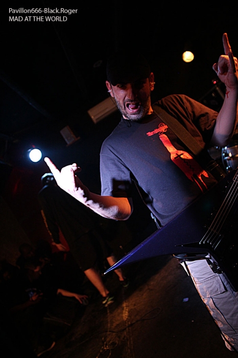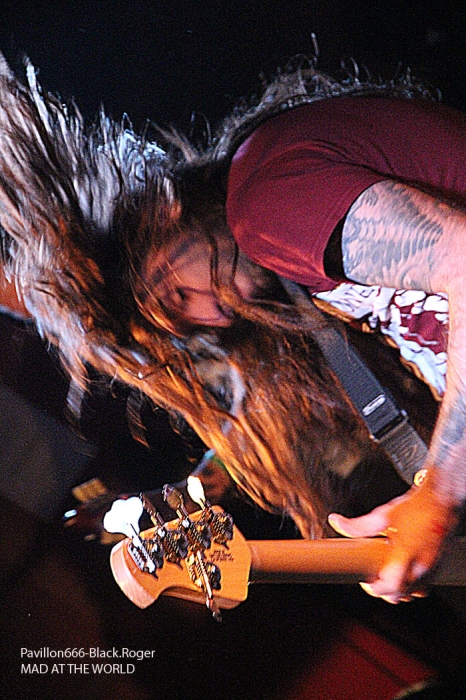 C’est au tour maintenant des Parisiens MAD AT THE WORLD de nous montrer ce qu’ils ont derrière leurs « tignasses ». En effet les « coreux de la capitale ont plutôt le « look » métal, mais voyons donc et écoutons ce qu’ils nous proposent. A première vue, ce nouveau combo formé avec des membres de xDIGx et d’ANTAEUS est à l’aise dans sa chorégraphie scénique, on sent bien qu’il y a une habitude du « live » avec ces musicos qui ne donnent pas dans l’approximation. Le chanteur/frontman en fait des tonnes et provoque sans arrêt un public qui ne demande que ça en fait. Le son est bon, les titres sont décapants et déclenchant les évolutions physiques des « coreux » qui s’étirent et nous montrent leurs plus beaux pas de « two-step », la classe quoi !