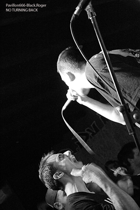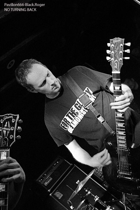 On passe vite à la suite, le « back-line » étant le même pour les trois formations, gain de temps à la clé donc. Dire que les bataves NO TURNING BACK étaient très attendus serait un doux euphémisme. Certains sont venus de loin dans l’assistance car depuis maintenant plus de 16 ans, les « coreux » hollandais n’ont jamais déçu et se sont taillé une solide réputation avec des prestations hors du commun attirant toujours plus de monde à chaque concert donné et NO TURNING BACK, c’est aussi 7 albums et plusieurs split-CDs au compteur ne l’oublions pas.