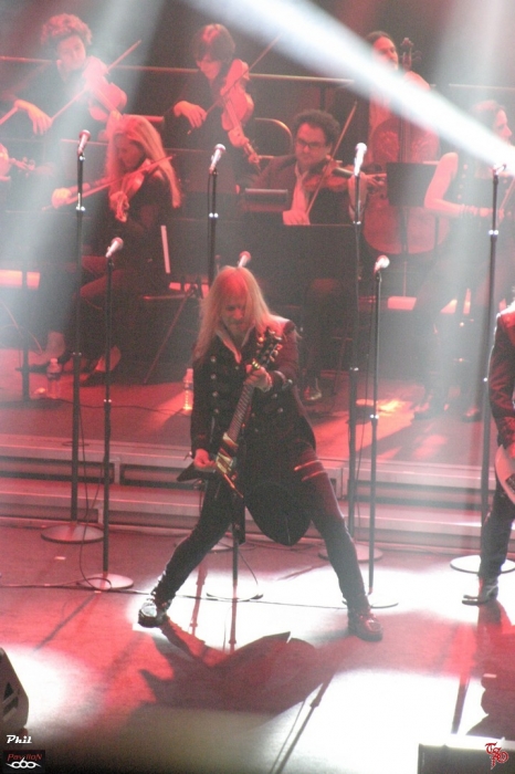 Pour cette soirée, point de première partie, Trans-siberian Orchestra investit la scène pour 2h30 de spectacle non-stop. L'entame du show débute par deux instrumentaux du TSO "Time and Distance" et "Winter Palace" avant de faire un détour vers le répertoire de Savatage avec "This is the Time". Malgré la position assise peu usuelle dans le monde du metal, le TSO doté d'un son excellent démarre parfaitement le concert et enchaine sans temps morts les titres les uns derrières les autres. Toutefois, le soufflé retombe vite car les musiciens sont parfaitement rodés et respectent totalement la mise en scène. Pas de place à l'improvisation, la communication avec le public est bien maigre, quelques essais de Chris Caffery afin de faire bouger l'auditoire, d'Al Pitrelli lors des présentations des musiciens et...la présence d'un narrateur par moment, faisant là encore retomber l'ambiance. Les musiciens sont dans leur élément, assurant leur set comme il se doit. Al Pitrelli et Chris Caffery (guitares), prenant régulièrement la pose, envoient des riffs monumentaux et soli endiables. Le duo rythmique composé de Johnny Lee Middleton (basse) et Jeff Plate (batterie) tous deux ex-Savatage maintiennent une parfaite ossature. Vitalij Kurprij (Claviers - Ring Of Fire) confirme ses qualités d'interprète, le TSO lui autorise une escapade solitaire de haute volée, sa collègue Luci Butler en arrière plan est beaucoup plus discrète et quasi cachée. On ne peut pas en dire autant de Asha Mevlana et son violon. La musicienne vient régulièrement sur le devant de la scène, s'exprimant comme une guitar héro, soli, poses...clichés mais fun! Du coté des voix masculines, les titres sont interprétés à tour de rôle par Jeff Scott Soto, Rob Evan, Nathan James ou Robin Borneman. Les prestations ne retiennent pas toutes le même suffrage, bien que les interventions soient de bonnes qualités, les meilleurs interprétations sont à décerner à Jeff et Rob, qui se distinguent par leur sensibilité et feeling. Les chanteuses sont en totale opposition, Kayla Reeves prend une attitude purement metal 80's, pose, mouvement de nuque... adoptant une voix rauque pour l'occasion. Chloé Lowery, tenue de diva, reste quant à elle figée devant son micro visitant un registre plus pop-classique. Le reste de la troupe, choeurs et musiciens classiques, délivrent une prestation convenue. L'ensemble de cordes est immobile durant le set, les choristes oscillent devant les micros en fonction des ambiances. Musicalement, le TSO alterne compositions instrumentales, titres de Savatage ou chansons tendances Rock mêlées à des thèmes classiques. Le show du Trans-siberian Orchestra, pourtant pas polaire, aura eu du mal à mettre le feu aux planches, est-ce le lieu pas forcément adapté ou le public peu garni de metalleux. Cette présentation tant attendue, demande à être revue dans des conditions plus extravagante car force est de constater qu'un show façon Broadway nécessite un espace plus important pour laisser libre expression à la troupe. Cela n'enlève rien aux qualités techniques et scéniques des musiciens, tout comme aux compostions présentées pour cette première. Un grand merci à Live Nation et Olivier (Replica promotion) pour l'accueil qui m'a été accordé. Setlist : Time and Distance Winter Palace -----------------------------------------Narration - Best Of Time---------------------------------------------- This is the Time (Savatage cover) Christmas Jam Handful of Rain (Savatage cover) A Last Illusion Gutter Ballet (Savatage cover) -----------------------------------------Narration - Satan------------------------------------------------------ Misery Mephistopheles' Return Mozart Sparks -----------------------------------------Narration - Poet's & Madmen----------------------------------------- Hourglass (Savatage cover) Someday Child Unseen Believe (Savatage cover) Wish Liszt (Toy Shop Madness) -----------------------------------------Narration - Beethoven's Heart---------------------------------------- After the Fall Wizards in Winter Dreams of Fireflies (On a Christmas Night) Carmina Burana -----------------------------------------Narration - Lost Christmas Eve---------------------------------------- Epiphany The Mountain Piano Solo Beethoven -----------------------------------------Narration - Closing----------------------------------------------------- Requiem (The Fifth) Christmas Eve (Sarajevo 12/24) (Savatage cover) |