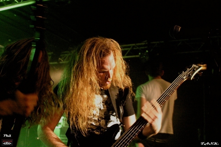 Avant même de pénétrer dans l'enceinte, le public est déjà assez nombreux pour l'évènement. Il saura mettre le Chaudron en ébullition durant les trois prestations. C'est à Fallen Joy d'avoir la délicate tâche de démarrer la soirée, les cinq musiciens, ayant déjà un album au compteur, envoient du lourd. Leur death metal ne déplaît pas aux metalleux, punks et autres spectateurs et rapidement l'ambiance tourne aux pogos, headbanging, autres mouvements de fosse... Le groupe est assez en jambe, restant peu en place. Gul (chant) harangue le public et arrive rapidement à le mettre dans la poche de Fallen Joy. Les compositions visitent les ambiances lourdes et énergiques propres au death agrémenté de parties mélodiques. Le set, composé de 10 titres, puise dans les deux supports audios du groupe, l'EP "Order To Die" et l'album "Inner supremacy". On a plaisir à voir la formation s'exprimer et transmettre son plaisir à la foule présente qui lui rend coup pour coup. Un groupe en pleine progression... Set List : Destroying Fate Breaking The Light Burst Of Hope War Of The Undead Hoisting The Black Flag Blood On The Wheel The Rage To Live On Hymn To Silent Soldiers Seeds Of Tyranny Order To Die Still Creep n'a pas besoin d'investir les planches pour être ovationné, pourtant la formation n'a à son actif qu'un EP - 6 titres "A New Dawn" et un single "Facing The Storm". Le set dans un registre heavy / thrash va parcourir durant 7 titres ces deux supports économiques. Les musiciens distillent une musique énergique, rapide et épique amenant à l'esprit une rencontre entre MAIDEN et METALLICA. Le tout épaulé d'un chant évoluant dans un registre mélangeant partie énergique et partie proche du death. La paire de guitaristes est assez bon techniquement, Rémi allant jusqu'à envoyer un solo derrière la tête, le duo rythmique mène un train d'enfer et Fab (chant) communique on ne peut plus avec le pubic allant chanter au milieu de la fosse. La prestation ne faiblit pas de la première note à la dernière, Still Creep a effectué une intervention énergique et superbe. Cette sensation perdure à l'écoute de "Facing The Storm" et vous invite à poser au moins une oreille dessus. Set List : The Storm Cries of Suffering Gone Evil's Crow They Still Creep Me Out Dissolution Falling Down Inutile de présenter T.A.N.K., comme de coutume le groupe prend possession de la scène d'entrée de jeu. Les neuf titres interprétés pour la soirée vont défiler à vitesse grand V. Les musiciens, qui clôturent leur tournée, jouent en quelque sorte dans leur jardin et les deux facteurs se ressentent dans l'expression scénique du groupe. Les cinq boys lâchent tout, ne se ménageant pas du début jusqu'à la fin du set. Raf (chant) communique avec le public, va dans la fosse et cette dernière est très réceptive aux demandes du groupe. Le duo de six-cordistes échange soli, envoie des riffs pesants, laissant oublier que Nils et Symheris coopèrent que depuis l'année dernière. Clément (batterie) et Olivier (basse) maintiennent l'ensemble rythmique de bien belle manière : précision, énergie, densité... L'ensemble des musiciens prend plaisir à évoluer au Chaudron et cela transpire. Les ayant vu, il y a quelques mois, il faut avouer que T.A.N.K. est en pleine progression. Le groupe a un potentiel certain et son dernier line-up devrait pouvoir les emmener vers la consécration. Set List : The Raven's Cry Inhaled T.A.N.K.09 Beautiful Agony Through The Disgrace Cryptic Words Disturbia Brothers In Arms Pour cette premier soirée de Février, le Chaudron s'est vu tour à tour en ébullition et magique. A quand une nouvelle potion ? |