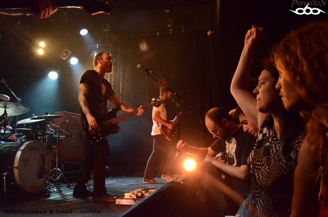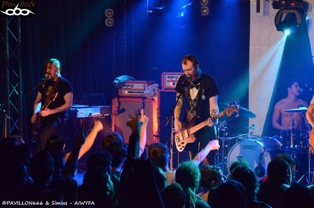Malgré la tempête et un prix d'entrée un rien élevé (16€ sur place, ça à beau être le Ferrailleur, pour deux groupes), plus d'une centaine de fans se sont réunis sous l’alcôve phonique et accueillante de la fameuse salle de concert du quai. L'ambiance est tamisée, ça ne crie pas, ça ne court pas dans tout les sens... Hormis la scène illuminée de spots bleutés, et l'impatience à peine palpable on aurait du mal à se croire à un concert de Rock progressif. Le noir se fait, une pénombre lourde sur laquelle vient se poser un son, murmure vibrant entre les murs, dominant le silence de la foule. Des notes cette fois, lourdes, elles nous font pénétrer dans des eaux troubles, entre bien-être et malaise. Le tableau est dressé, les artistes font leurs entrées. CORBEAUX, le groupe Français du Finistère ouvre le bal avec le titre « Opinel », sorte de réveil incisif de la torpeur dans laquelle le public macérait. Encore faut-il se réveiller au bon endroit. Emporter par les ailes des Corbeaux nous voilà partis. Le concert prend alors rapidement des allures de voyages ponctués de riffs lourds assénés sur un tempo des plus lent et des envolés mélodiques saisissantes, comme le prouve la deuxième chanson interprété par ses messieurs : « Airpaint ». On a du mal à garder ses pieds sur terre : le groupe prend un réel plaisir à jouer, et le public à les écouter. Pas de paroles surfaites, pas de « A poil ! » tapageurs, simplement les applaudissement entre quelques morceaux, des « Bravo ! » lancés par la foule en totale communion avec le groupe. Après une annonce très sympathique de la part des bretons entre deux titres, le groupe reprend de plus belle et amorce l'atterrissage de la salle sur « Ezim », un morceau à la fois lourd, mélodique et étonnamment troublant. Rideau. La foule les acclame, il faut bien avouer que le show était sensationnel. On en redemanderait encore, mais voilà que les Irlandais doivent monter sur scène. Le temps de quelques réglages, chacun s'en retourne tranquillement, le sourire au lèvre vers une bière, ou une cigarette. Tous semblent conquis par cette première partie qui ne payait absolument pas de mine. On en resterait même dubitatif pour la suite. And So I Watch You From Afar. Avec un tel nom, on a beau les connaître on a du mal à en parler à quelques néophytes, au vue de la complexité de leur appellation. Je n'étais pas impatient de voir ASIWYFA sur scène, la complexité de leurs composition m'avais laissé un avant-goût de « bordel sonore » dans les oreilles. J'attends donc. On délaisse les bières, on écrase les cigarettes, on rallume les appareils photos, et l'on s'en retourne vers la salle de concert. L'ambiance est plus électrique, on sent que certains fans se sont déplacés exclusivement pour les voir. Le groupe ne se fait pas prier trop longtemps. Pas de salutations surfaites, tous s'installent. « Eunoia » s'enflamme doucement dans les instruments des Irlandais. Le rythme se soulève peu à peu, emportant avec lui les riffs absolument monstrueux de Rory Friers et de Niall Kennedy, le tout soutenu par une basse terriblement efficace... Avez vous déjà bu du coca en mangeant un mentos ? Ben là, c'est pareil. La musique s'emballe d'un coup, la foule également , chacun chante les quelques paroles du refrain, les musiques s’enchaînent avec furie , Rory Friers dance, fait chanter sa guitare tel un possédé, se balance entre son micro et le devant de scène ! On s’essouffle, on sourit, on est captivé devant les talents de composition et la sympathie de ce groupe pour le moins surprenant. On en vient à fermer les yeux, se laisser bercer, laisser aller son corps à la musique tout en prenant un bain de foule. ASIWYFA a réalisé en ce soir du 6 février une prouesse : transformé un concert en une expérience unique. On comprend alors pourquoi le groupe fut réclamé de nombreuses fois avant de partir, nous laissant ainsi, de nouveau à la dérive dans un monde bien réel. Il y a certains groupes qui ont la particularité de faire vivre la musique. Corbeaux et ASIWYFA on cette faculté incroyable, à leurs façon. On a du mal à rentrer dans leurs univers quand on est en face de leurs CD, particulièrement celui de ASIWYFA (« All Hail Bright Futures ») dû notamment à une certaine complexité de composition. Je ne vous recommanderai jamais assez d'aller les voir en concert, de les laisser vous entraîner avec eux, si justement vous avez du mal avec leur musique. C'était mon cas, me voilà conquis. Il va falloir que je fasse attention que je ne m'envole. Dans la salle aussi se déroulait une tempête. |