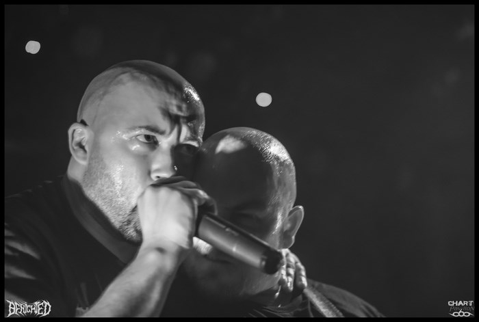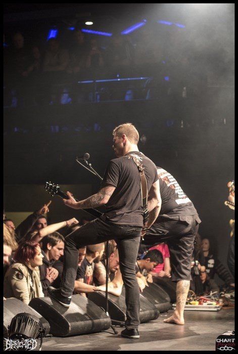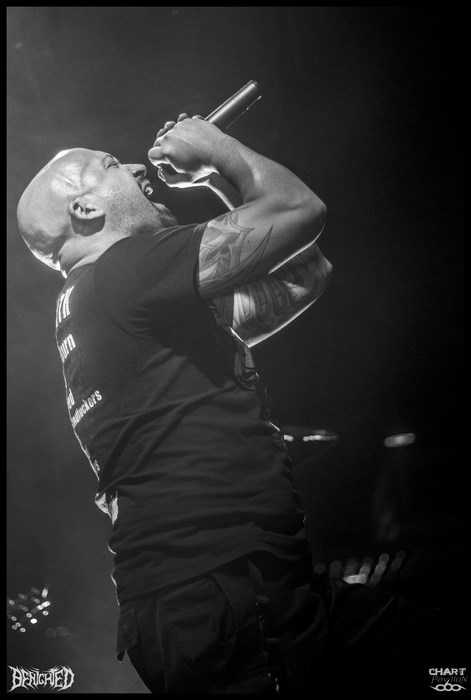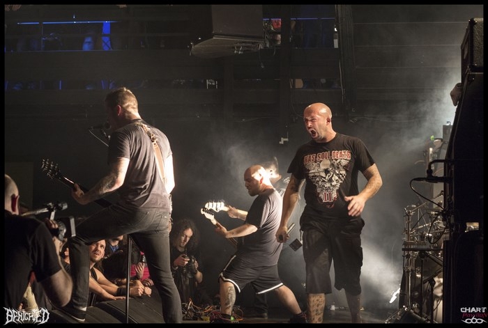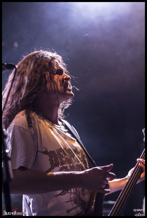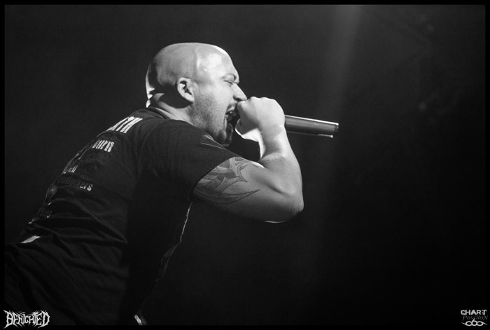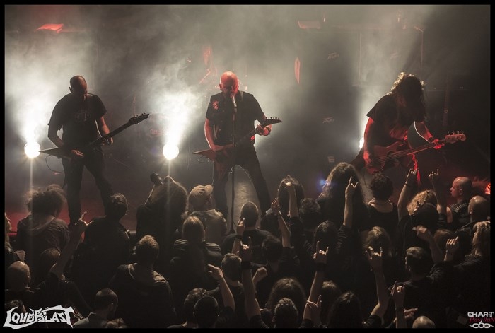 C’est avec DISSIDENT SOLUTIONS que la soirée débute sur cette petite scène du Transclub. Pour ceux qui ne l’auraient pas reconnu, il s’agit bien là d’un ex pilier de MY REFERENCE EVENTS qui officie au rôle de guitariste. Le groupe joue dans un style de Death Thrash aux forts relents d’OBITUARY et BOLT THROWER. Quoi de mieux pour commencer cette soirée death metal avec un style old school, gras et lourd à souhait. Si ce combo s’est formé il y a peu, son énergie et son professionnalisme sont au rendez-vous. Il y a bien là un groupe à suivre et une très bonne découverte pour ce début de soirée ! Après un rapide changement de plateau, ce sont les strasbourgeois d’ABSURDITY qui viennent s’emparer de la scène. C’est avec une énergie impressionnante que le groupe nous distille un death pêchu et précis. ABSURDITY mélange les influences que sont FEAR FACTORY, MESHUGGAH ou encore GOJIRA. Mais attention, si certains groupes se font facilement embarquer dans des riffs très mathématiques, ABSURDITY joue la carte de l’efficacité et d’une certaine simplicité avant tout. Cela donne un set débordant d’énergie un peu à la manière d’un NO RETURN à l’époque où Steve en était encore le chanteur. Il n’y a rien à redire, du très bon que nous avons là et qui semble bien faire l’unanimité auprès du public. Place maintenant aux lyonnais de DEATHAWAITS qui jouent ce soir à domicile, une super opportunité pour ce groupe qui vient tout juste de sortir son deuxième album ainsi qu’un clip, le jour même. Niveau style, le combo mélange thrash, death et hardcore pour un cocktail explosif. Le public est forcément conquis et ce pour plusieurs raisons. Bien entendu, le fait de jouer devant des amis, des connaissances, on s’attire vite la sympathie du public mais tant mieux car cela profite grandement à l’ambiance générale de la soirée. Et puis, il s’agit d’un groupe doté d’une grande expérience de la scène et cela se voit incontestablement dans l’énergie déployée sur scène. DEATHAWAITS n’est pas non plus en reste sur ses morceaux. Encore une très bonne prestation et forcément, avec une grande majorité de groupes de qualité en ouverture de soirée, on ne peut qu’être rassuré sur la vivacité de la scène metal française actuelle. Comment vous parler objectivement d’un groupe dans lequel on a officié à ses débuts ? Et bien c’est très simple, BENIGHTED a tellement évolué depuis ses origines et ses premiers albums, qu’il est particulièrement facile de s’en détacher. La carrière musicale du groupe a débuté avec du black death pour arriver à une sorte de hardcore metal grind moderne et terriblement efficace. Il n’y a qu’à se pencher sur le dernier album en date, « Carnivore Sublime » pour être totalement convaincu du talent de cette petite équipe. Evidemment, on aura tous remarquer le remplacement de certains membres comme Liem à la guitare et dernièrement Eric à la basse. Cela se ressent certes sur certains aspects du groupe mais c’est à vous de juger si cela est en bien ou en mal. Pour ma part, je ne me prononcerai pas sur des musiciens que je connais personnellement et qui par choix ou par contrainte ont du renoncer à certains projets. Ce que je sais par contre, c’est que cet album, « Carnivore Sublime » mérite toute notre attention car c’est de loin l’album de metal français du début de cette année et même à mon goût le futur album de l’année pour tout un tas de connaisseurs. J’en prends le pari en ce début d’année et je suis sûr de ne pas me tromper. Alors évidemment, une date telle que celle-ci ne peut pas être loupée même si, on le sait maintenant, BENIGHTED sera aussi à l’affiche du SYLAK 2014. Mais revenons-en à cette soirée à cette prestation de BENIGHTED. Comme étant originaires de la région, le groupe a pas mal de connaissances réunies dans le pit et cela se ressent dans l’ambiance et l’humeur générale. Dès les premières notes du premier morceau, la fosse se transforme en un amas de corps volant dans tous les sens. Rien à dire, la brutalité de leur musique n’enlève rien à l’énergie positive et dévastatrice déployée ce soir. Bien évidemment, on peut trouver quelques défauts à cette prestation, comme le son notamment mais c’est quelque chose de coutumier dans cette salle alors pas la peine d’en rajouter, on sait tous très bien que la grande scène du Transbordeur est forcément plus indiquée pour une grosse prestation mais enlève aussi cette proximité qu’il y a ici avec le public. BENIGHTED met dans tous les cas tout le monde d’accord avec cette prestation. On attend avec impatience la suite car il faudra bien roder totalement ce nouveau line up mais dans tous les cas, les piliers que sont Julien, Olivier et Kevin sont eux bien présents tandis que leurs nouveaux acolytes sont quelque peu en retrait même si Adrien est un showman et un musicien assez remarquable. Nous n’irons pas dans le détail mais rappelons tout de même que BENIGHTED peut se targuer aussi d’avoir un batteur réellement exceptionnel qui commence à être remarqué et apprécié tout autant à l’international. Autant de qualités chez un groupe est une chose plutôt rare et il serait peut-être temps pour eux de peut-être penser à passer à la vitesse supérieur car BENIGHTED a réellement tous les atouts en main pour grimper un nouvel échelon. Après une telle déferlante, LOUDBLAST rejoint son public afin de clore la soirée. La formation emmenée par Stéphane BURRIEZ est là depuis si longtemps qu’elle a quelque chose d’institutionnelle dans le paysage metal français. Et BURIEZ est un homme aux multiples casquettes, CLEARCUT, LE BAL DES ENRAGES, producteur, patron de l’Enorme TV… Voilà de quoi combler un homme pour au moins deux vies. Alors évidemment, lorsque notre homme arrive chez nous pour nous rendre une p