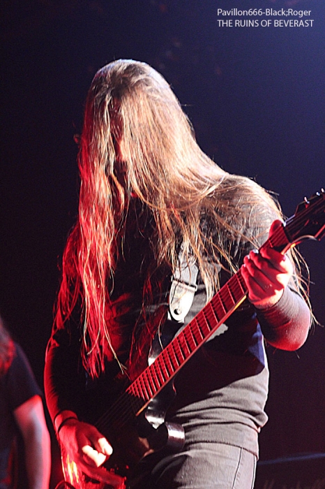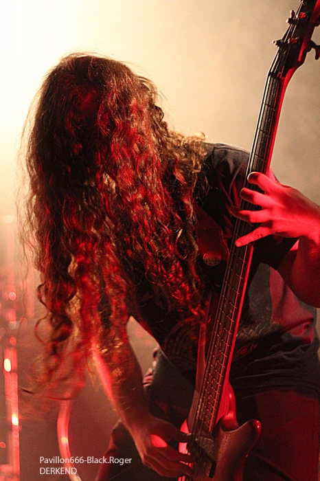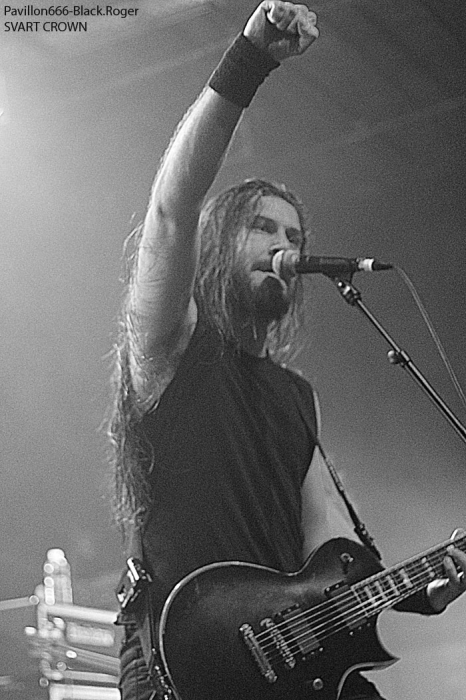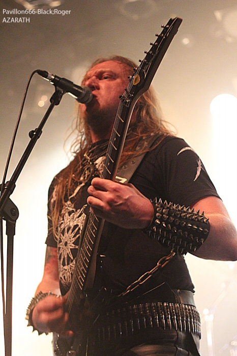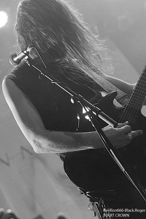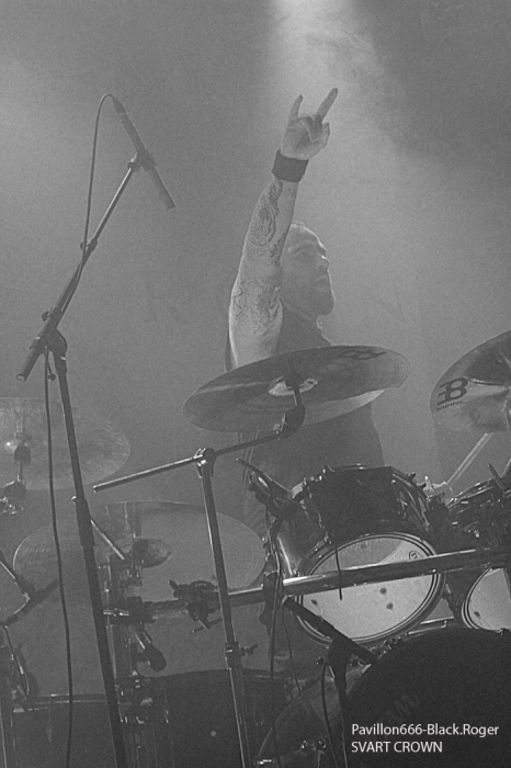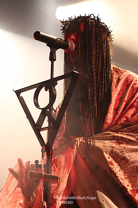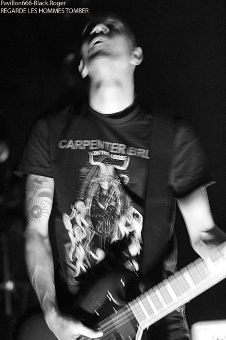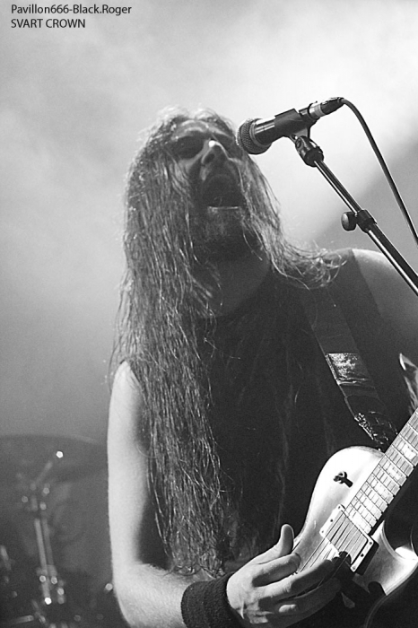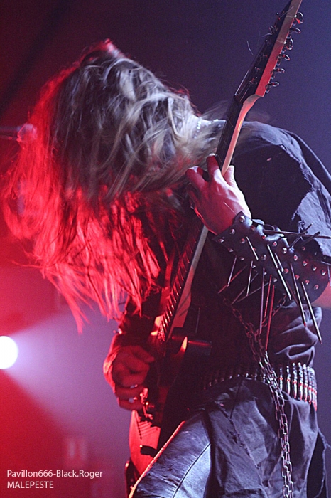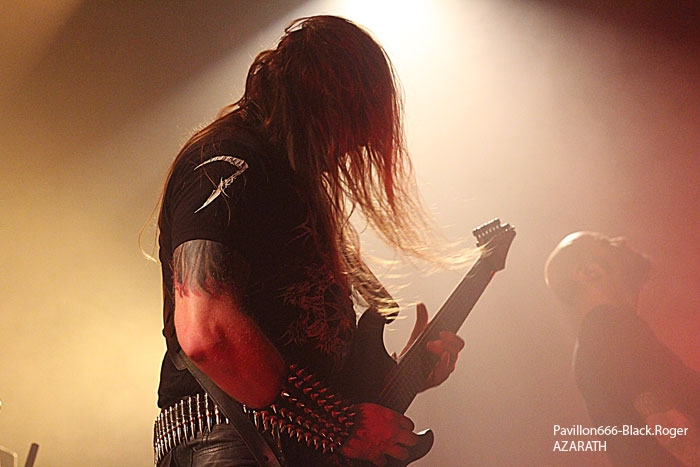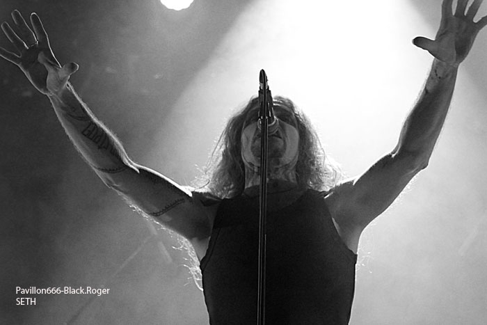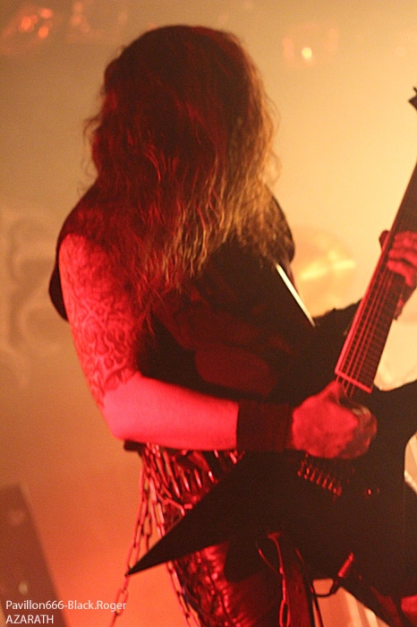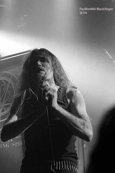 Il est donc largement 16 heures au clocher de Villeurbanne et la messe noire peut commencer avec dans la pénombre devant nous sur scène du black ritualiste envoûtant proposé par MALEPESTE. Ce groupe local a pour mission de nous faire entrer dans ce festival où le malin officie en maitre, mais pas que… En fait une certaine « peste noire » va contrarier l’envie de bien faire de nos blackeux locaux. En effet, le son va se révéler peu favorable à leurs incantations maléfiques, les vocaux seront perdus au fond des enfers, les accords de guitare seront par moment diabolisés par des dérapages, etc, etc…bref, ce ne fut pas un set mémorable il faut le reconnaitre. De plus une grande scène ne semble pas propice à une certaine ambiance génèrée par le groupe sur des scènes plus ‘intimistes » c’est certain. Mais le public semble avoir quand même apprécié entre autre les titres de leur dernier album éponyme et donc découvert MALEPESTE. A revoir donc dans de meilleures conditions. La transition est brutale pour la suite avec REGARDE LES HOMMES TOMBER. Alors, en reconnaissant derrière le micro Dagoth, frontman de OTARGOS, nous nous demandons à quelle sauce black nous allons être « mangés » ce soir. Et bien cette sauce va se révéler curieuse et avant-gardiste tout simplement avec des lights blanc et agressifs découpant les silhouettes de ce quatuor atypique où un certain black progressif et aventureux mâtiné de post-hardcore nous est proposé. Si leur premier opus éponyme en avait déstabilisé plus d’un dans la sphère black-metal, leur prestation scénique est assez concluante et démoniaque. Rage et intensité sont au menu avec des dérives sludge et cette batterie aux blasts percutants, mais redondants à la longue peut-être et cette basse déviante et tordue nous remontant les tripes dans l’estomac. Le chant et les bidouillages électro du vocaliste sont prenant même si la recette post-métal, fut-il noir, reste dans l’ensemble assez convenue. Groupe à suivre donc, on expérimente, on expérimente, mais voyons la suite. Pour ce soir les inconditionnels d’un AMENRA par exemple ont été satisfaits, quant aux autres… Partons maintenant de l’autre côté des Alpes avec les Italiens de DARKEND. Prestation théâtrale de rigueur pour un black ritualiste (encore) avec le décorum adéquat, crânes, encens, bougies et frontman coiffé d’une couronnes d’épines (jésus revient ou quoi ?). Bref, nos amis transalpins en font des tonnes visuellement parlant, mais qu’en est-il de la prestation musicale ? Si vous avez écouté leurs albums « Assassine » et « Grand Guignol 1 » vous ne serez pas surpris outre-mesure sauf qu’ici l’ambiance créée est remarquable et remarquée. Depuis huit ans déjà cette horde obscure a pas mal « roulé sa bosse » sinistre et sulfureuse en ouvrant notamment pour MARDUK, BEHEMOTH ou encore IMPALED NAZARENE. Et en cette fin d’après-midi sur la scène du CCO leur démonstration occulte et très remarquée en a convaincu plus d’un, pourquoi pas ? Le « réveil » va être brutal maintenant avec les envois musclés faits de black et de death imparables propulsés par les Niçois de SVART CROWN. J’ai eu l’occasion de voir en live à de nombreuses reprises ce quatuor de métal extrême qui fait honneur au métal Frenchie, la dernière fois ce fut l’an dernier au Metaldays Festival en Slovénie. Et à chaque fois j’ai été subjugué par leur prestance en live et donc leur démonstration puissante, énergique, malsaine aussi, en un mot imparable. Et ce soir, c’est la même, tous les « potets » sont dans le rouge, l’ambiance survoltée est au rendez-vous, bref c’est la claque assurée, une tuerie tout simplement. Vous avez aimé leur dernier « méfait » le fameux « Profane » et ce soir vous « dégustez » le tout en live vous les « addicts » du slogan « extrême metal for extreme people », et vous avez bien raison, prestation sans faute encore une fois, on aime tout simplement. Et puis, retour au black pur et dur dans le navire sombre de SETH qui n’a pas encore « cicatrisé » ses « blessures de l’âme » et vient ce soir en rajouter un peu avec sa présence particulière après un long « stand by ». Ces pionniers du métal noir nous manquaient, mais ils étaient revenus au Hellfest l’an dernier pour nous rappeler à leur bon souvenir et ce fut bien. Aujourd’hui 8 Mars ils arrivent sur la scène du CCO pour nous apporter à nouveau la bonne parole et la magie opère à nouveau après presque 20 ans déjà de pérégrinations. « Hawling Spirit », dernière œuvre de la horde a marqué ce retour discographiquement parlant, mais participer à un concert de SETH c’est encore mieux. Et cela même si d’un album à l’autre le groupe part toujours un peu à l’aventure pour ne pas se répéter avec les compositions de Heimoth et Cyriex. Les bordelais sont donc bien de retour et nous le prouvent encore ce soir si il fallait enfoncer le clou à nouveau dans nos cerveaux fascinés par leur set. La suite va se révéler bien brutale avec AZARATH qui comprend dans son line-up Inferno le batteur de BEHEMOTH. Place donc aux polonais qui ne sont pas réputés pour faire dans la dentelle (comme tous les groupes métal de ce pays en général). Ici pas d’ambiant ni de progressif, on taille dans le vif du sujet avec du black-death bien saignant, garez-vous ça va faire mal. Ce combo infernal formé par Inferno (sic) en 1998 apporte avec lui la désolation et la guerre partout où il passe. Alors en cette nuit maudite au CCO, ce sera le ravage de neurones programmé, sans fioritures, un direct dans ta face et dans tes conduits auditifs. Ah ce métal extrême de l’est, quelle « pêche », quelle « patate » on reste sonné encore longtemps après la fin de leur dernier titre. Cela fait du bien par où ça passe, enfin pour tous ceux qui aiment la brutalité explosive du mél