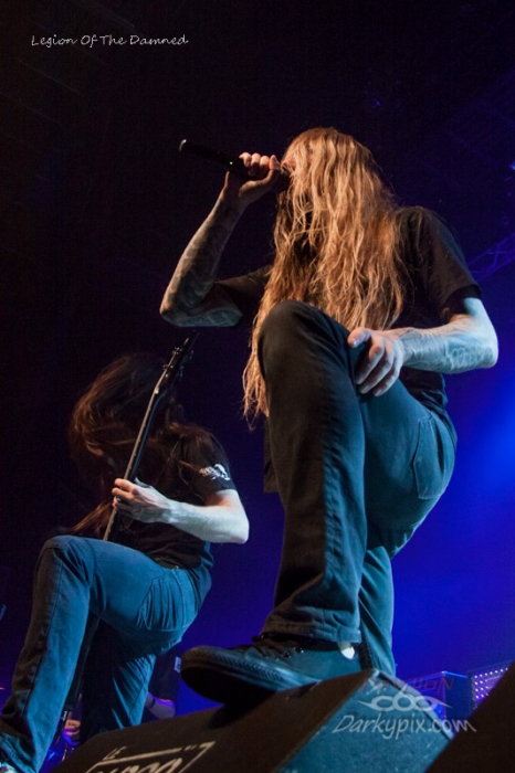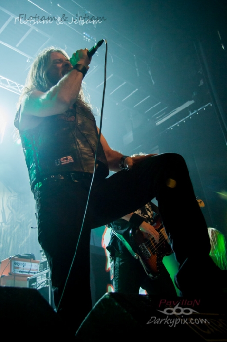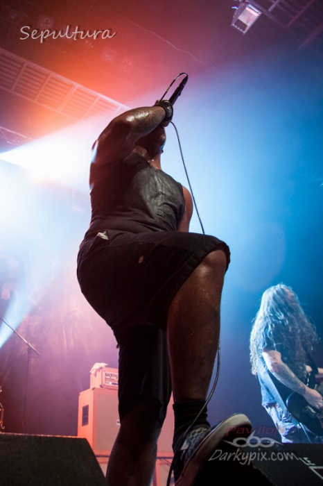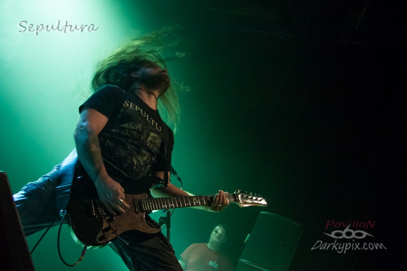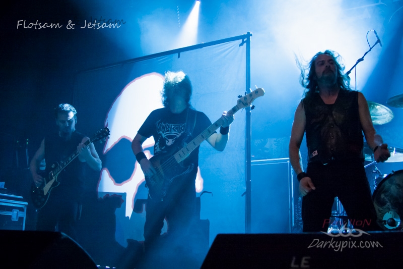 Bien que celle ci m'a parue plutôt décevante au niveau de la voix de la chanteuse Cara McCutchen. Mais ils avaient l'air d'être bien énergiques sur scène. N'ayant vu qu'un titre sur leur show, je n'ai pas pu me faire d'opinion sur ce groupe. Etant quand même curieux, à la fin du concert, j'ai écouté leurs albums. On se retrouve avec du bon vieux Thrash Métal mélangé à du Heavy, ce qui sonne à merveille. Composé de Kevin Gaudet à la batterie, Miranda Wolfe à la basse, Alex Scott, et Gutierrez aux guitares, ils ont un rythme entraînant et d'excellent riffs, bourrés d'inspiration et un bon avenir devant eux. Hélas la salle était peu présente pour ce groupe. Ils cèdent leur place au mythique Flotsam & Jetsam qui ont sorti pas moins de 11 albums !!! On ne change pas de style, Flotsam & Jetsam envoie la sauce. Du bon vieux Thrash, clair, net et précis avec quelques mélanges de Speed métal. Ils sont originaire d'Arizona et ont changé plusieurs fois de nom de groupe dans leurs débuts. Ils sont composés de Kelly David Smith à la batterie, Eric A 'A.K.' Knuston au chant, Steve Conley et Michael Gilbert aux guitares, et de Michal Spencer à la basse. Ce groupe est surtout connu de nom en Europe pour avoir eu dans son line-up l'ancien bassiste de Metallica : Jason Newsted. Bien que le public soit essentiellement venu pour Sepultura, une partie était présente pour ce groupe mythique. Ils enchaînent leurs morceaux récents comme anciens et le public le leur rend à merveille. Un vrai délice pour les oreilles avec leurs riffs et leur style bien à eux. Après ce groupe mythique, retour dans le nouveau et dans du lourd avec Legion of the damned. Les ex- Occult, originaires des Pays-bas, se sont formé en 2004, après le départ de leur chanteuse Rachel Heyzer. Richard Ebisch à la guitare, Maurice Swinkels au chant, Harold Gielen à la basse et Erik Fleuren à la batterie forment actuellement ce groupe. Entre le Thrash et le Death métal, ils possèdent un style plutôt agressif et très énergique sur scène. Le public est très réceptif sur leur set. Leurs riffs sont assez accrocheurs et il y a très peu de ralentissements pendant leur show. C'est un groupe à revoir sans hésitation. Maintenant place aux Brésiliens, Sepultura !!! Composé de Derrick Green au chant, Andrea Kisser à la guitare, Eloy Casagrande à la batterie, et de Paulo Pinto à la basse, le seul et l'unique à être resté depuis la formation du groupe en 1984. Après le départ de Max Cavalera, suivi d'une tournure vers un Thrash métal teintée de Groove et de Tribal, et malgré des critiques mitigées sur le groupe, je le trouve encore excellent et la manifestation de la foule le prouve aussi. La salle est pleine et ils entrent en scène sur "Trauma of War", "The Vatican" et "Kairos". Le groupe déborde d'énergie et prend plaisir à jouer. Ils enchaînent leur set avec style et je les trouve plus en forme que jamais. Bien que là pour présenter leur nouvel album, ils nous font l'honneur de leurs classiques avec " Propaganda" et "Dusted". Ils nous ravivent aussi avec leur reprise de New Model Army , "The Hunt", et "Da lama ao Caos" de Naçäo Zumbi, où Derrick se met à la percussion laissant ainsi la place à Andrea Kisser aux vocaux. Ils finirent leur représentation sur "Arise", qui est la chanson "d'amour" de Derrick. Salle en délire complet et qui on en veut encore !!! De retour sur scène pour le rappel, ils commencent par "Ratamahatta" et le célèbre "Roots Bloody Roots". Et là c'est fini pour de bon, bien qu'on serait resté une heure de plus !!! Bien que cela fasse 30 ans que Sepultura ait été fondé, ils continuent de nous faire du bon Thrash métal avec un style unique et ravageur. A quand leur prochain passage ??? Set-list : Trauma of War The Vatican Kairos Propaganda Impending Doom Manipulation of Tragedy Convicted in Life Dusted The Age of the Atheist Desperate Cry The Hunt (New Model Army cover) Spectrum Da Lama ao Caos (Nação Zumbi cover) Inner Self Territory Refuse/Resist Polícia / Orgasmatron Arise Rappel: Ratamahatta Roots Bloody Roots |