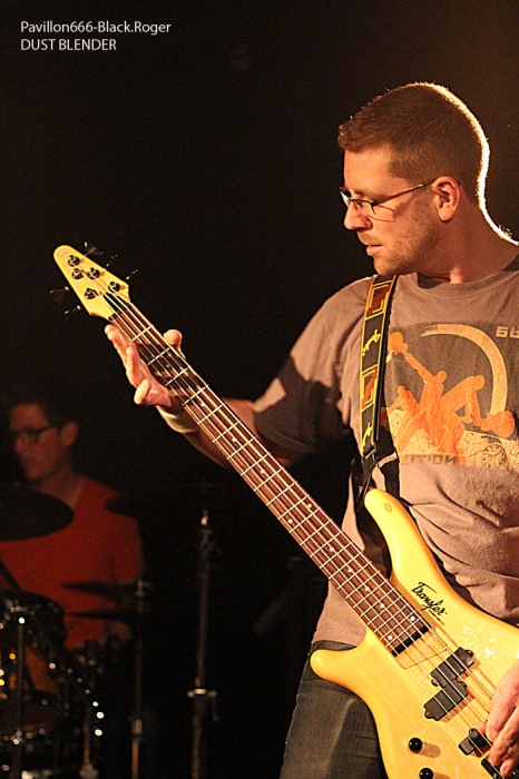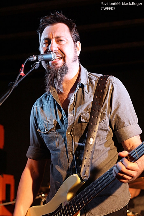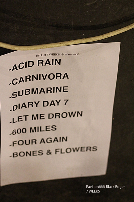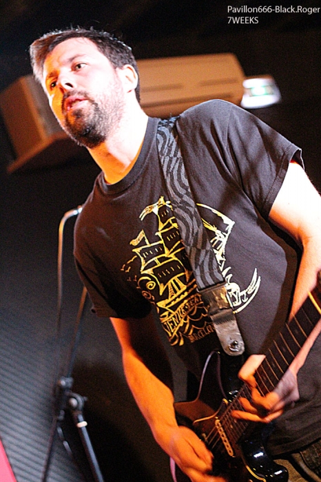 Après s’être bien restauré au bar durant l’ « happy hour » des lieux, il est temps de dégainer le matériel photo lorsque la première formation lâche le gros son lourd et gras du stoner donc. Ce premier groupe c’est DUST BLENDERS qui a donné son premier concert le 4 mars dernier, le second au Warmaudio ce soir… Alors, Tonyo, JB, Nico et Oliv’ envoient du bon gros stoner-rock et l’on sent que les musiciens ne sont pas nés de la dernière pluie du désert-rock. Effectivement ils ont déjà participé à d’autres projets dans la région auparavant. Résultat, du bon, bien « riffu », bien « heavy » avec une basse bien ronde qui soutiens l’édifice. Le chant est rugueux mais peut-être un peu limite encore par moments, c’est la seule remarque qui me vient à l’esprit après avoir subit les assauts de leurs compositions qui tiennent la route. Alors, nous leur souhaitons que du bon pour la suite, ils ont ouvert avec brio cette soirée consacrée au gros rock qui tâche, mais pas seulement… C’est au tour maintenant de 7 WEEKS d’investir la scène du « Warm ». Ceux de Limoges ont choisit depuis l’an 2006 la voie tortueuse du rock dit « stoner » mais en y ajoutant des dérives alternatives, aventureuses et des « flash-back grungy ». Après avoir sorti trois albums, dont le petit dernier « Carnivora » (2013 (en édition vinyle collector depuis peu) et donné plus de 150 concerts en France et en Europe ils se sont forgé une identité qui leur est propre sortant des sentiers battus. Depuis le Printemps de Bourges qui les a propulsé en avant jusqu’au Hellfest l’an dernier en 2013, le quatuor s’est fait un nom dans le paysage stoner et ce n’est pas le concert de ce soir à Décines qui contredira cet état de fait après une tournée Irlandaise récente au compteur. Bon, ce soir il faut admettre que le son ne sera pas génial pour les trois formations en lice, nous y reviendrons. Mais 7 Weeks va réussir à tirer son épingle du jeu par son dynamisme (claviériste endiable ndlr) avec un Julien (chant/basse) menant la chorégraphie scènique de main de maitre. « Acid rain », « Carnivora » et « Submarine » lancent les hostilités de façon brutale, et puis les atmosphères mélancoliques feront le reste avec « Let me Drown » et « 600 Miles » (remember THE DOORS), pour mieux remonter au créneau binaire avec le voyage « cow-boy » de « Bones & Flowers ». En 8 titres ce soir 7 Weeks nous promènera entre QOTSA et KYUSS, entre rock graisseux et atmosphère psychédélique, et après avoir vu le groupe bien souvent en live je ne puis qu’adhérer encore une fois à leur musique, le voyage fut délectable ce soir, sans problème. (set-list-photo) Dans la famille stoner frenchie, je voudrais LOADING DATA et mon souhait se réalise maintenant, là tout de suite avec l’arrivée de Patrôn et de ses sbires, un bassiste remplaçant ce soir la charmante Louise Découflé. LOADING DATA qui navigue entre L.A. aux « states » et la France ne serait qu’un groupe de plus « biberonné » à KYUSS et SOUNDGARDEN si il n’y avait au menu des compositions originales en diable bien retranscrites en live. Nous avons aussi et surtout, la voix particulière de Patrôn, cette voix grave se modulant dans différents registres, « LA » voix stoner par excellence s’accordent à dire les critiques musicaux. Et sur ce point je suis entièrement d’accord. Niveau musique, leur rock dit stoner dérape de temps en temps vers M. BUNGLE et propulse un certain côté « robot-rock » répétitif à la Terry Riley de bon aloi durant le set. Ce set qui démarre en trombe avec « Zootopia » de 2002 implacable rock échevelé et qui ensuite se promène entre leur dernier opus en date « Double Disco Animal Style » très aventureux et osé, et le plus classique « Rodeo Ghettoblaster » aux ambiances lourdes et nonchalantes souvent, mais hypnotiques, puissantes et toujours syncopées. Seul regret, le son, notamment au niveau du micro-chant, ce son qui devient bien brouillé au fil des morceaux surtout en fin de show. Néanmoins, le temps à passé vite, trop vite à mon goût. Dommage car on aurait bien reprit une louche de ce désert rock épique aux réminiscences nostalgiques mais modernes à la fois, un rock déglingué et dirty aussi, un must vous dis-je ! (set-list – photo) Soirée bien réussie en somme encore une fois dans ce Warmaudio de Décines, le bien nommé. Merci donc à l’équipe de ce lieu incontournable de l’est lyonnais et merci aux trois formations de ce soir faisant honneur au stoner frenchie de qualité. |
