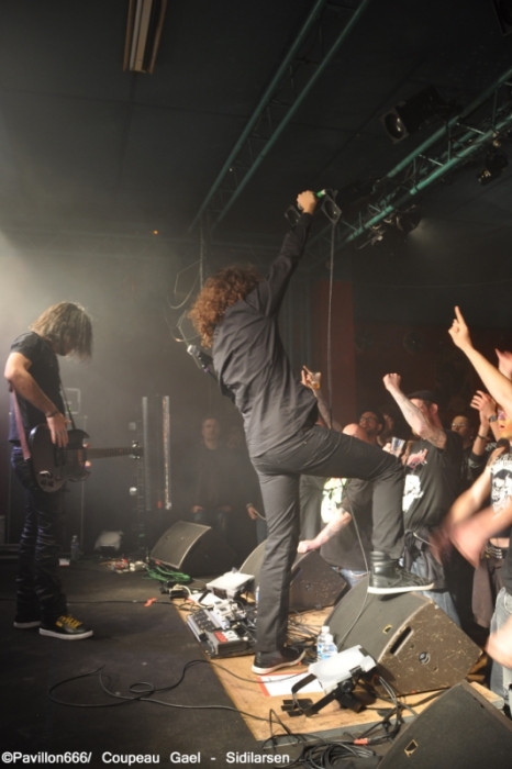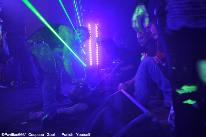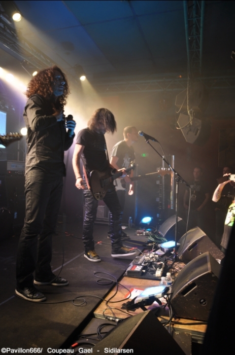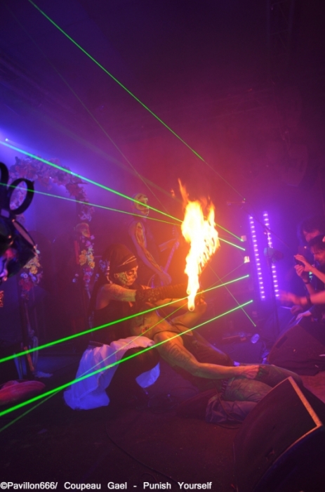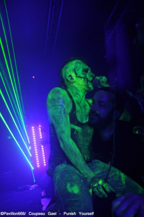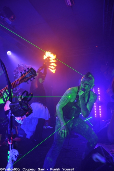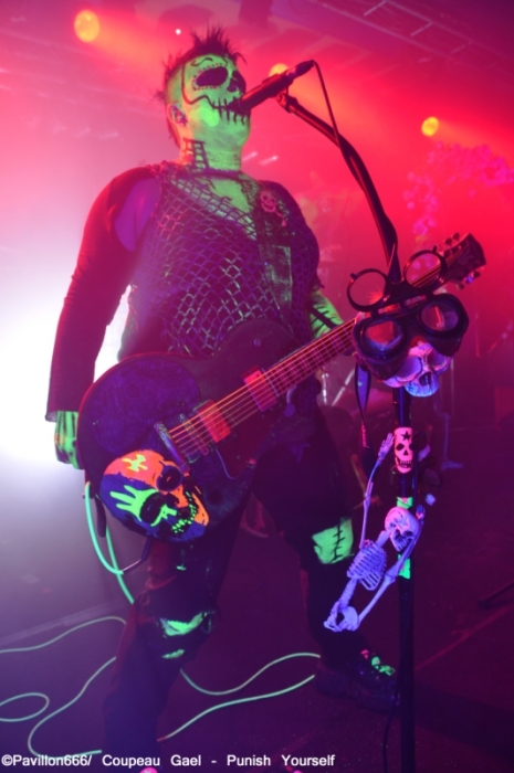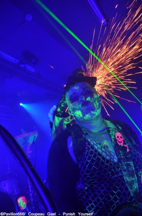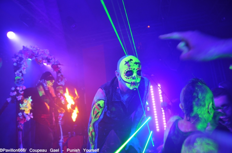 Il est inutile de présenter la bande toulousaine de David.C le chanteur de sidilarsen. Déjà sur leurs 5ieme albums le groupe ce soir nous livre une préstation parfaitement maitrisée, l’expérience parle. Dés le début les riffs de guitares on vibré sur « comme on vibre » et le publique l’a ressenti puisqu’ils se sont mis a danser ( a la mode métal quand mme hein ) du début a la fin. malgré la petite scène du Vauban, ils on bien su l’exploiter en allant a ses 4 extrémités n’hésitant pas a en faire profiter le public en s’y approchant et en serrant quelque poignes bien viriles entre deux morceaux. « Back to basics » a bien evidemment été joué avec son introduction qui lui colle a la peau, suivie un peu après d’un puissant solo de batterie. Pour finir ce show de prés d’une heure et demi « nous sommes des milliards contre une élite » qui a fait raisonnr les murs et que toutes la scène, et même les intermittents du spectacles on reprit .. Ensuite viens l’entracte une petite demi heure s’est passée, le temps que les installations pour Punish Yourself soient en place .. bière a la main, et black sabbath dans les oreilles, c’était pas pour nous déplaire. Laser en place, lumière noir check, les reflex sont gonflé a block, GO L’entré de punish yourself est fracassante. Ils passent sous un petit pont avec des fleurs et un coeur coupé en deux en guise de porte tel un saloon ( album sur le Mexique oblige ) C’était trop mignon ce petit coeur, mais rien a voir avec de la musique « cul-cul » a l’eau de rose, ici c’est du métal phosphorescent .. Punish yourself est surtout connu pour leurs look très attractif, et photographiquement parlant, on s’éclate c’est vrai, jetais juste devant « Miss Z » . Ce soir la ils nous on arraché les yeux et les oreilles, mais on est la pour ça après tout. Pas mal de chansons du dernier album « holiday in guadalajara » on été joué avec bien évidement les sombreros de sortie, entre quelques pattes et mains de squelette, c’est tout une mise en scène fichtrement bien foutu qui colle parfaitement aux sonorités glam punk rock métal techno indus hardcore dance ( ha oui ça en fait hein, faut se diversifier dans la vie ) . Petite anecdote qui m’a fait sourire, certaines personne du public se collait la tête sur les bras et le torse du chanteur pour avoir du flou, c’était assez rigolo de voir ça, et c’est d’ailleurs agréable de voir que de tels groupes soient encore accessibles, pour avoir papoté un peu avec Vincent, et aussi David de Sidilarsen .. C’est donc encore une claque visuelle et auditive prise ce soir au Vauban, deux groupes a voir impérativement. |