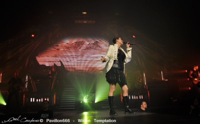 Dans la salle je me suis fait la réflexion étonnante qu’il y avais toutes sorte de personnes et de tous âges, ce qui est plutôt surprenant, mais c’est tout aussi agréable, le déplacement se faisait pour beaucoup en famille sur trois générations. Delain ouvre le bal a 18H30 pour une soirée qui s’annonce sous le signe du métal symphonique. Les guitaristes arrivent sur scène avec le batteur et le claviériste, puis au tour de Charlotte, leader du groupe Delain. une grande salle leur a permis d’exploiter plein pot tout leur talent ( et pas des moindres ). Les deux guitaristes Timo & Otto on pu s’en donner a coeur joie en allant de gauche a droite sur scène pour être encore plus proches de leurs fans. Trés pros, Martijn et Sander on très bien tenu leur place sans faux pas tout au long de se concert, Charlotte a su faire une prestation digne de Delain, un grand groupe qui envoie du steak … magistral. Un entracte assez long nous est imposé, le temps de la préparation de la scène monstrueuse pour Within Temptation. Un grand rideau blanc au devant de la scène cache le tout avant le début du spectacle. Le rideau tombe enfin et le groupe nous balance d’entrée le fort et puissant « let us burn » puis enchaîne sur « paradise » et « faster ». En trois chansons il nous en ont mis plein la figure, un jeu de lumière parfaitement maîtrisé, un écran géant, gigantesque dirais-je même, calé entre deux hydres sur lequel apparaissait « X-zibit » pour le duo sur « And we run » et Tarja ( ex Nightwish) pour la chanson "paradise" ( second titre joué ). Tous les membres du groupe se sont donnés à fond pour leur public qui le lui a très bien rendu tout au long de ce concert. Après la dixième chanson « and we run » ( feat « X-Zibit) le groupe s’éclipse puis nous laisse dans le noir devant une video durant cinq bonnes et longues minutes. Le temps pour eux de se ressourcer très probablement, et pour nous de voir une intro de « The Silent force » ( au titre éponyme de leurs 3ème album après « mother earth » et « Enter » ) Puis tout repart de plus belle en enchaînant « see who i am », « stand my ground » … puis la suite se fait avec sûrement l'une des chansons la plus attendue par tous, « mother earth ». Un live qui touche a sa fin avec « summer time sadness », cover de « lana del rey », « sinead » en acoustique, « ice queen » avec la force de Sharon comme on l aime, puis standing ovation du public pendant 5 minutes. Et enfin ( ou plutôt déjà ) voila le vingtième et dernier morceau joué en acoustique « whole world is watching ». Une fin bien posée par rapport a la puissance de feu du début. Ce fut un concert ( première partie incluse ) tout simplement magistral, très travaillé sur les lumières, le son, les prestations, et beaucoup de passions ressentie tout au long de ces deux prestations. |
