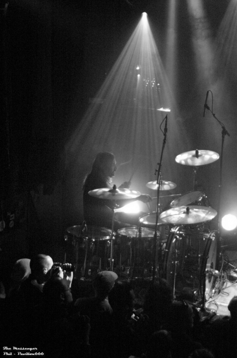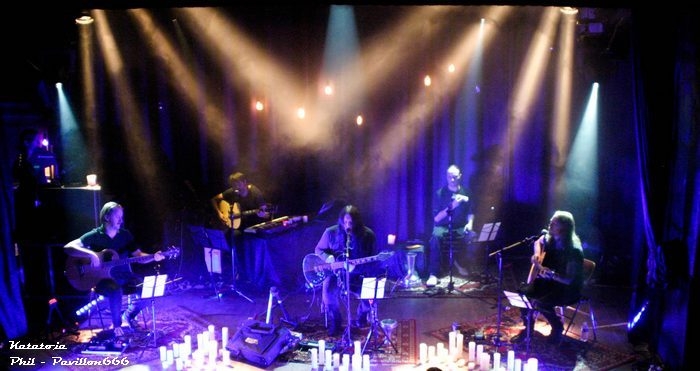 L'ouverture de la soirée revient aux londoniens de Messenger. Le quintette distille une musique agréable mais pas vraiment orientée metal, les compositions oscillent entre rock, pop énergique. Les musiciens sont en place et assure un set respectable et honnête, s'exprimant dans une ambiance plus souvent sombre que claire. L'étroitesse de l'espace qu'il leur est réservé, ne permet pas à Messenger d'être vraiment mobile, laissant Khaled Lowe (chant, guitare) et Barnaby Maddick (guitare) se déchainer uniquement lors des montées d'intensité. L'accueil réservé aux anglais est courtois, les interventions entre les morceaux du vocaliste se faisant en français ne font que renforcer l'expression du public. Un set qui s'est laissé écouter et voir permettant de chauffer l'assistance sans l'anéantir. L'entracte permet de confirmer le schéma adopter par Katatonia, tapis, chaises, bougies électriques, pupitres... Pas de doutes, nous sommes bien là pour suivre un concert intime et chaleureux. En quelque sorte le Divan s'installe dans votre salon. De tous les instruments, seuls le clavier de Bruce Soord (The Pineapple Thief, Wisdom Of Crowds) et la guitare de Jonas Renkse sont électrique, pour le reste il faut compter sur la basse acoustique de Niklas Sandin, la guitare acoustique de Anders Nyström et les percussions de JP Asplund. D'entrée de set, les cinq musiciens font preuve d'aisance et de sérénité. Aucuns bruits parasites au niveau des manches viennent perturber les sons. Les percussions sont audibles sans tendre l'oreille, la voix de Jonas Renkse est claire et nette. Situé au balcon, les compositions présentées pour la soirée résonne sans fautes de production, seul point d'ombre sur deux titres où la basse devient mixée avec trop de grave, mais ceci revient vite à son niveau initial. La setlist n'est pas une réplique intégrale de "Dethroned & Uncrowned", les suédois vont s'appliquer à revisiter des morceaux provenant de ses débuts. L'exercice est bien maitrisé et permet d'apporter une touche d'originalité par rapport à l'album. Pour le rappel, Katatonia joue pour la première fois de sa tournée "Omerta", une bien belle inauguration. Le set n'est guère long, environ 1h20, mais est largement suffisant pour rester un show intéressant et surtout non barbant. La qualité au lieu de la quantité en fait... Lorsque les lumières reviennent briller dans la salle du divan du monde, les visages laissent penser que tous ont passé une agréable soirée, que l'on soit sur les planches, dans la fosse ou au balcon. Comme quoi, si un jour nous perdons l'électricité, le metal pourra perdurer... Setlist : In the White Ambitions Teargas Gone A Darkness Coming One Year From Now The Racing Heart Tonight's Music Sleeper Undo You Lethean Day Idle Blood Unfurl Rappel : Omerta Evidence The One You Are Looking for Is Not Here |