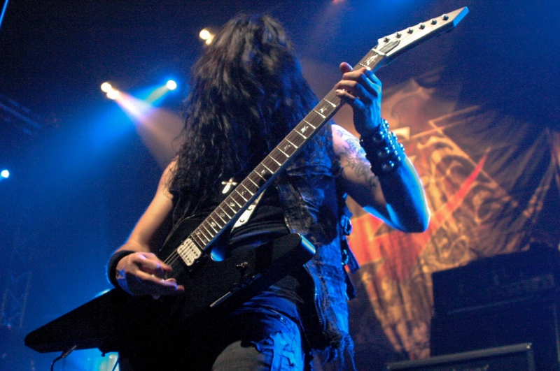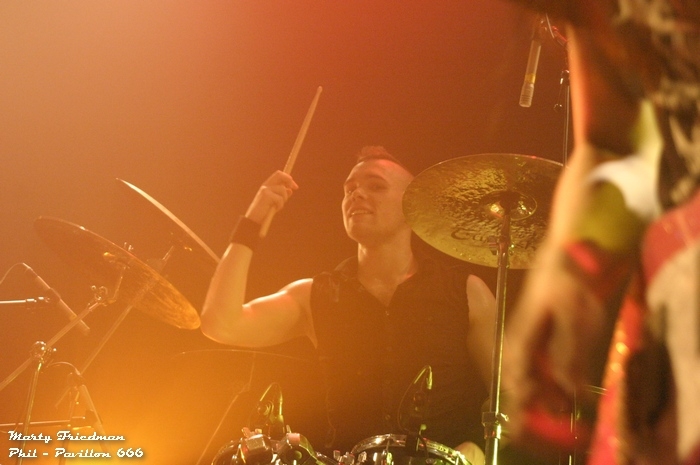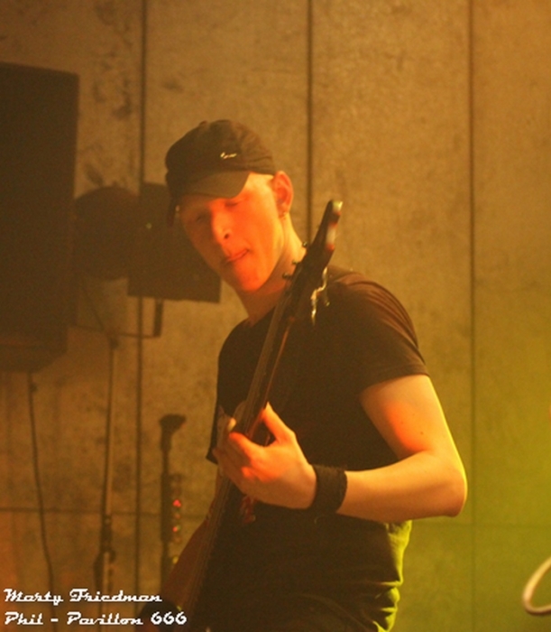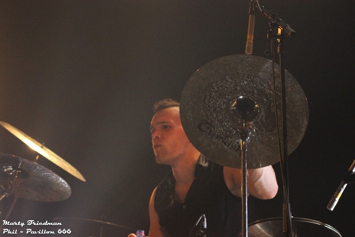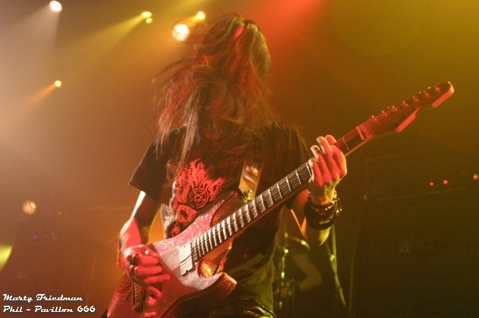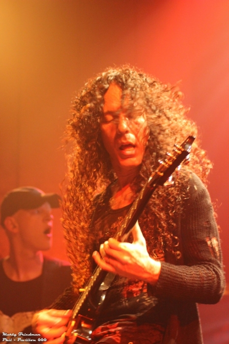 L'ordre retenu est peut-être discutable pur certains mais le temps de jeu des deux artistes, GUS G et MARTY FRIEDMAN, est identique. Tout comme l'espace scénique disponible pour chaque formation. Lorsque la salle s'éteint, le public est déjà massé pour l'arrivée du quatuor mené par le guitariste grec. Assisté de Mats Levén (chant), et d'une section rythmique commune avec Marty Friedman, le groupe ne perd pas de temps pour mettre l'assistance dans a poche. Les musiciens sont en place dès le premier morceau et dégoupillent quelques brûlots issus de l'album "I Am The Fire" ou provenant des groupes cultes : Black Sabbath, Thin Lizzy et bien sûr Ozzy Osbourne. Sur les quatorze titres interprétés, seuls deux compositions viennent de Firewind. Gus G et ses compères vont éviter de s'enfermer dans la démonstration en présentant essentiellement des titres chantés. Les morceaux s'enchaînent sans temps morts, Mats Levén vient au contact de la fosse et les autres musiciens n'hésitent pas à se dépenser sans compter. Point de rappel pour ce spectacle, mais lorsque la dernière pépite arrive, il n'en faut pas plus lors que son annonce et des premiers coups sur les fûts pour que l'euphorie gagne encore un peu plus l'Empreinte. "Crazy Train" va mettre tout le monde d'accord... Gus G ne doit pas quitter la scène, cela n'est pas envisageable et la fin du morceau voit le groupe venir saluer les fans et les lumières briller à nouveau. Setlist : 01/ My Will Be Done 02/ Eyes Wide Open 03/ Blame It on Me 04/ Vengeance 05/ Summer Days 06/ Just Can't Let Go 07/ Hollywood (Down on Your Luck) (Thin Lizzy cover) 08/ World on Fire (Firewind) 09/ The Fire and the Fury (Firewind) 10/ Terrified 11/ Into the Void (Black Sabbath cover) 12 / Redemption 13/ I Am the Fire 14/ Crazy Train (Ozzy Osbourne cover) Le temps de reprendre nos esprits l'ex-guitariste de Dave Mustaine s'installe à son tour sur les planches. Marty Friedman et son flingueur, Takayoshi Ohmura , partent pour 1h20 d'hommage à la six cordes, voire plus si l'on regarde de plus près le guitare du musicien japonais. Il est vrai qu'il convient de maîtriser la discographie de l'américain exilé car le résultat fait l'effet d'une seule et unique composition prolongée. Toutefois les deux musiciens ont une telle approche que le set est facile d'accès et surtout pas lassant. Marty Friedman se voit doté d'un micro tous les trois titres environ afin de communiquer verbalement avec le public. Au contraire de l'album "Inferno", aucun titre n'est chanté. Bien que l'opus ne soit pas commercialisé à cette date, le groupe va exécuter trois morceaux de celui-ci, dont le titre d'ouverture du set. Inutile de vous confirmer que les quatre musiciens sont en place et délivrent un show carré. Les deux guitaristes se complètent parfaitement, tant au niveau rythmique que dans les échappées solitaires. Marty Friedman n'est pas égoïste, permettant à Takayoshi Ohmura de s'adonner aux soli. Le groupe se risque dans une interprétation d'une reprise de Rammstein en tout bien tout honneur. Là encore pas de rappel, mais un moment spécial pour le dernier morceau de la soirée. Tous l'attendions, l'heure est venue à la jam et au retour de Mats Levén et Gus G sur la scène pour un "Symptom of the Universe"riche en guitare ou chacun y va de son solo. Un partage agréable pour tous semble-t-il. Il est temps à l'Empreinte de quitter son ambiance obscure, les fans et spectateurs de tous horizons laissent paraître une joie certaine. Que l'on soit venu pour Gus G, Marty Friedman ou les deux, Guitar Universe 2014 a conquis tout amateur de rock sous toutes ses formes. Setlist : 01/ Hyper Doom 02/ Steroidhead 03/ Stigmata Addiction 04/ Elixir 05/ Amagigoe 06/ Kaeritakunattayo 07/ Inferno 08/ Asche Zu Asche / My Oh My (Mutation Medley) (Rammstein / Slade covers) 09/ Forbidden City 10/ Tornado of Souls (Megadeth) 11/ Ripped (avec solo de Takayoshi Ohmura) 12/ Devil Take Tomorrow 13/ Ballad of the Barbie Bandits 14/ Symptom of the Universe (Black Sabbath cover) |