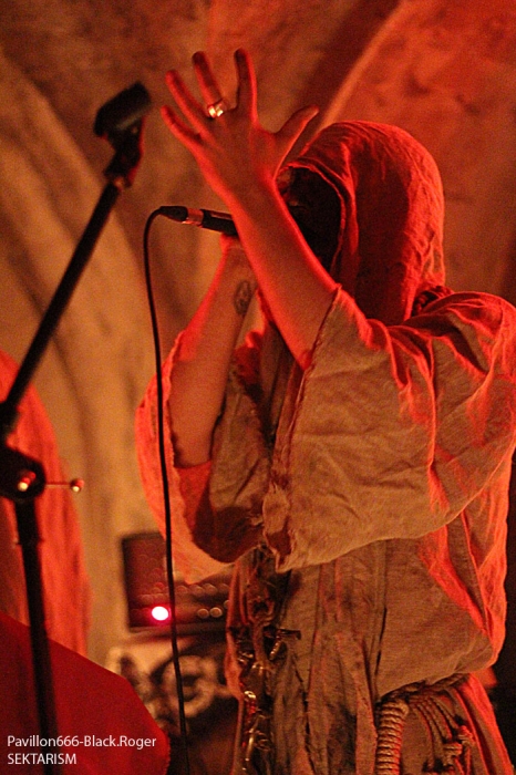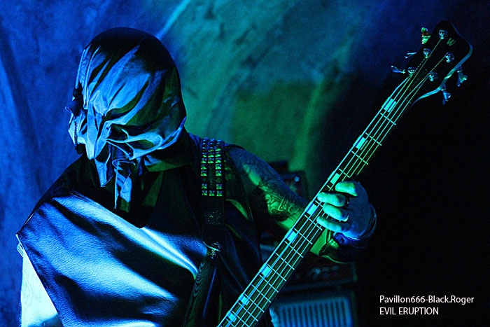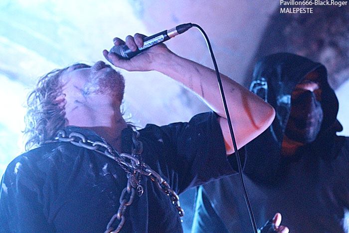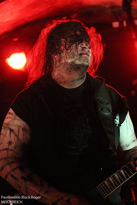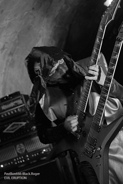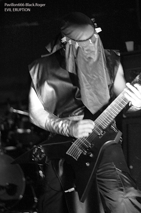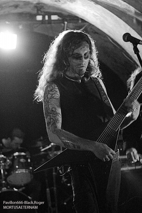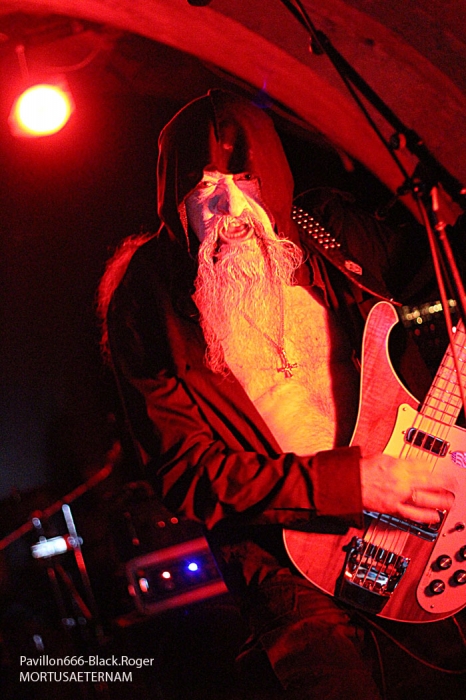 C’est DAUGHTERS OF SOPHIA de Lyon ouvre la soirée avec son black-métal atmosphérique et hypnotique. Fort de son nouvel opus « 20.0° Raflifu » paru en mars dernier, le groupe a bien avancé dans son projet musical. Les musiciens sont appliqués et donnent le meilleur d’eux-mêmes sans pour autant nous interpeller fortement. Voici donc une musique noire et sombre (pléonasme ?) qui est bien faite et dont le rendu en live est bien précis et fidèle à leurs compositions. Du bon black atmosphérique avec des mélodies acides, un bon black qui pourrait encore plus se développer. Nous allons donc suivre ce groupe prometteur qui n’a pas encore réussi à nous combler l’esprit, il suffirait peut-être d’un rien, d’une accroche venue du fin fond des recoins de son âme noire pour nous faire adhérer pleinement à leur démarche…En tous cas ce soir ils ont donné un bon set sans bavure et de toutes façons bien intéressant. MORTUSAETERNAM, horde black de St-Etienne m’a surprit ce soir par la qualité de sa prestation. Me restait en souvenir un set écourté ici même il y a …longtemps. Mais maintenant je constate que le groupe a bien progressé par sa tenue de scène, le décorum et les corpse-paints adéquats. Les compositions de leur enregistrement de 2011 prennent la dimension voulue sur scène avec un son qui leur fut favorable ce soir. Leur black cru, rugueux, malsain et old-school passe bien finalement. Très bonne prestation ce soir, pas de problème. Les Lyonnais de EVIL ERUPTION qui prennent la suite ont des ennuis pour se « caler » visiblement et cela à l’air de bien les énerver. Mais bon au bout d’un moment il faut y aller. Alors on enfile les voiles et autres capuchons, on envoie les décibels même si le rendu semble un peu « brouillon ». le chanteur va s’en excuser d’ailleurs, pourquoi donc… Cela arrive en live, alors ils vont jouer à l’énergie et nous délivrer un black apocalyptique dont ils ont le secret depuis…18 ans déjà, ils nous le rappellent aussi. Leur album « True Evil Never Dies » vous a interpellé, alors sur scène maintenant vous allez en prendre plein les oreilles. Et même si le son, comme déjà dit, n’est pas terrible, leur set va retourner la Clé d’Voûte par sa puissance de feu. Evil Eruption a donc bien fêté son anniversaire avec une prestation de toute façon excellente. On se calme un peu avec du black ritualiste, mais pas n’importe lequel. C’est celui des lyonnais de MALEPESTE, dont les membres se présentent à nous en haillons, chaines au corps avec bougies de rigueur sur scène. Ce soir MALEPESTE nous propose un set avec aux vocaux Vegard d’UDYR, remplaçant pour un soir le tenant du titre. Alors au final ce sera bien, les vocaux seront certes différents de part la voix mais tout passera très bien. Niveau musical pas de problème, pas de larsen (sic), la horde »dépenaillée » va assurer ce soir. Ambiance bien installée, musiciens au top, tout ira bien et nous passeront donc un très bon moment en leur compagnie, il fallait le dire. MOONREICH de Paris est très attendu visiblement. Il termine sa tournée « Terrebilis Tour » ce soir à St-Etienne. MOONREICH, son second album sous le bras a donc écumé les scènes sombres en semant sa terreur guerrière. Leur black devenu encore plus dissonant vous empoisonne les neurones et vous gèle les artères. Leur black est devenu de plus en plus inquiétant vous remontant les tripes au cerveau. Et ce soir il n’y a pas photo, les parisiens nous délivrent un set ravageur, puissant, maléfique et malsain en diable. Résultat des courses, il va falloir compter sur eux de plus en plus dans la sphère black-métal frenchie, qu’on se le dise ! IL y a déjà plus d’une heure de retard sur le timing, il est donc tard et SEKTARISM de Toulouse doit nous proposer son funeral doom théatral et occulte. Le groupe prend son temps pour installer tout le décorum propice à sa prestation envoûtant je suppose. Une bougie par ci, une chaise par là etc…Après une longue attente où la fatigue de l’assistance commence à se faire sentir (6 groupes pour une soirée, c’est long), voici enfin la cérémonie qui débute. Percussions, voix d’outre-tombe qui déclame et exulte avec devant nous les yeux exhorbités du vocaliste dans une ambiance théatrale. Niveau musique, un guitariste qui « frappe » ses cordes, un bassiste bien remuant pour un fond sonore « ronronnant » et une batterie aux accents tribaux simples. Alors oui c’est particulier, peut-être trop en fait. Et au bout d’un moment cela devient assez lassant, en ce qui me concerne bien sûr. Certains apprécient, d’autres pas, c’est le jeu… Certains rentrent dans leur délire, leur extase, leur transe, d’autres s’en vont. Ce que j’ai fait d’ailleurs avant la fin de la cérémonie. A vous de juger, vous qui avez assisté à cette messe funéraire et envoûtante jusqu’au bout. En conclusion nous allons dire que cette soirée valait globalement le déplacement j’en conviens. Du bon, du moins bon, mais l’affiche proposée par Helveg Prod avait de quoi attirer beaucoup de monde, ce qui ne faut pas le cas visiblement. Merci aux organisateurs, aux groupes, j’ai aimé cette soirée aux prestations variées qui a montré un peu l’état de santé du black frenchie et c’est déjà très bien. |