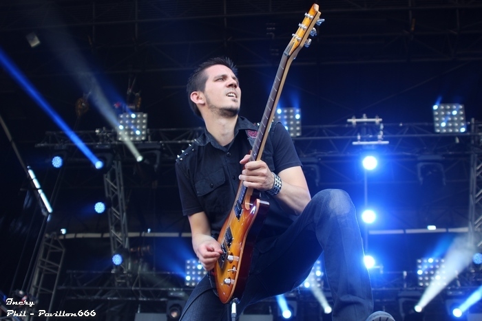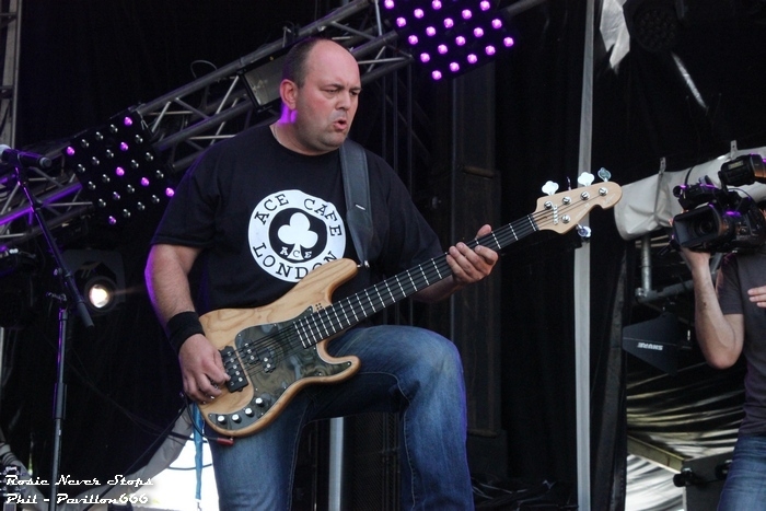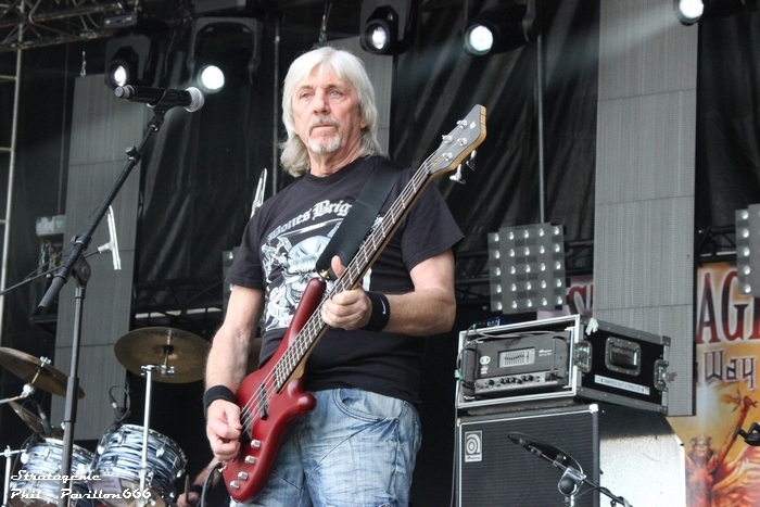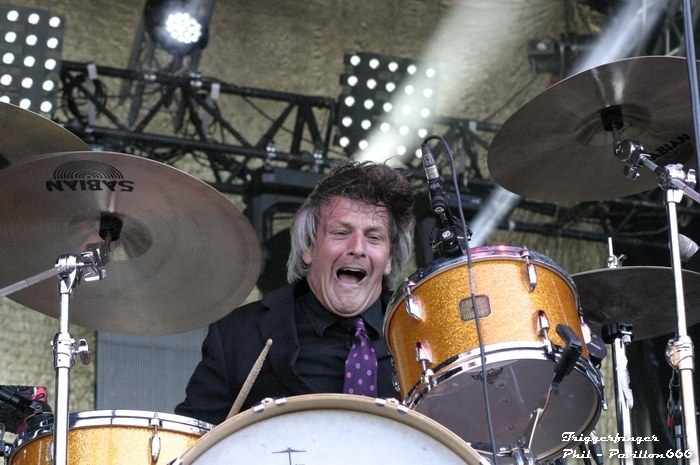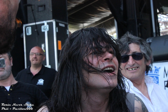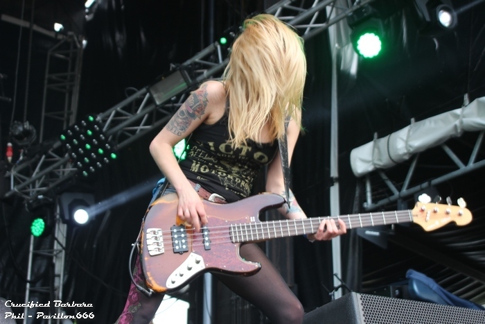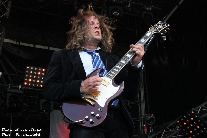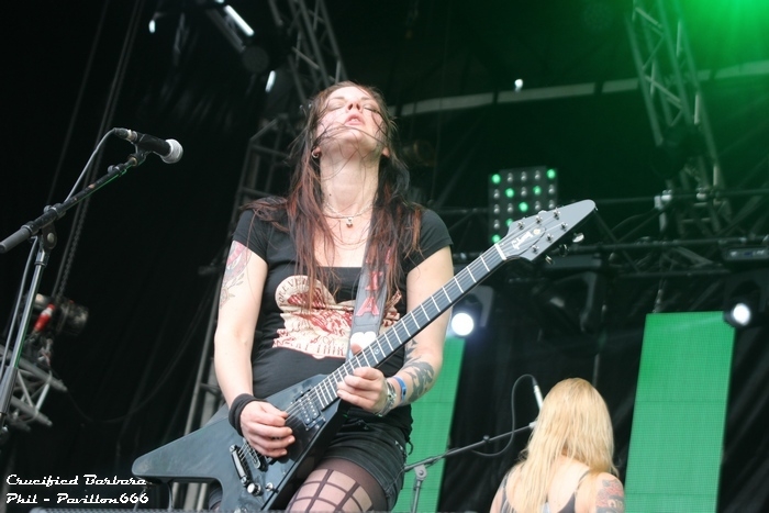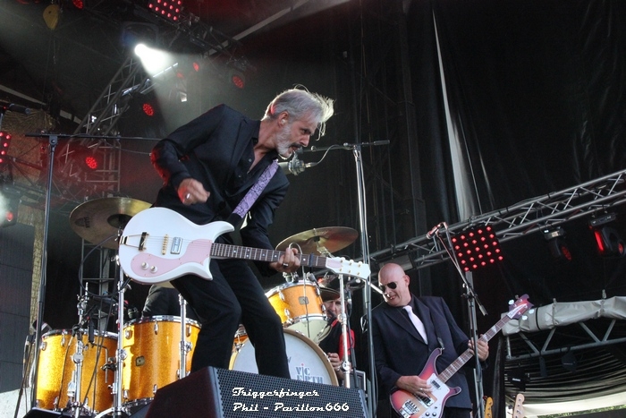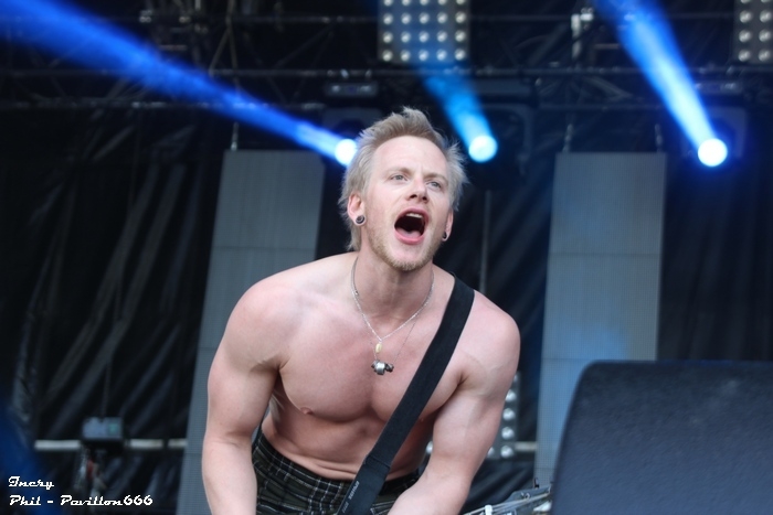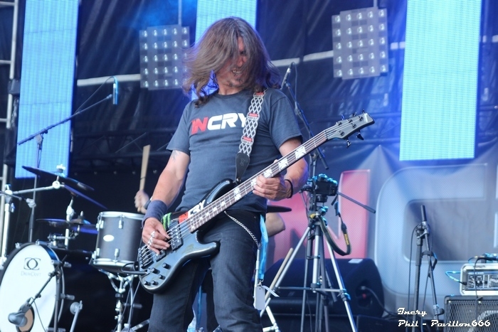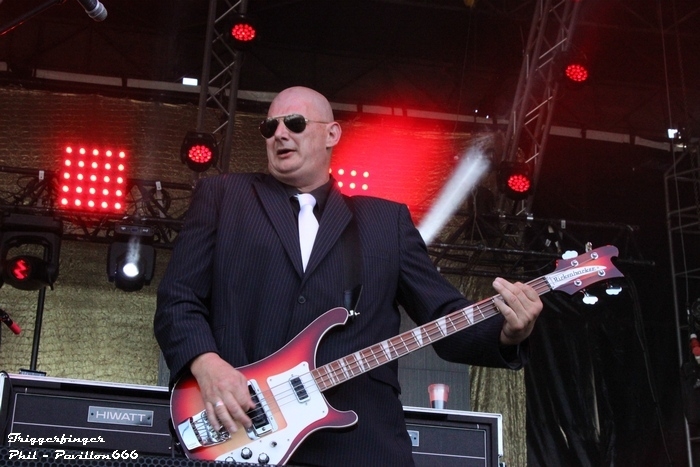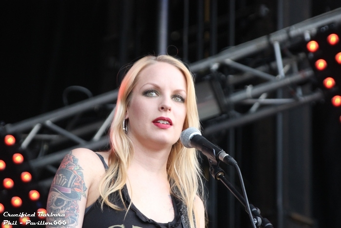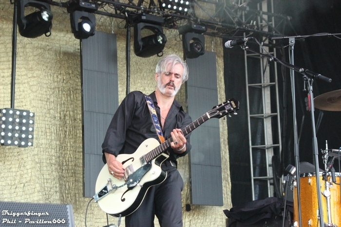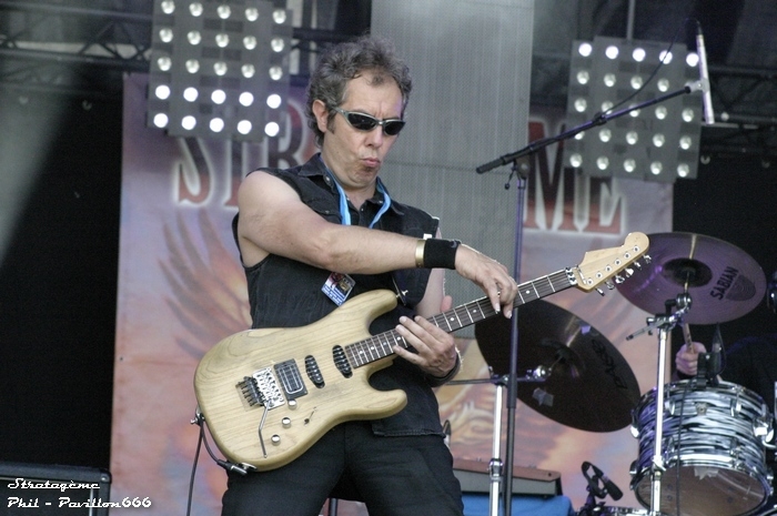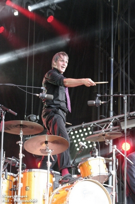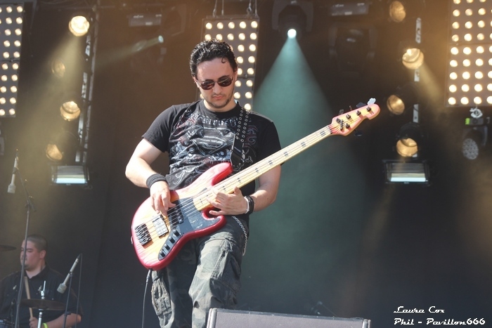 Ce festival propose une affiche éclectique allant de la variété française à du rock énergique, chacun arrive à trouver son bonheur pour la somme de 13€ le week-end (vendredi et samedi). Le hard et le metal sont régulièrement bien représenté, les précédentes éditions ont permis de voir : Joe Satriani, Alice Cooper, Toto, Vulcain, Thin Lizzy... Il convient d'avouer que l'organisation ne fait pas l'impasse au niveau de notre musique de prédilection. Cette année encore, nous avons le droit à plusieurs formations à guitares saturées : Laura Cox / Debunk / Incry / Crucified Barbara (vendredi) Stratagème / Rosie Never Stops / Triggerfinger (samedi) Ne boudons pas notre plaisir, le prix, l'affiche et le soleil étant au rendez-vous, il serait dommage de manquer l'occasion. Laura Cox a la joie d'ouvrir les débats le vendredi vers 16h00, peu de monde est présent mais le groupe profite de cette expérience dans le grand "bain" pour délivrer un set relativement bon. Ayant rencontré la formation en début d'année, il est agréable de voir que le quatuor a progressé. Les titres sont bien exécutés, Laura et Matthieu (guitares) se complètent parfaitement. La section basse / batterie assurée par Ludovic et Pascal maintient l'édifice sans failles. Laura délivre un bon show vocalement et est moins hésitante au contact du public. Il manque peut-être un peu de mobilité et de fougue à la formation pour passer au niveau supérieur. Laissons le temps à Laura et ses compères pour développer son jeu de scène, et là ou des groupes se seraient perdus sur une grande aire de jeu, la formation a su rester compacte et homogène. Une bonne entame de festival en quelque sorte. Debunk enchaine directement après Laura Cox, le groupe délivre un metal alternatif pas désagréable. Malgré des problèmes techniques, la formation délivre un set correct. Une fois sa six cordes déposée, Tony (guitare, chant) occupe l'espace scénique dans sa globalité ainsi que les retours. Matt (basse) est quant à lui plus discret et s'aventure peu à aller loin de son micro. Musicalement, les compositions passent l'épreuve des planches et semblent bien reçues de la part du public présent. A revoir en salle... Incry visite des thèmes punchy associés à des ambiances mélodieuses. La formation est en place scéniquement et assure un set correct renforcé par des séries de poses et gimmicks tous autant naturels que sympathiques, sans oublié le kilt et le torse bodybuldé de Kourros (chant, guitare). Tristan (guitare) et Did (basse) arpentent l'espace qui leur est réservé, tout comme le vocaliste lorsqu'il remise sa guitare en coulisses. La foule est devenue plus consistante mais n'intimide guère les quatre musiciens rodés à une telle expérience, pour mémoire Incry a foulé les planches du Sonisphère en 2012. Le groupe a démontré et confirmé qu'il est une valeur sure. Avec cette série de première partie, il nous tarde de voir et d'attendre la suite. Il fait encore jour quand les quatre suédoises de Crucified Barbara montent sur scène. Arrivées seulement vingt minutes avant le show, les musiciennes n'ont guère eu de temps pour préparer le set. Rien n'y fait, dès le premier titre ça envoie sévère. Les quarante cinq minutes accordées au groupe défilent à la vitesse grand V sous les riffs pêchus et heavy des filles. Les demoiselles ne se ménagent pas, mais ne laissent pas de répits au public. Faute de temps, nous n'aurons point le droit à une reprise de Motorhead, mais les classiques sont à la set-list ainsi qu'un petit nouveau prévu pour le quatrième album. Sans complexes au regard de l'affiche complète, Crucified Barbara délivre un set carré et précis. L'absence des lights prononcés n'a pas d'influence sur la qualité du spectacle. Une bonne dose d'énergie pour conclure cette série métal de la première journée. Stratagème ne met pas longtemps à mettre tout le monde d'accord. En reprenant "Highway Star" pour débuter son show, les metalleux présents sont ravis et le spectateur lambda y trouve un repère et un moyen d'adhésion. La formation reviendra à des covers en fin de concert avec trois reprises de Van Halen. En règle général, les musiciens occupent l'espace sans difficultés. Alex arpente la scène, se trouve une air guitar ou un pied de micro guitare... et s'en sort parfaitement bien vocalement. Philippe démontre qu'il maîtrise son instrument en assurant des soli précis, des riffs énergiques ou en prenant des poses typées guitar hero... Du coté de la basse et de la batterie, Gérard et Jean-Pierre tiennent le cap. Pas facile de mobiliser les spectateurs à une heure aussi tôt mais le show que nous offre Stratagème permet à nouveau de démarrer la journée dans de bonnes conditions. En parlant de covers, le groupe qui suit en a fait son cheval de bataille. Rosie Never Stops ne traite que les compositions des frère Young. AC / DC est à l'honneur durant trente minutes. La formation donne de l'énergie à la foule malgré le soleil de plomb présent au dessus de nos têtes. Le groupe usant du répertoire des Australiens est électrique à souhait. Christophe (chant) évolue tant sur scène que sur les retours ou dans le public. Les autres membres sont tout autant dynamiques, permettant de pratiquer un show punchy et boostant. On peut aimer ou rejeter un tel exercice, il est vrai que Rosie Never Stops n'est pas AC / DC, et n'en a pas la prétention. Toutefois, la qualité de la prestation fait que dans l'attente d'une hypothétique tournée d'Angus et ses compères, il est appréciable d'entendre ces standards. Notre parcours metal s'arrête avec les belges de Triggerfinger. Le combo prend dès le début du set son aise. Sans complexe et décalé pour le meilleur, le trio ne mollit pas et ne fait surtout pas somnoler l'assistance. L'attitude sur scène est efficace, énergique et sans prise de tête. Bien que le jeu soit étudié, il
