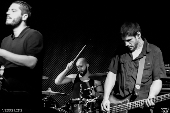 En attendant, c'est pour trois groupes que je me suis déplacé et pour une soirée post rock au possible ! On ne les avait pas vus depuis 5 ans si mes sources sont exactes mais ils sont de retour, les locaux de BRAINLESS ! La nouvelle formation garde ses bases et on est très vite dans le bain de cette musique aux différentes influences. Tantôt lourd, parfois très dynamiques, les riffs de ce quatuor ne manquent jamais d'énergie et de dynamisme ! C'est un groupe en pleine forme que nous redécouvrons ici et qu'il aurait été dommage de ne pas voir ressurgir un beau soir comme celui-ci. Nous espérons que le groupe se sera satisfait de ce set car il est plus qu'évident que les lyonnais étaient venus en masse pour eux. Affaire à suivre donc ! VESPERINE prend la suite avec un set bien plus posé que ses prédécesseurs. Le petit monde du post rock est vaste, divers et varié. Si certains comme BRAINLESS privilégient la dureté du mouvement et son énergie, d'autres comme VESPERINE aiment jouer sur les ambiances plus psychédélique et plus planantes du mouvement à la manière d'un CULT OF LUNA. L'ambiance est donc posée durant ce set. Les lumières ont été baissées et les gens se laissent tranquillement embarquer par cette musique planante. Mais visiblement certains semblent moins réceptif et désertent malheureusement l'endroit. Pourtant la qualité est bien au rendez-vous mais peut-être que la musique manque de chaleur en cette torride fin de juin. Pour ma part, c'est avec plaisir que je retournerais voir ce groupe dans les mois d'automne et d'hiver si l'occasion se présente. Mais dans tous les cas, les amateurs du style auront bien de quoi s'y retrouver avec VESPERINE. YOUNG CARDINALS clôt cette soirée en beauté avec une musique qui allie bien les deux tendances précédentes. Le groupe puise autant dans la pop, avec un chant clair très prononcé que dans le metal façon DEFTONES, les leaders de ce qui fut autrefois appelé la scène néo metal. Aujourd'hui DEFTONES a tellement évolué que l'on ne saurait les qualifier de la sorte. YOUNG CARDINALS est dans un cas similaire. Il n'est pas évident de les classer mais ce qui est certain, c'est que sa musique est d'une qualité certaine et que sa prestation de ce soir est à la hauteur des espérances. Les parties lourdes contre balancent comme il se doit les aspects les plus calmes de sa musique tandis que l'énergie reste sur une constante positive. C'est une musique bien pensée, bien équilibrée et bien exécutée que voilà, alors que demander de plus ? Soirée réussie dans ce Warmaudio 2.0 ! On attend la suite avec impatience ! |