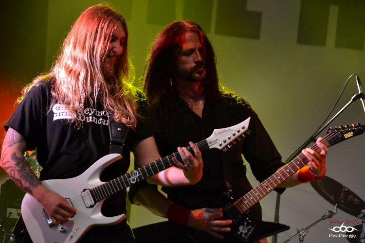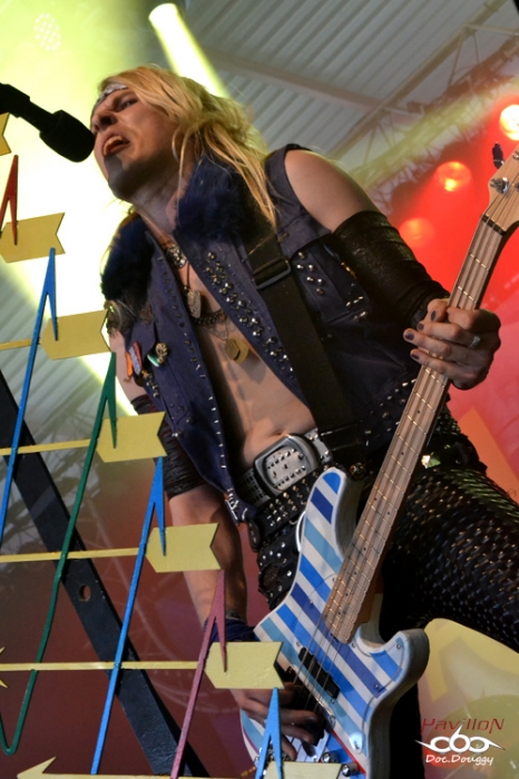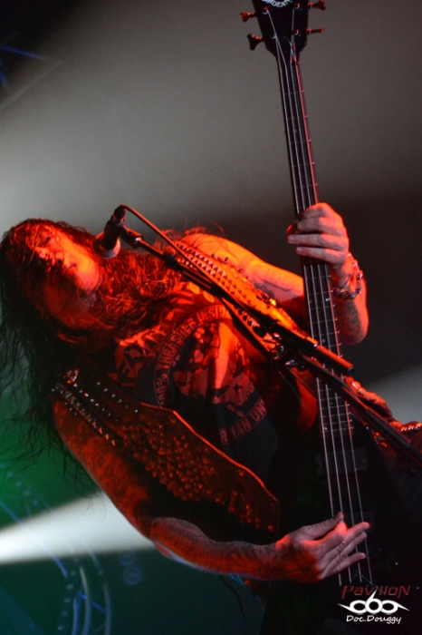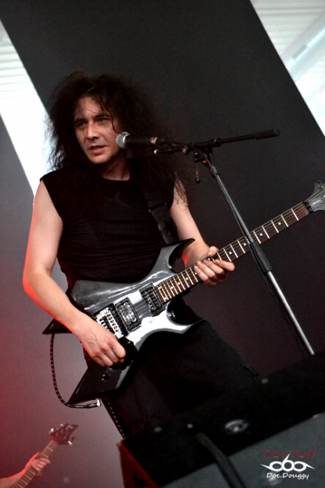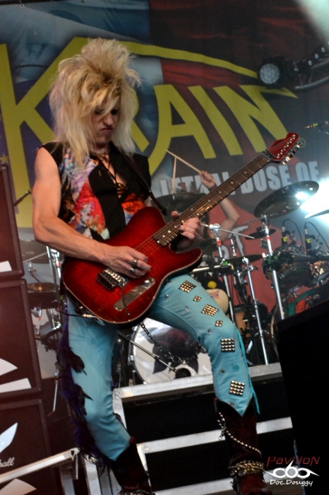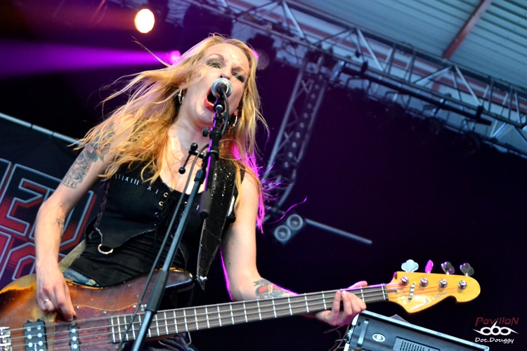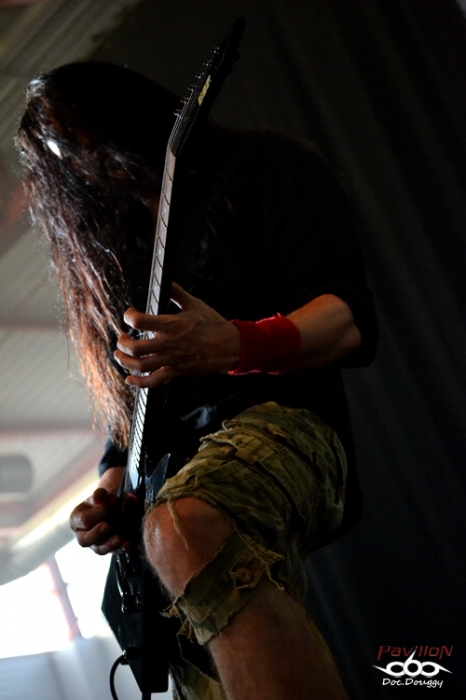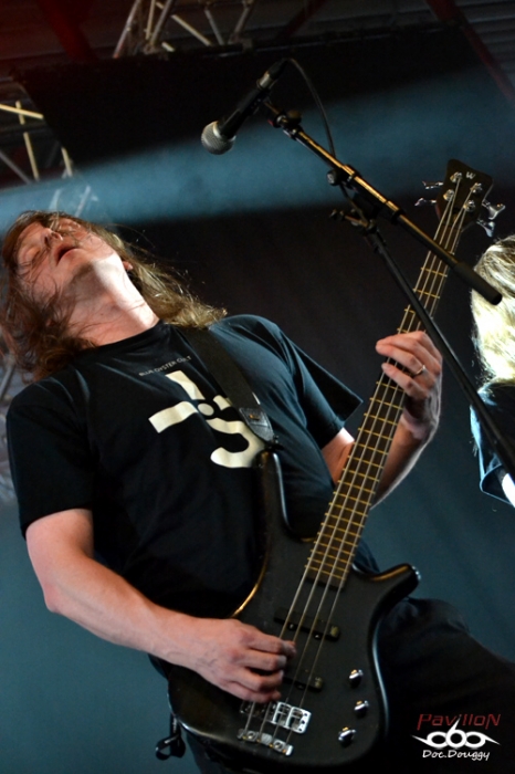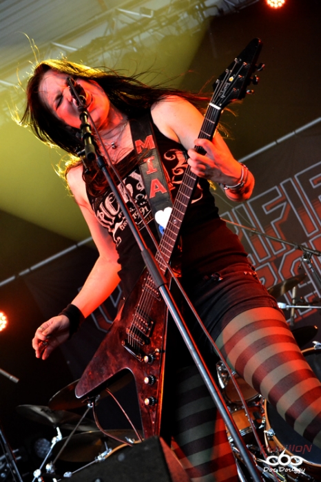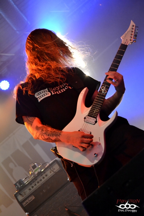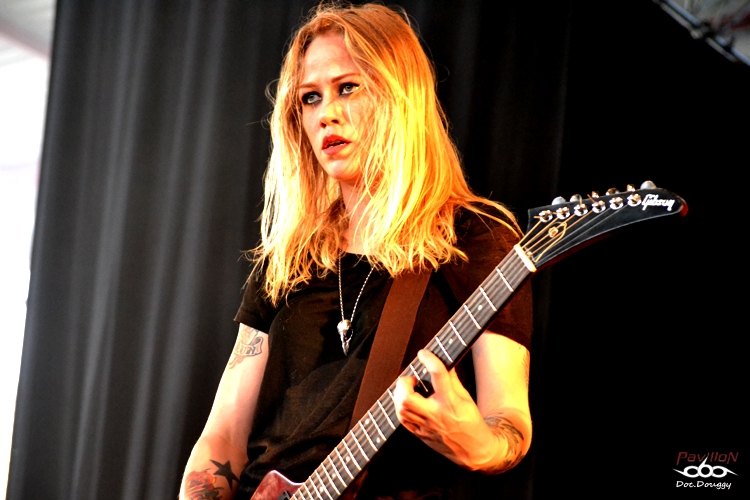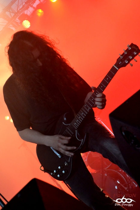 Les gagnants du tremplin du Warm-up de l'an dernier Think of A New Kind (T.A.N.K), sont les premiers à ouvrir devant un parterre encore peu nombreux, certains faisant encore la queue, d'autres en train de prendre le soleil ou à discuter au bar, mais je dénombre tout de même une centaine de personnes lorsque j'arrive dans la salle alors que le quintette démarre son second titre "Inhaled". C'est plutôt moderne, carré avec quelques solis bien placés par les deux guitaristes, et ceux-ci sont bien accueillis par le public qui lance déjà un moshpit dans la fosse, ce qui a pour effet de faire redoubler d'effort pour la prestation des Franciliens qui se donnent à fond. Pas totalement conquis, mais pas totalement déçu non plus, le quintette investi comme il se doit la scène, sait se mettre en avant, voire même jusqu'aux barrières de laquelle leur chanteur, Raf ira se rapprocher de la foule. Etonnament, ou histoire de pas faire décrocher les non-initiés, ceux-ci reprennent un classique de Pantera "Walk" bien éxécuté. Une très bonne entrée en matière compte tenu du temps de show qui leur est accordé (soit 30 minutes). On réentendra sûrement parler d'eux prochainement ! SETLIST : The Raven's Cry / Inhaled / T.A.N.K. 09 / Beautiful Agony / Through the Disgrace / Walk (Pantera Cover) / Cryptic Words / Disturbia / Brother in Arms. Second groupe Français à jouer, c'est ensuite à SUP d'entrer en scène. Les Valenciennois friands de la machine à fumée me rappellent de mauvais souvenirs quant à leur passage il y a un peu plus d'un an au Splendid, mais qui n'empêche en rien la qualité des morceaux de leur Death metal plus old school que leur prédécesseurs, mais tout aussi jouissif (voire même un peu plus) . C'est devant un parterre absorbé par la musique des frères Loez, pas toujours très communicatifs et concentrés sur leurs morceau que ceux-ci nous délivrent un set sans fioritures qui commencera tout d'abord par "The Old Mirror/Incubation" (tiré de l'album du même nom) avant de revenir sur "The Cube" (1993) en entier pour nos plus anciens. Le travail de leur ingé-son (et aussi ami de longue date) y est aussi pour quelque chose car "The Cube" en live, même si je ne connais pas celui-ci sur le bout des doigts, vieillit plutôt bien et prend toute son ampleur en conditions "live". Le seul point "négatif", étant l'absence de morceaux tirés de leur dernière réalisation "Cu3e", sorti l'an dernier. J'en connais au Hellfest qui ont été servis, car nos Nordistes, pas très fans de la scène se font relativement rares en représentations... Setlist : The Old Mirror / Incubation / Prelude / The Elevation / Soul's Speculum / 138.JP.08 / The Cube / Through the Transparent Partitions / Spherical Inner-Sides / The Accomplishment / 4TX.31B / The Dim Light. Changement total de style pour quelque chose de plus "FM", c'est au tour de BLACK RAIN d'investir la scène Denaisienne. Vraiment pas convaincu pour un groupe que je trouve "surfait" (cf. Report au Splendid), il est vrai qu'il reste difficile pour Swan & co d'oublier leur "étiquette" de groupe de radio crochet et de les considérer comme il se doivent, d'autant que le "Glam F.M", on pourrait s'y attendre n'a pas le vent en poupe auprès d'une certaine (jeune) partie du public qui devant la scène leur font des gestes obscènes et auront pour but de faire intervenir leur manager sur scène entre deux titres "...j'ai donné ma vie pour cette musique [...] c'est à cause de petits merdeux comme vous que l'on reste dans l'ombre...", certes un beau monologue, mais c'est aussi ce qui arrive quand on fait jouer un groupe de "Hard" sur une chaîne grand public : tu récoltes des détracteurs... Bref. On a beau dire ce que l'on veut, scéniquement parlant, tout y est : pieds de micros décorés, jeu de scène travaillé qui met en avant le guitariste et le bassiste au look glam/androgyne, mais surtout un public très présent qui suit tout aussi bien les paroles et mimiques de Swan ("Get a Gun") que je regrette toujours presque collé derrière son pied de micro, mais qui impose tout de même un peu de respect avec un timbre de voix particulier, presque féminin, mais qui plaît aux nanas comme le prouvent les deux fans qui monteront se déhancher sur scène (mais le topless, hein, on préfère le garder pour avoir une bière gratos au bar...). Les Parisiens usent de leurs chansons les plus accessibles, mais passent limite pour des gentillets à côté des groupes qui sont à l'affiche, chose non aisée pour ce type de festival. Moi, je ne suis toujours pas convaincu, mais ce ne sera pas spécialement le cas d'une bonne part du public qui restera accroché jusqu'au bout. Un poil trop "Disney" à mon goût quoi, qui me feront plutôt aller prendre l'air et faire bronzette arrivé au deux tiers du set... Setlist : Death by Stereo / Dancing on Fire / Bad Love Is Good / Young Blood / Get A Gun / Dead Boy / Innocent Rosie / Blast me Up / Overloaded / Rock your city / Wild Wild Wild / Burn 'N' Die. Terminé la promotion Française, maintenant on passe à l'international ! Ce sont au tour des 4 jolies Suédoises que sont les CRUCIFIED BARBARA d'investir la scène ! Plutôt surpris l'an dernier par le côté burné de leurs chansons, maintenant je sais où sont passées celles de leurs prédécesseurs. Toujours très efficaces dans leur Hard Rock, Mia (chant/guitare lead), Klara (guitares/backing), Nicki (batterie/backing) et Ida (basse) sont toujours en place ! C'est énergique à l'image du chant de Mia, et même les chansons de leur prochain album à paraître en août que celle-ci n'hésite pas à mettre en avant "'Til Death do us Party" se calent à merveille dans leur setlist qui inclue aussi leurs 3 premiers albums. Un peu de rock'n roll influencé par ACDC, voilà ce qu'il fallait... Ca manque peut-être juste un peu d'originalité, mais très bien orchestré. Setlist : The Crucifier / Play Me Hard / Shut Your Mouth / Sex A
