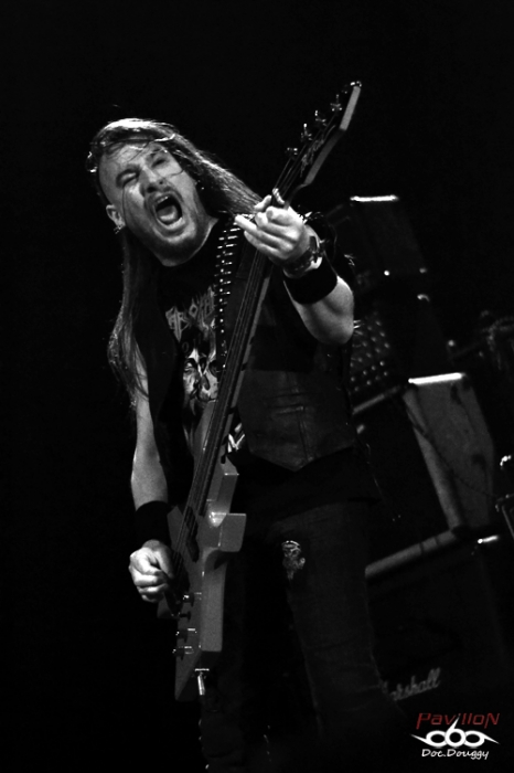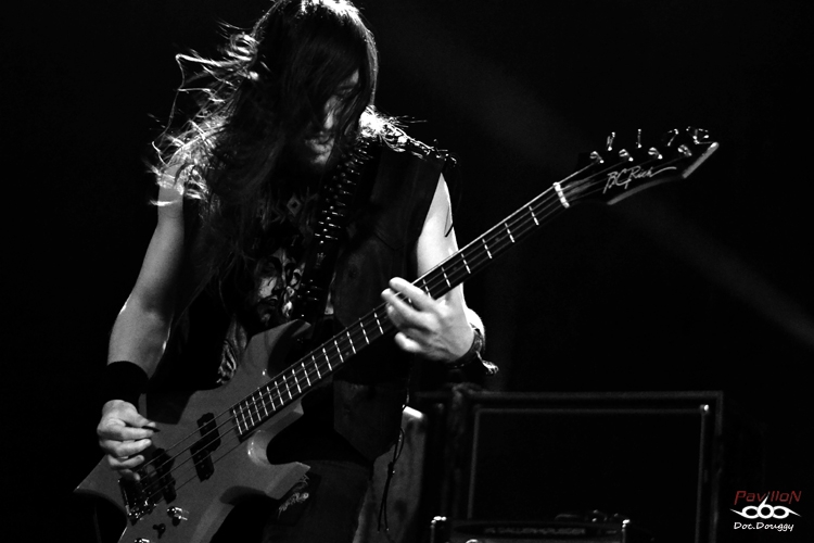Autant l'écrire de suite, j'ai jamais été très fan de la salle. Non pas pour son son, mais plutôt pour son public : Combien de fois il m'a été donné d'entendre des insultes dirigées vers les groupes d'ouvertures (souvent locaux), ou l'étrange capacité à bâcler (là, je parle du son) ceux-ci... D'autant que pour accompagner SEPULTURA ce soir, ce ne sont pas un, mais deux groupes locaux qui font office d'entrée et de plat de résistance: W.I.L.D (que j'ai loupé un mois plus tôt à Dunkerque) et INFINITE TRANSLATION. Une soirée placée sous le signe de la technique et de la puissance, et surtout la présence de ces deux groupes ainsi que des Brésiliens ne vous font pas réfléchir quant à l'idée de ne pas en être ! Les Lillois d'INFINITE TRANSLATION font donc office d'entrée : Du Thrash qui sonne aussi vieux que ces musiciens (environ la trentaine), "old school" à souhait voilà ce qui les défini au mieux. Tempos rapides, heavy, technique et groove; tout y est pour le quatuor que je n'avais pas vu depuis au moins 3 ans, temps qu'il aura fallu pour faire mûrir les compos de "Masked Reality" pourtant déjà sorti il y a deux ans. Mais le groupe, mené par un Max tout aussi précis dans ses solis que dans ces vocaux hargneux n'a pas perdu en verve durant ce laps de temps, appuyé par ses 2 gratteux Jon, basse et Gui, guitare qui investissant comme il se doit l'espace donné sur scène ne cesse les allers-retours, ainsi qu'une rythmique de Fish (batterie) très directe, on fait un bond d'une bonne vingtaine d'années en arrière quand le Thrash "avait" le vent en poupe. Une setlist ficelée autour des deux albums (même si certains "oldies" comme "Lost in Pyramid" ne font plus partie de la setlist), et bon dieu que c'est efficace ! Et même si je trouve que les guitares manquent un poil de puissance... Le groupe fait ce qu'il a à faire et sait faire de mieux, dans le respect et la sincérité. Chapeau bas. Et accessoirement, un plaisir de les retrouver en forme ! SETLIST : Legion Of Death / Destined To Death / Dead By Dawn / Killing Solution / Life Of Submission / Translator / Kreator. Après une première escapade dans les années 80-90, on avance les aiguilles et on retrouve quelque chose de plus... contemporain avec W.I.L.D, deuxième groupe local de la soirée. J'avais exprimé ma déception lors de leur première partie loupée à Dunkerque, lors de l'ouverture pour Napalm Death en mai dernier, c'est donc aux premières loges que je me placerai ce soir pour les voir et me rattraper ! On va quitter durant les 40 prochaines minutes les contrées purement "Thrash" associées à l'affiche pour aller lorgner du côté du Death metal, qui a un peu plus de correspondance avec la musique de W.I.L.D. Compos alambiquées, chant de Jérôme plus growlés que son prédécesseur, rythmique plus variée et syncopée au niveau de la batterie d'Eddy, tout autant que la charnière de Thomas (Basse) pour rejoindre les riffs incisifs de Fred (guitare) qui parlent d'eux-mêmes, W.I.L.D ne sont pas là pour violenter les poules ! Et on ressent les 15 ans d'existence du combo tout d'abord sur une scène qui est leur, mais aussi sur les interventions de Jérôme qui sait foutre la pêche au public, ainsi que des allers-retours de ses deux protagonistes tout sourire que sont Thomas et Fred, une preuve, avec leurs prédecésseurs, que ces deux groupes prennent leur pied à jouer "live". Et c'est bien entendu une set-list basée sur leur seul album à ce jour sous ce nom "Agony of Indecision" qui prend la part belle de celle-ci, sur lesquelles ont peut tout de même ajouter une très bonne reprise de Pantera "Mouth for War" (pas étonnant quand on connaît l'amour que ceux-ci possèdent pour ce groupe), mais aussi, étonnamment la présence de "Mutilation" et "L'appel" qui pour le coup datent de leurs deux premiers méfaits (sous le nom alors de Wild Karnivor). Une bien belle surprise en milieu de set ! Emballé c'est pesé, une prestation aux oignons pour l'un des "espoirs" de la scène Death/Thrash Française. Et un sacré hors d'oeuvre avant la "samba" ! SETLIST : Intro / Agony Of Indecision / Wake Initiated Lucid Dream / Mutilation / L’Appel / You Know They’ll Come / Mouth For War (cover Pantera) / A Voice In My Head / Pick Me Up. Ah, enfin les voilà ! Depuis que je suis tombé dans la marmite metal, un débat a toujours eu lieu : SEPULTURA sans les frères Cavalera, c'est toujours SEPULTURA? Alors qu'il ne reste plus qu'Andreas Kisser (guitare) et Paulo Jr. (basse) à la composition depuis 2006 maintenant (et le départ d'Igor), les Brésiliens connaissent fort heureusement encore du succès, et cherchent maintenant (et surtout) grâce à Derrick Greene à se renouveller sans cesse, preuve en est "The Mediator..." sorti l'an dernier entre autres, qui après cette étiquette "roots" lorgne vers des sonorités plus modernes et industrielles, avec toujours cette efficacité qui fait rage chez eux. Maintenant, reste à voir ce que donnent ces morceaux (et ceux des précédents albums) sur scène, ainsi que comme beaucoup de monde dans la salle, les "tubes/oldies" du groupe version "2014". Extrêmement rôdé, le Thrash des Brésiliens ne prend pas de rides. Si Paulo Jr. est extrêmement en retrait et avalé par les mimiques d' Andreas, ce n'est pas le cas de Derrick, omniprésent sur tous les fronts ! Au point qu'on pourrait même parler d'un "Derrick Greene Orchestra"... Le chanteur en impose, rageur sur les morceaux qu'il a écrit autant que sur "Propaganda" qui nous est asséné dès le 3e titre, histoire de faire monter de quelques degrés la température dans le pit. Et si "Dante XXI" et "Kairos" ne sont pas particulièrement mis en avant, c'est surtout "The Mediator..." qui prend place dans cette setlist, et réussi facilement le passage aux conditions "live", grâce à 4 morceaux ("Impending Doooom !!!"). D'ailleurs, mention spéciale au jeune batteur qu'est Eloy Casagrande, q
