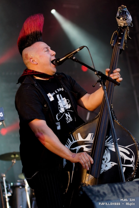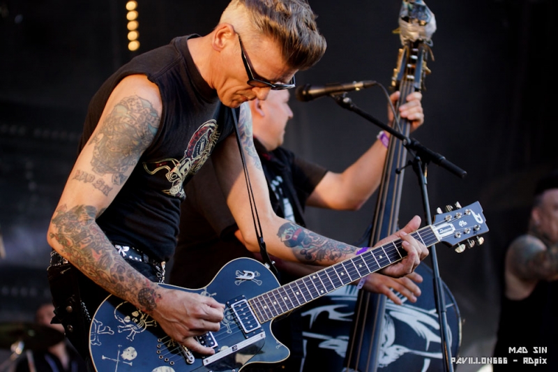RDpix: Du psycho billy, du psychedelico punk, du rock’n bordel, appelez ça comme vous voudrez, des groupes comme Mad Sin ça ne court pas les rues et pas besoin d’aimer le style pour se laisser prendre au jeu. Une fois mes photos prises, je me faufile dans la foule et je profite du show. Les Allemands (oui encore eux) sont complètement déjantés. Ils jouent sur une base de rock n’ roll qu’ils assaisonnent de punk complètement déjanté. Non content de jouer une musique de laquelle ils semblent imprégnés jusqu'à la moelle, ils en profitaient pour passer des messages engagés, notamment contre les institutions religieuses laveuses de cerveaux ou les partis politiques pas franchement plus inspirants. Il faisait chaud, mais impossible de ne pas se mettre à sauter et bouger son cul sur leur rythmique entrainante. « Je sue mais j’m’en fous » comme dirait notre ami Mr Manatane.
