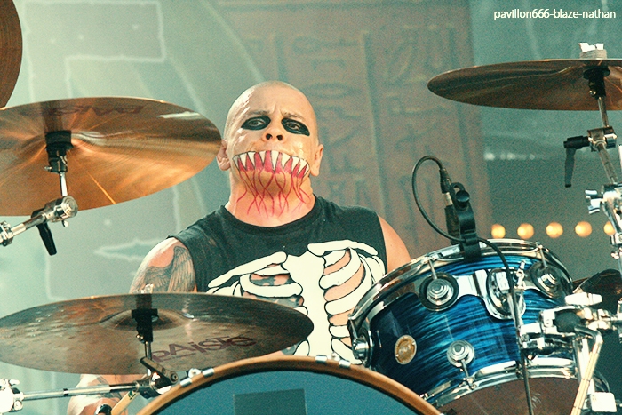 RDpix: Qu’on aime ou qu’on n’aime pas, il faut admettre que les polonais de Behemoth ont tout d’un grand groupe de metal. Ce soir, une fois de plus, ils ont préparé une prestation aux petits oignons. Backdrops changeant entre les chansons, détails des décors bien fignolés, maquillage noir, balsn et sang sur tout le corps, les gars nous ont sorti le grand jeu. Appuyés par des effets pyrotechniques les black metalaeux nous ont sorti le grand jeu. Cachés sous leurs capuches, ils ont joué une heure durant, des riffs rapides et complexes soutenus par une double pédale au rythme redoutable et des solos incisifs.